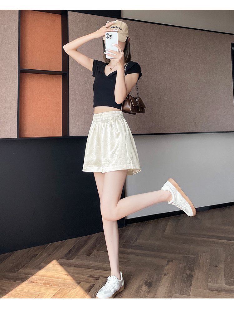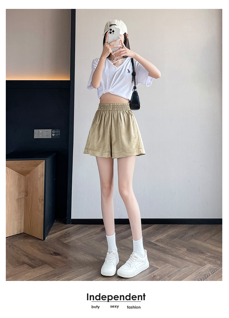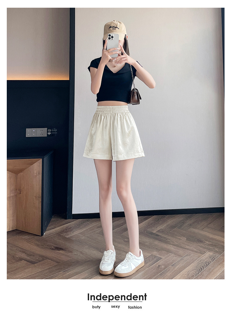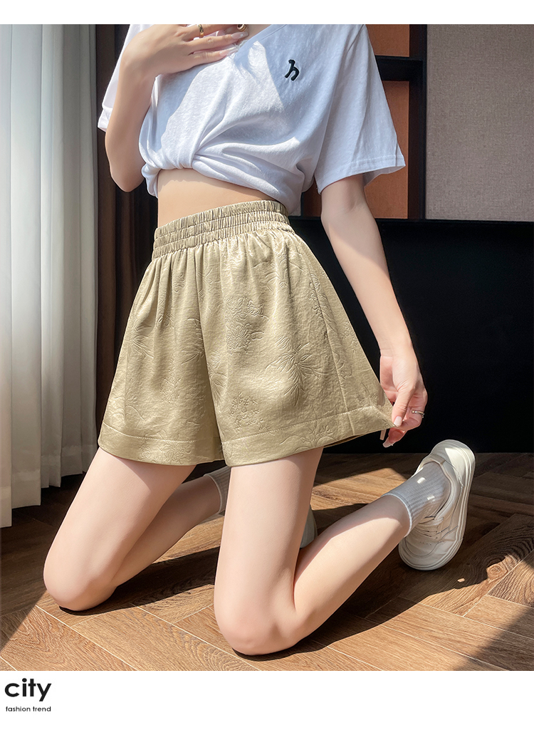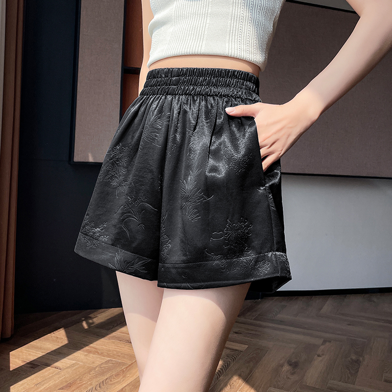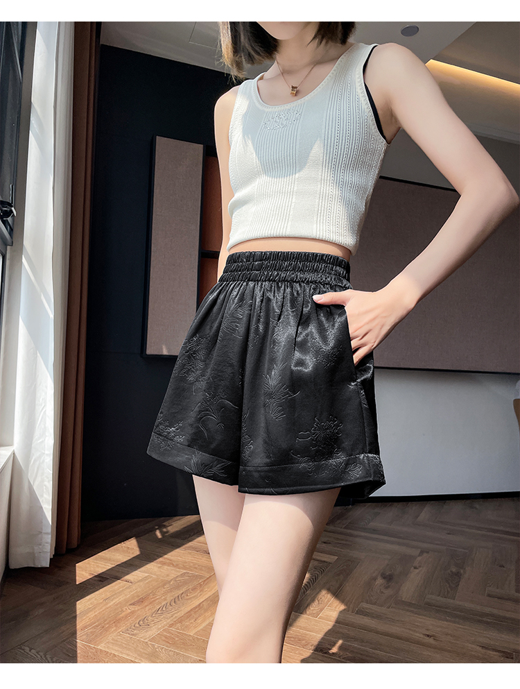 RY1321# 实拍2026夏季新款 醋酸提花时尚高腰宽松阔腿a字休闲短裤