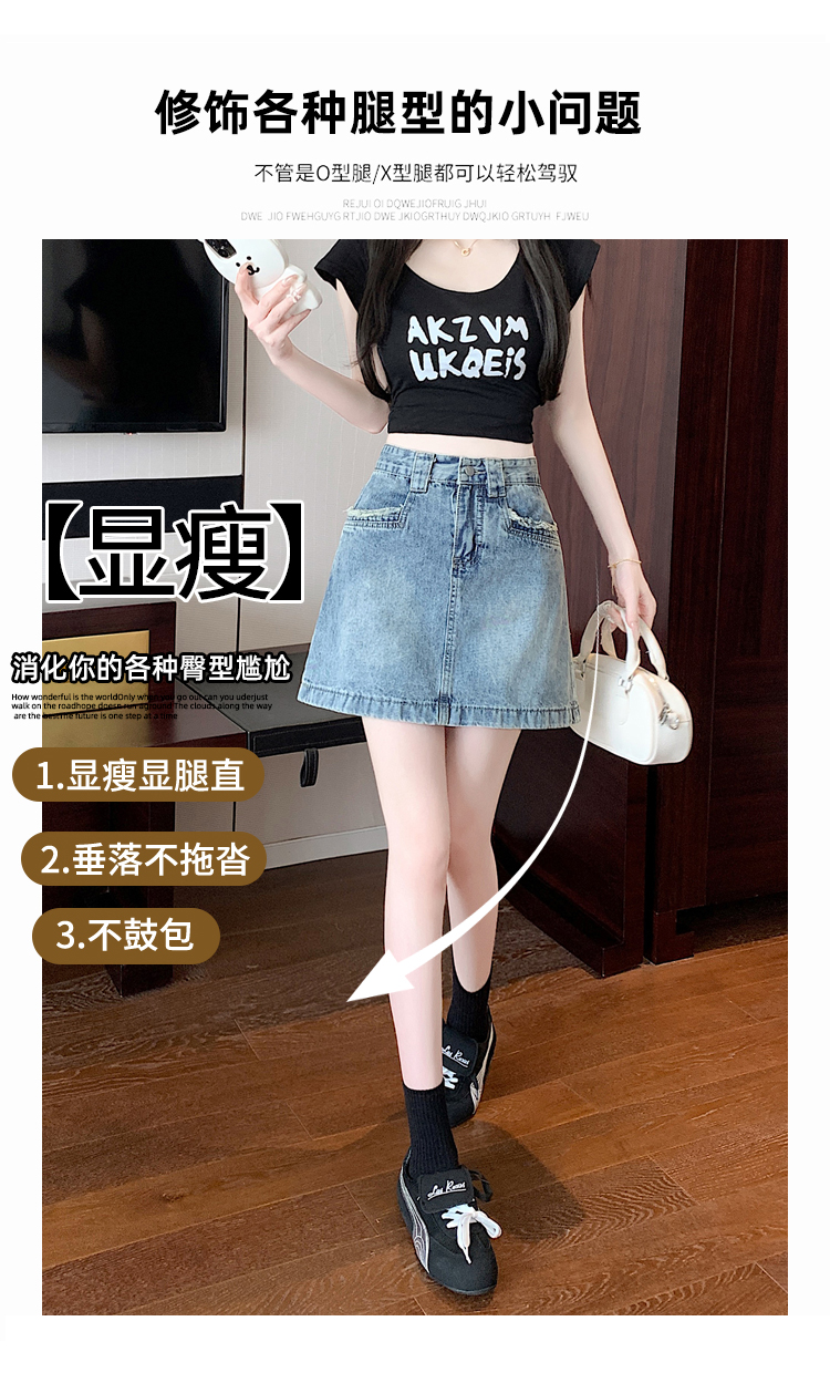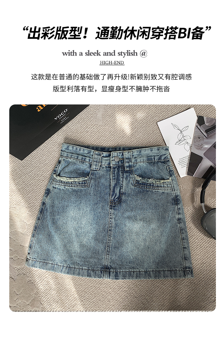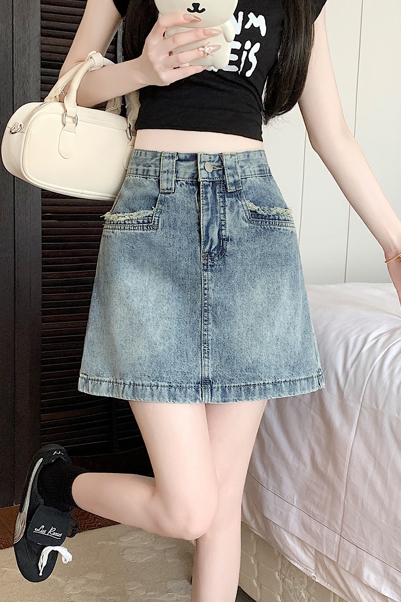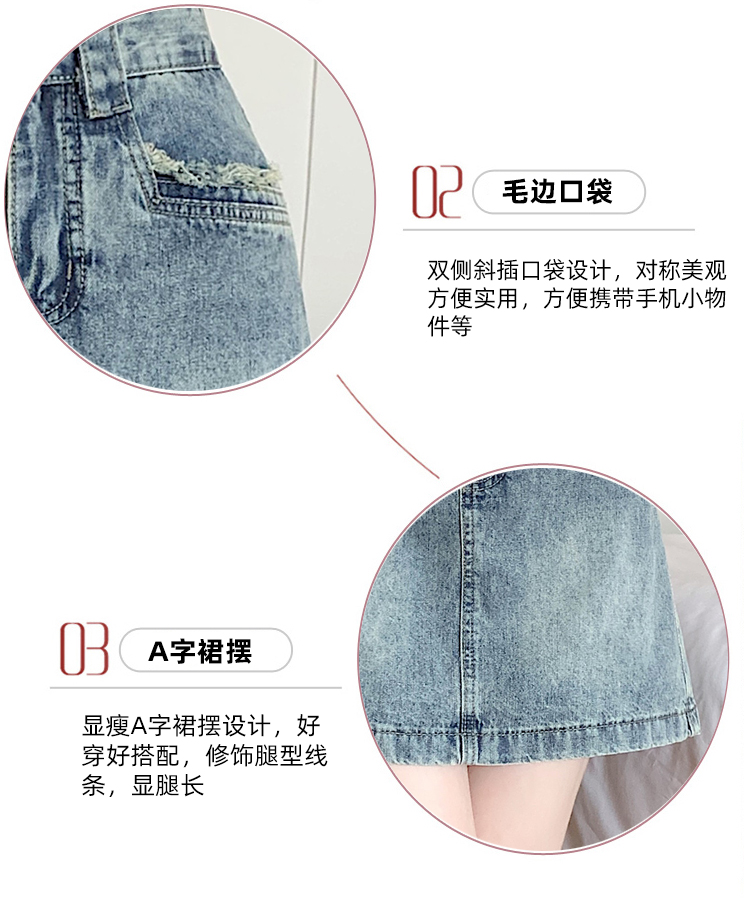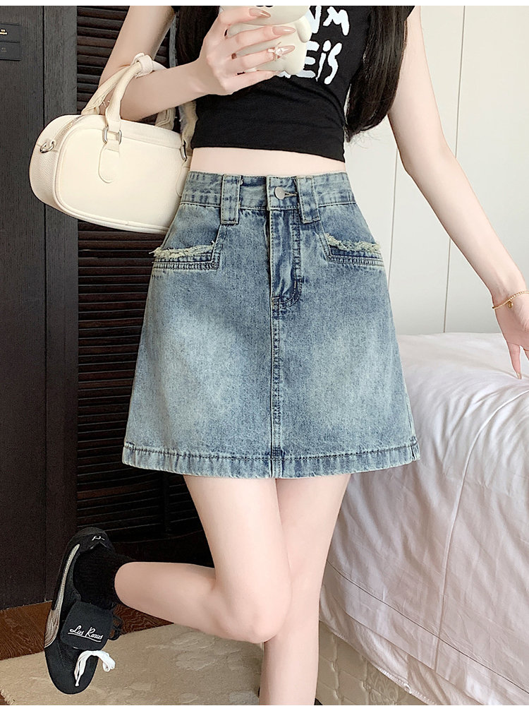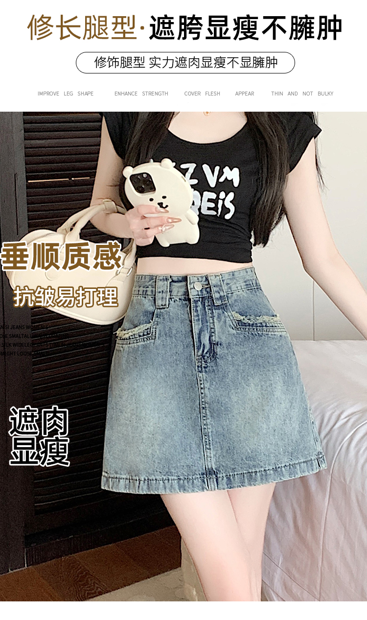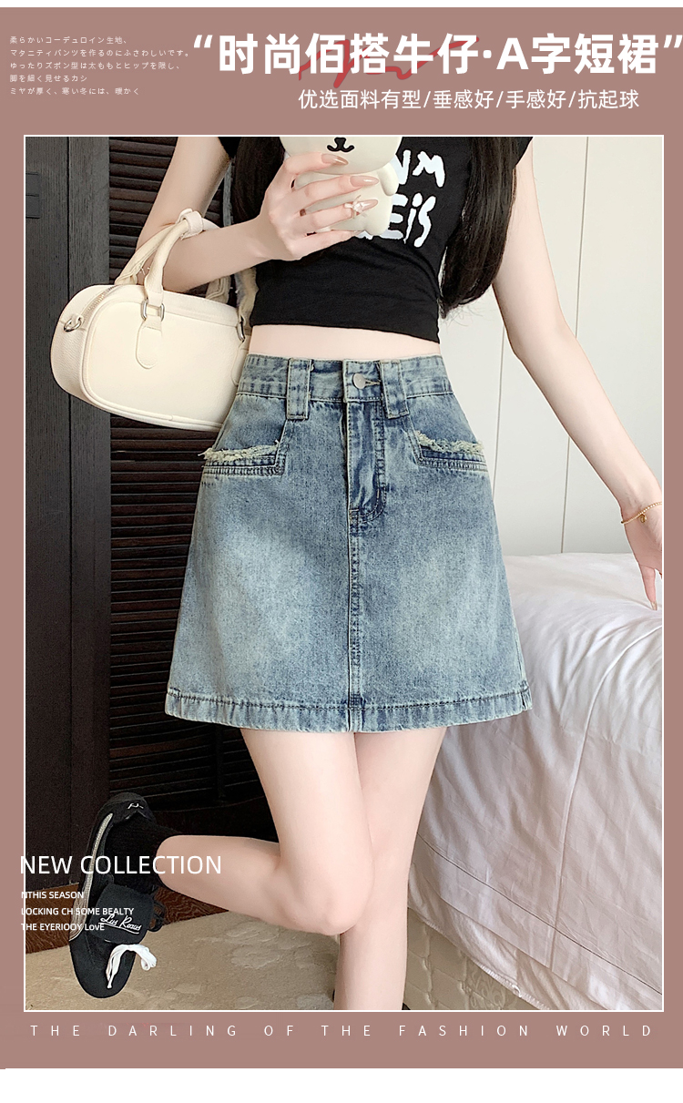 RY1332# 实拍牛仔短裙女夏2026韩国高腰显瘦a字裙毛边包臀半身裙防走光裙