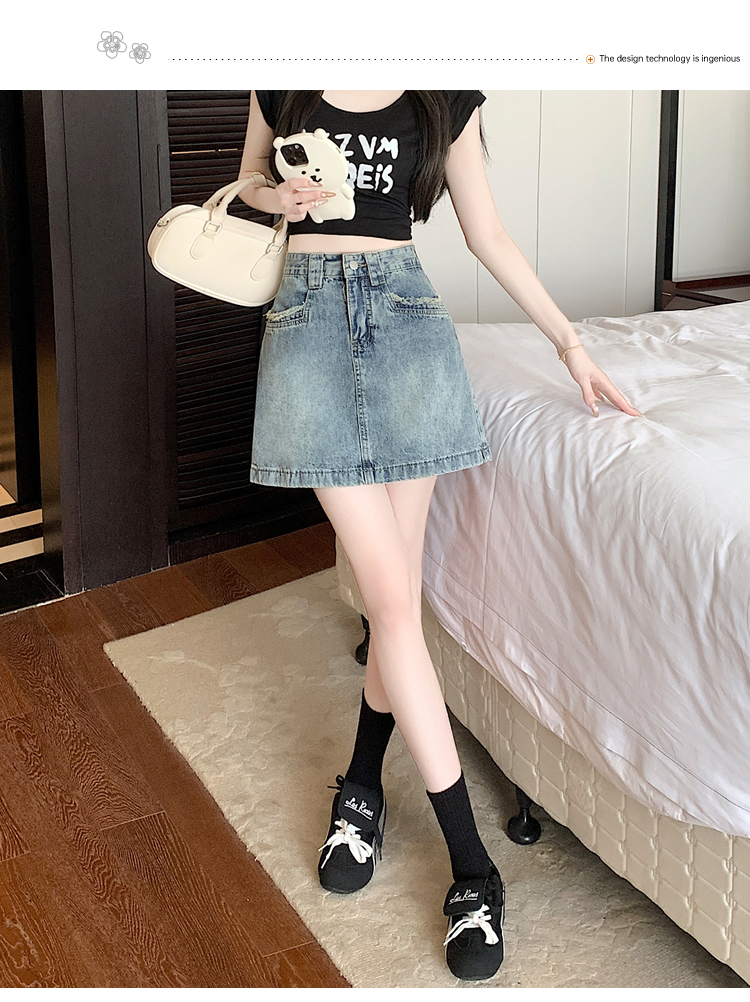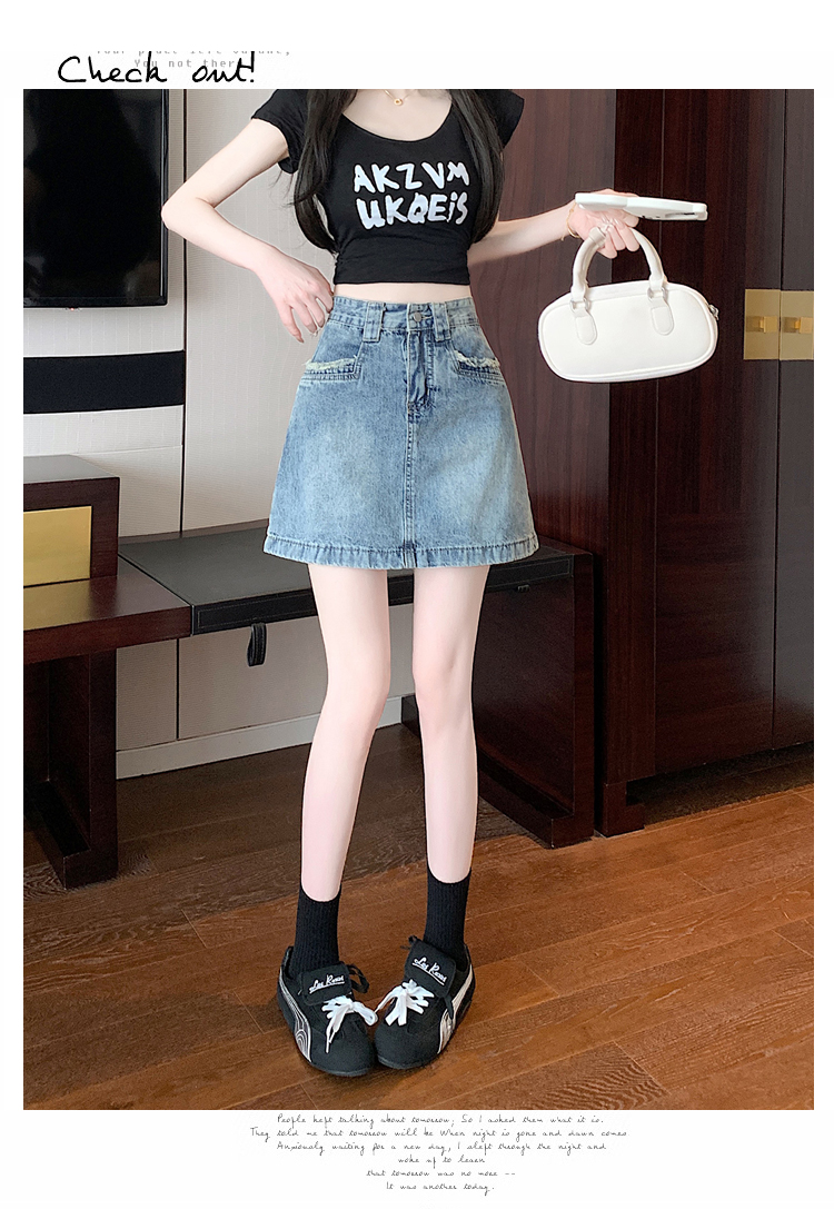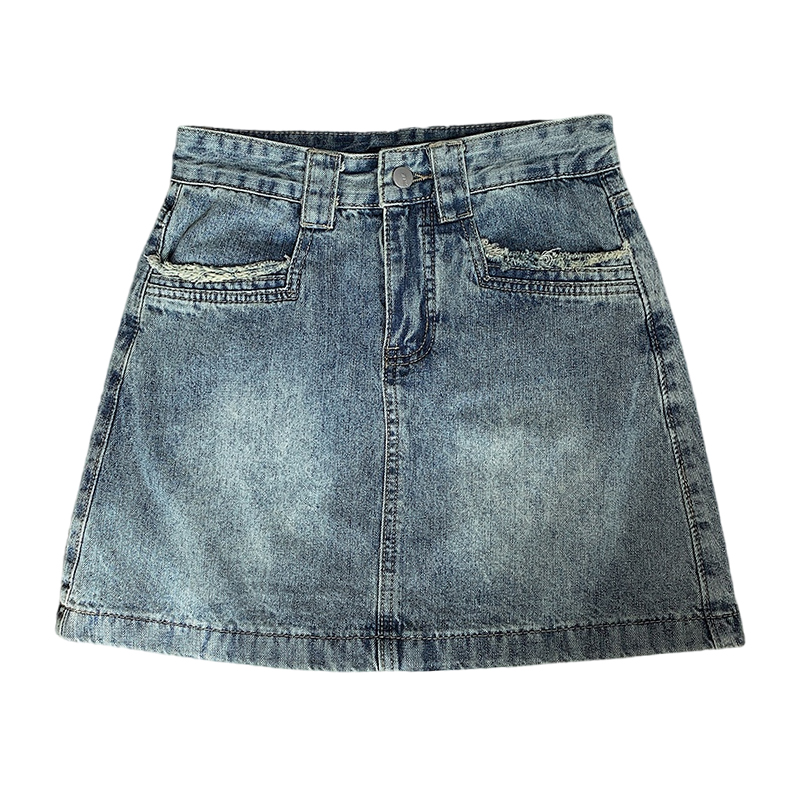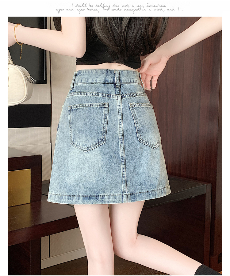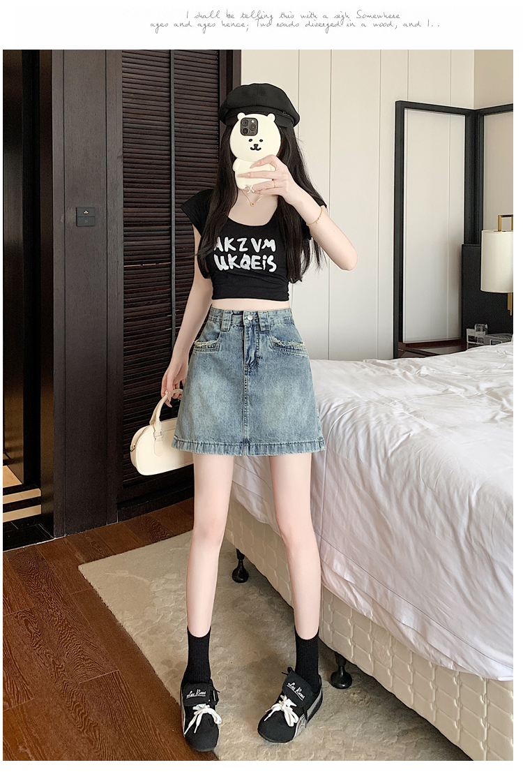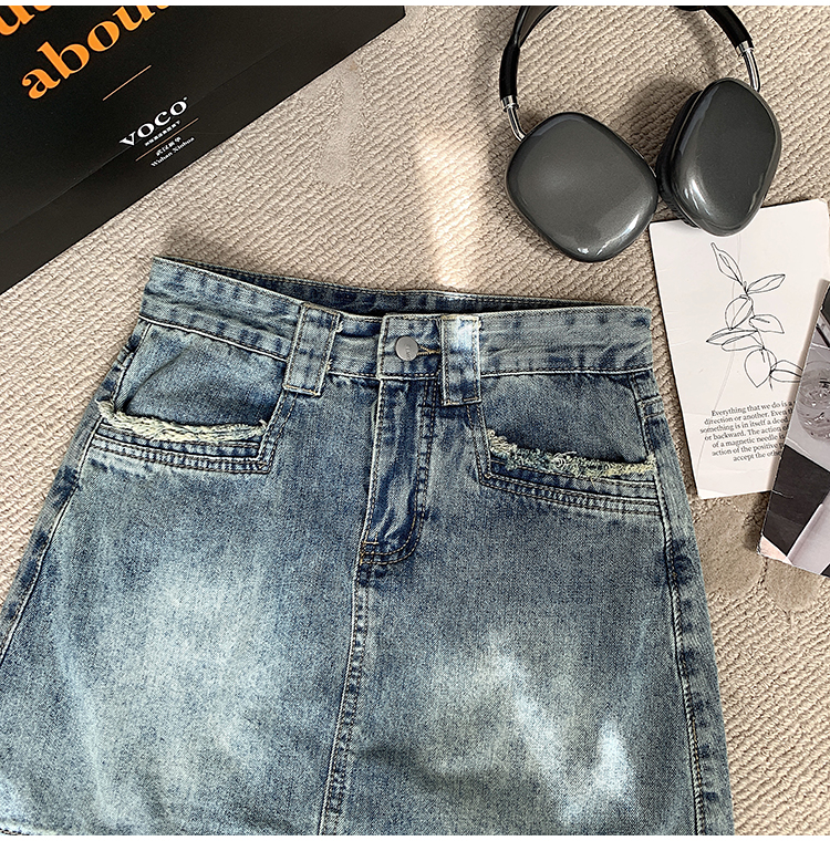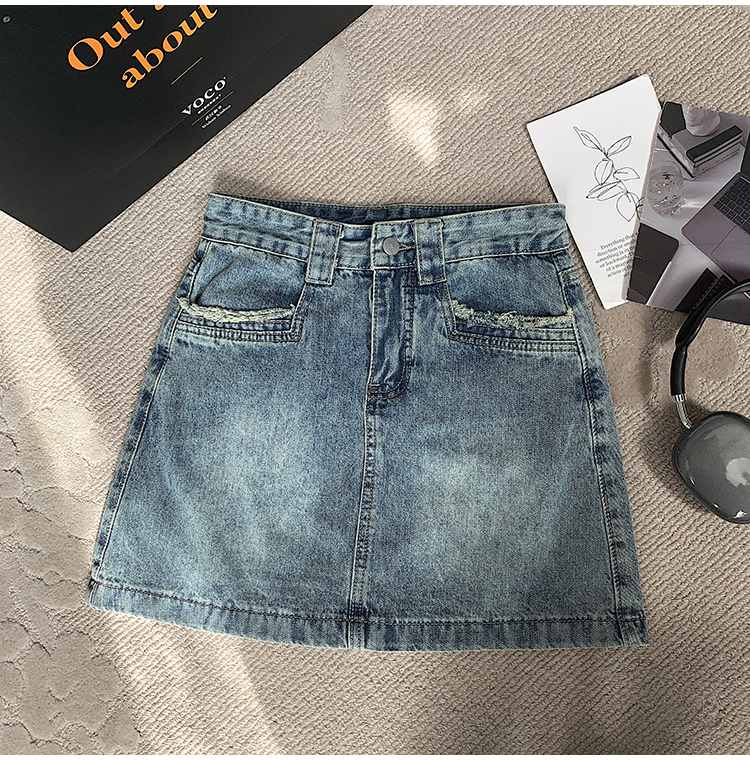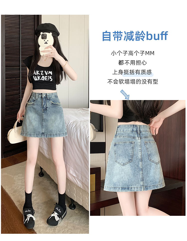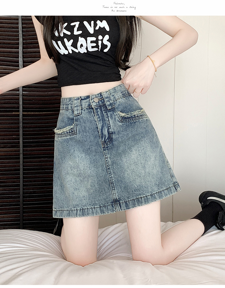 RY1332# 实拍牛仔短裙女夏2026韩国高腰显瘦a字裙毛边包臀半身裙防走光裙