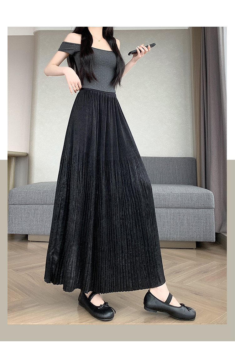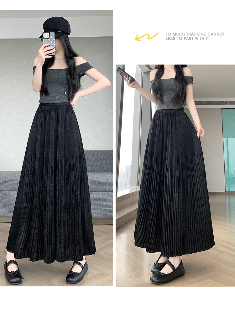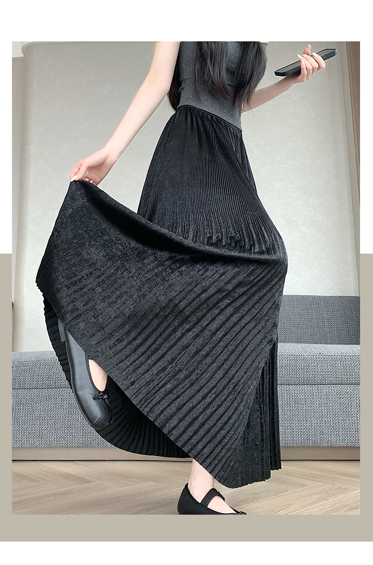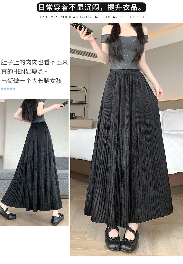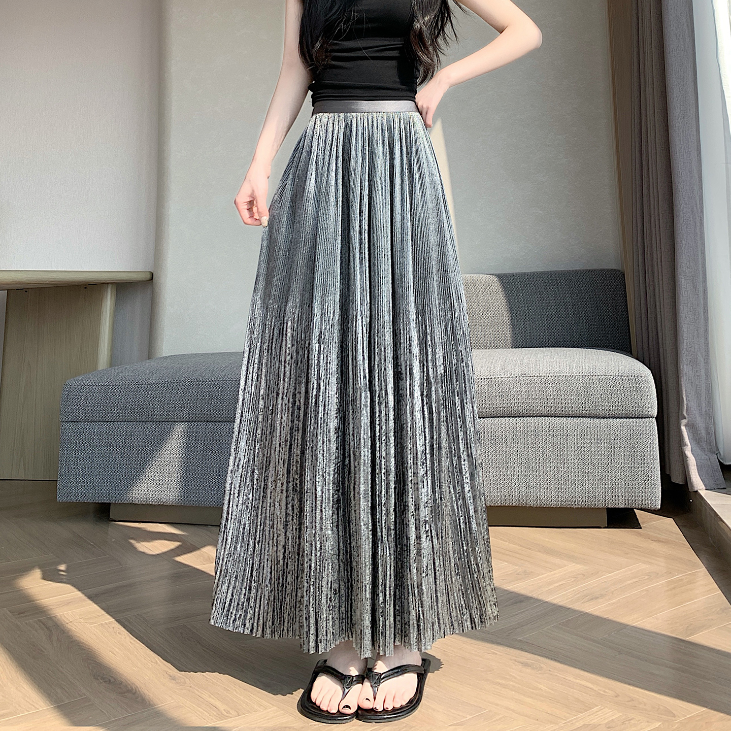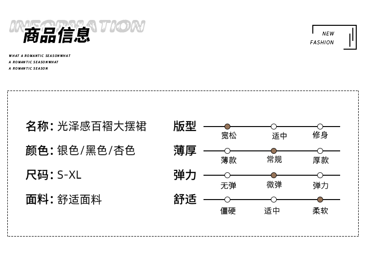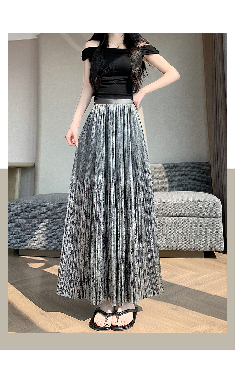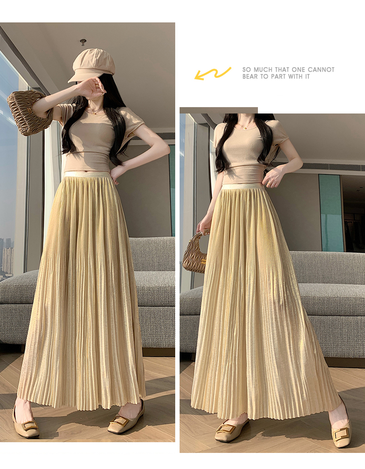 RY1333# 实拍 2026春夏松紧腰显瘦钻石感烫银珠光纱中长半身a字裙百褶伞裙