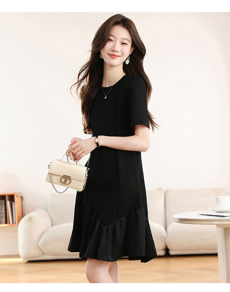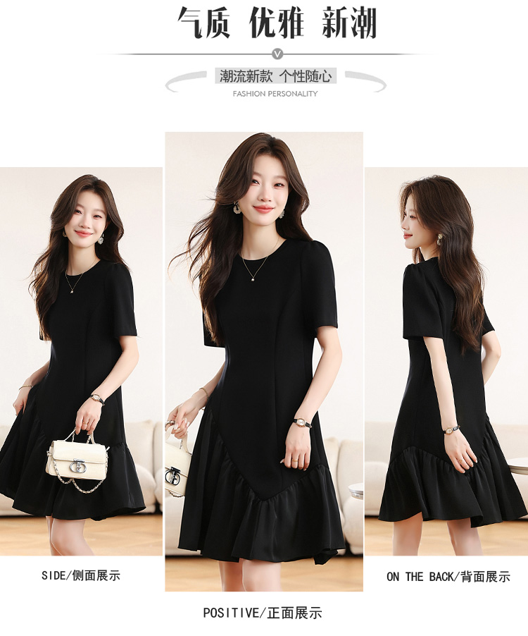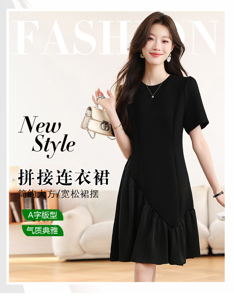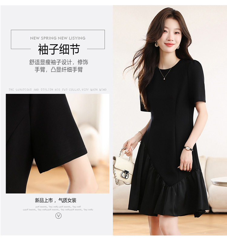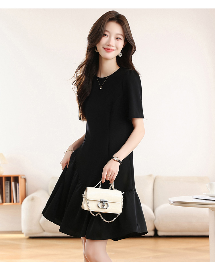 RY1343# 实拍 小个子赫本风黑色连衣裙女夏新款高级感法式气质显瘦a字裙子