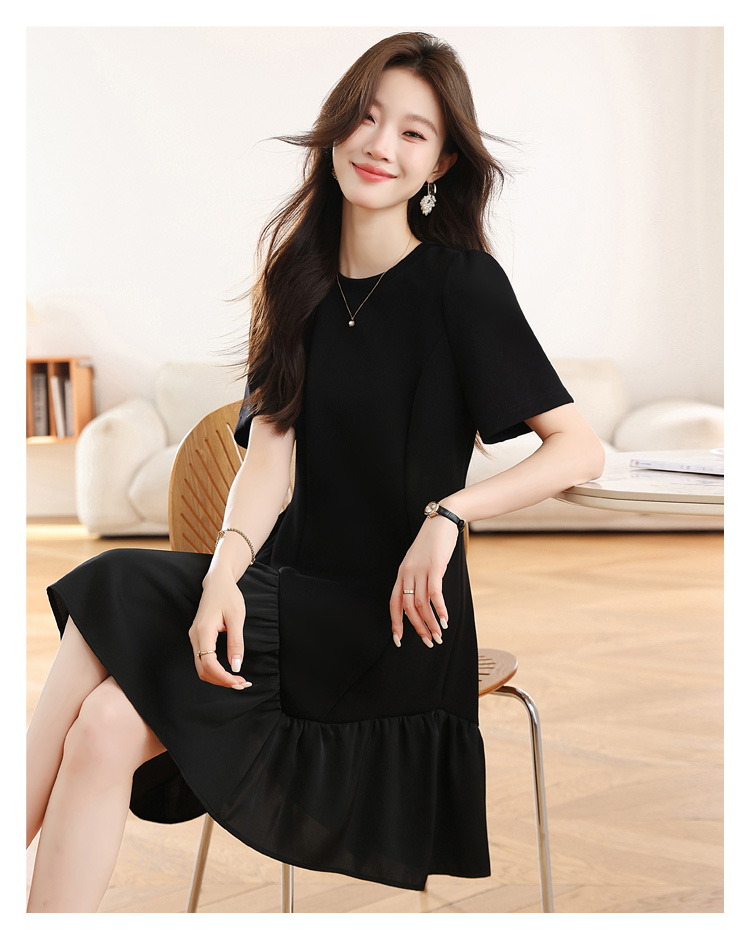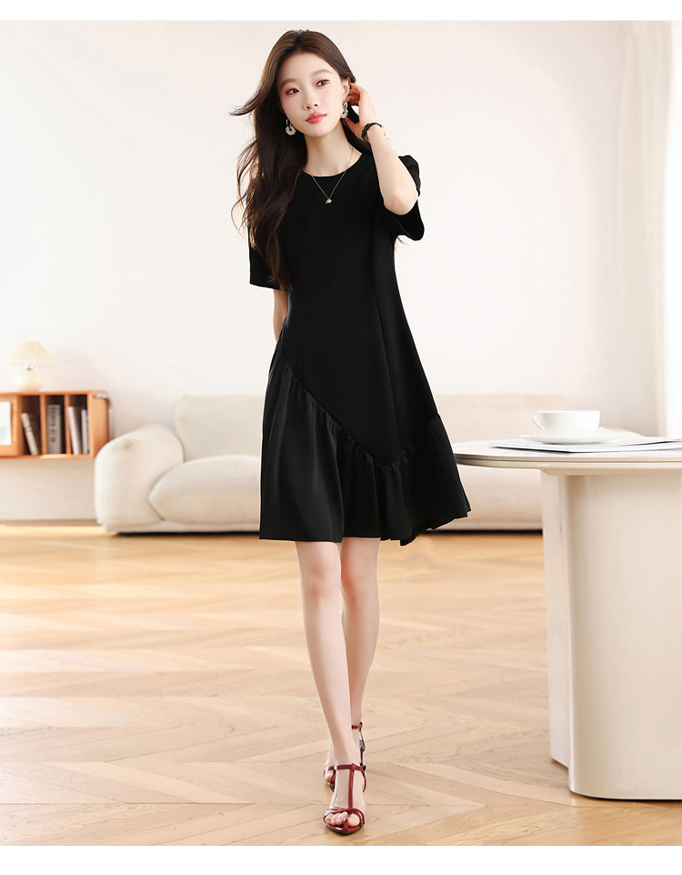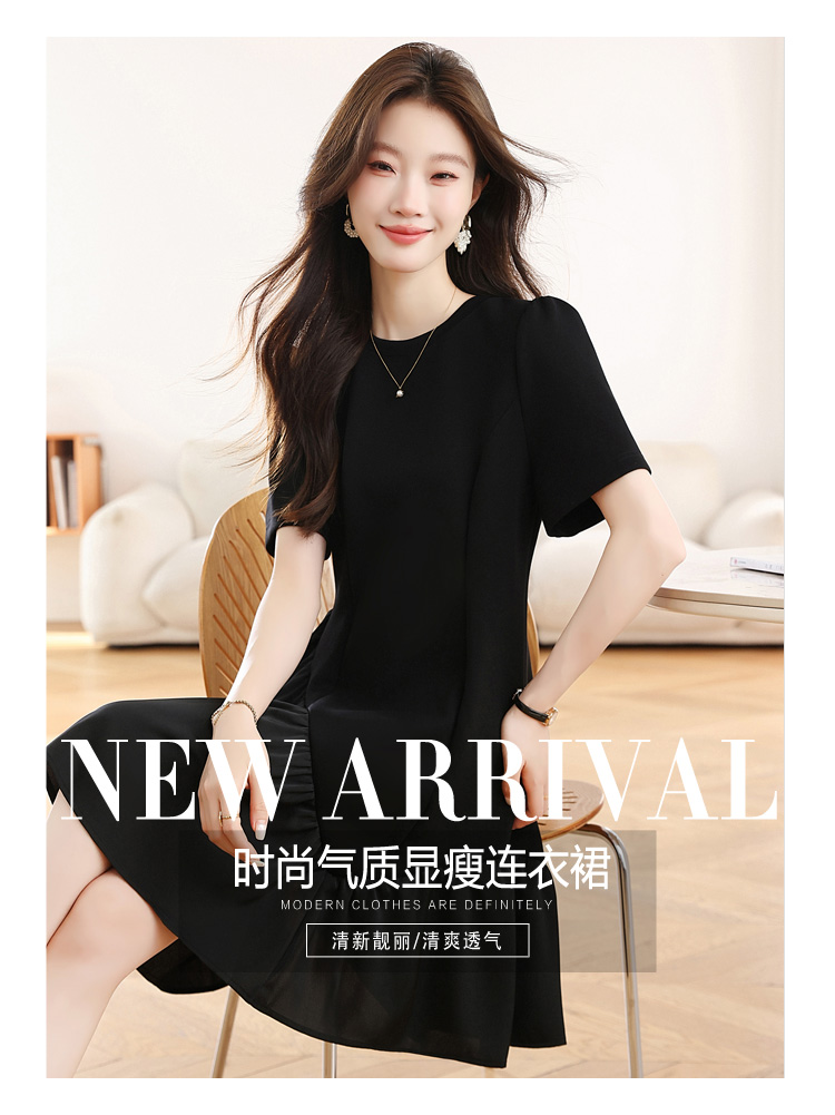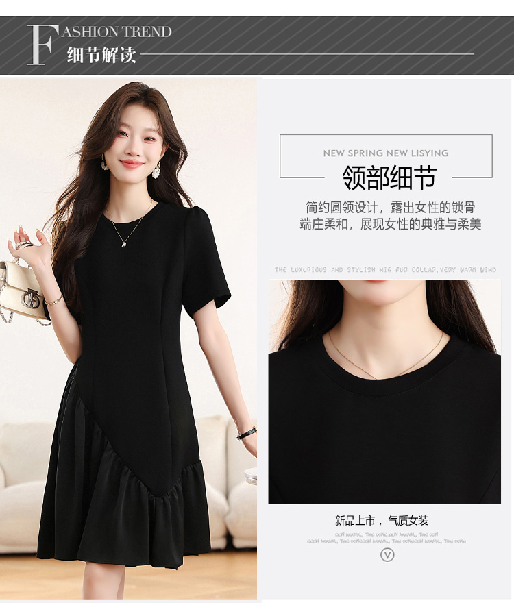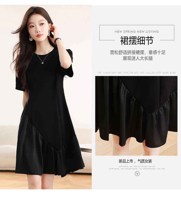 RY1343# 实拍 小个子赫本风黑色连衣裙女夏新款高级感法式气质显瘦a字裙子