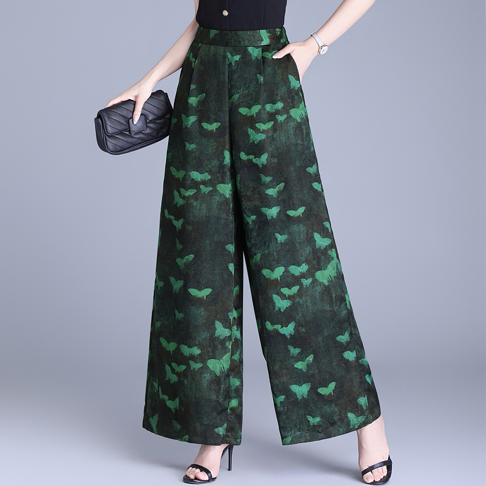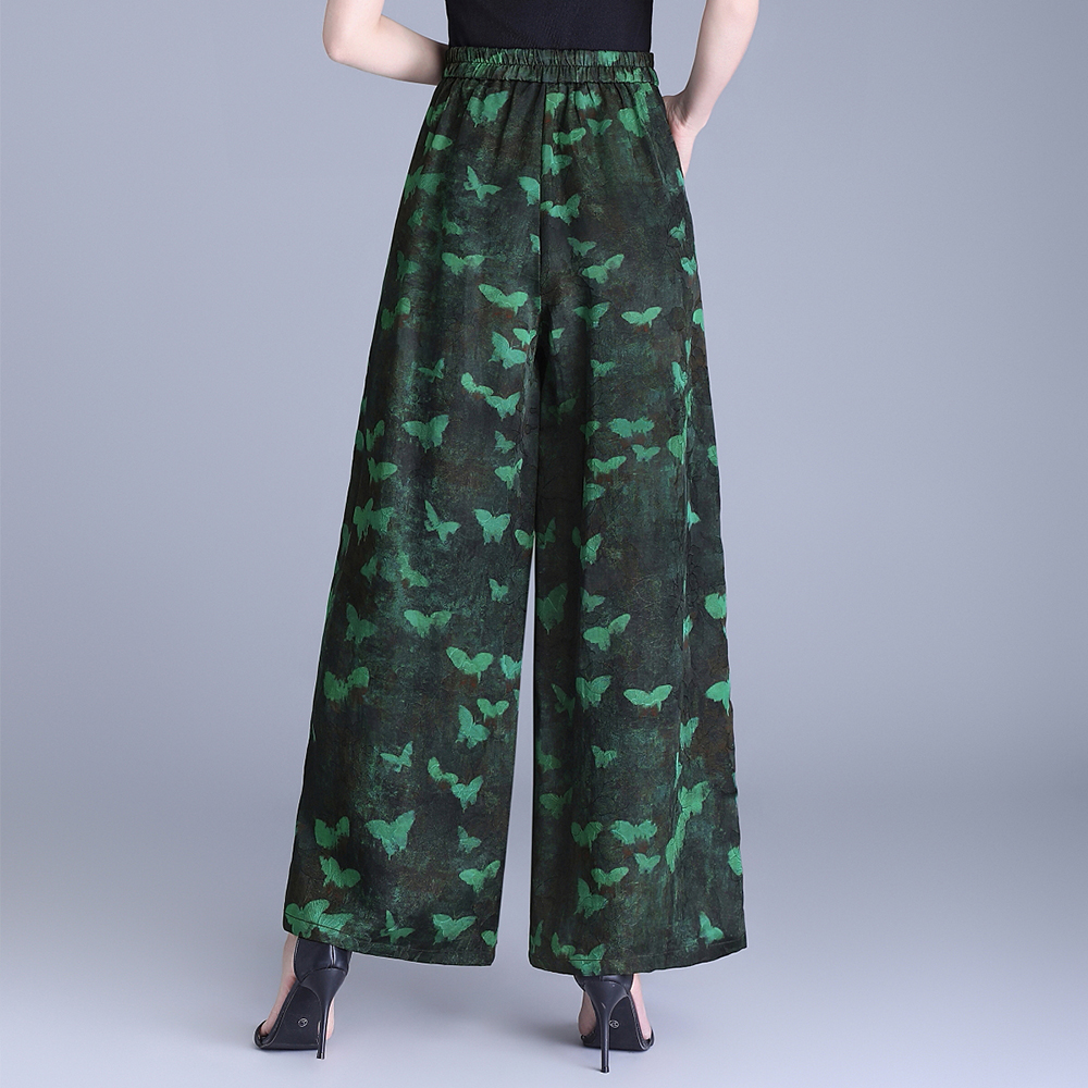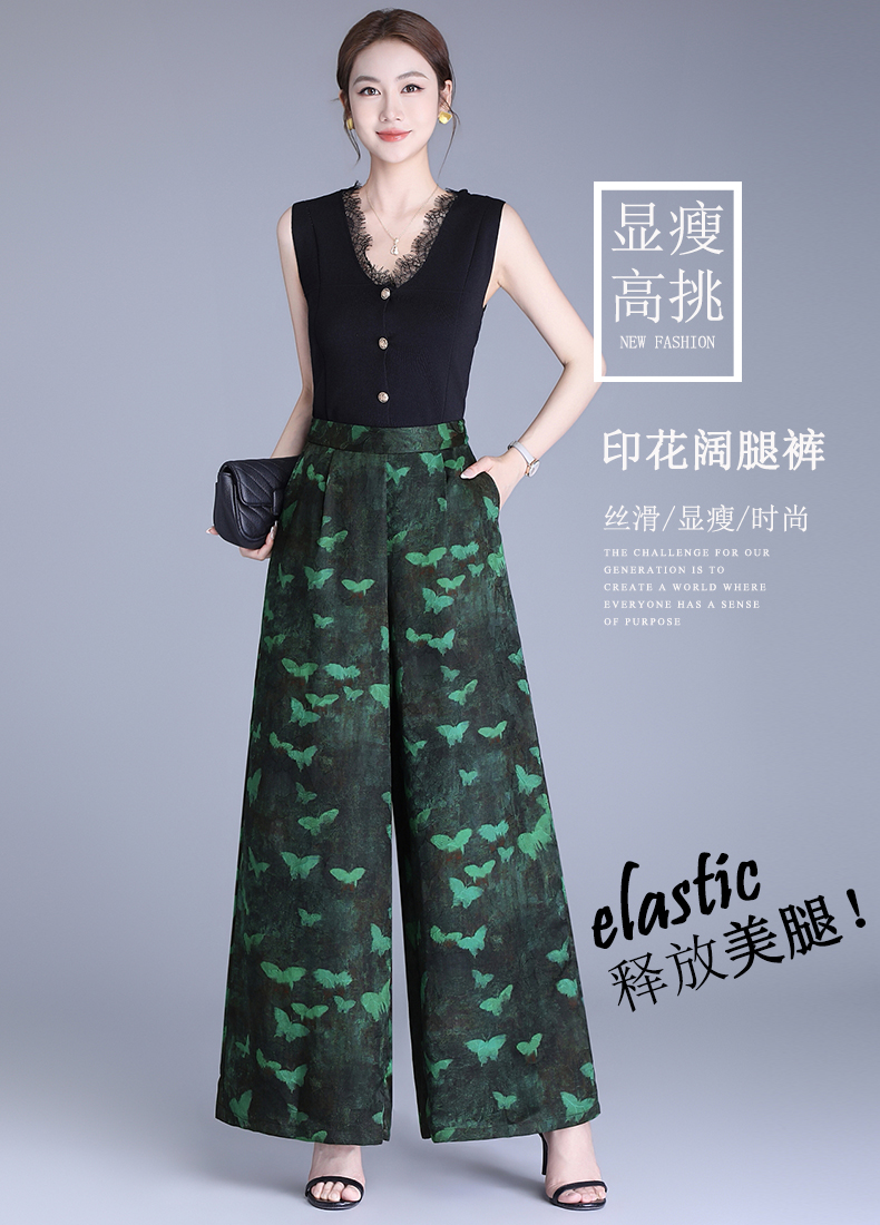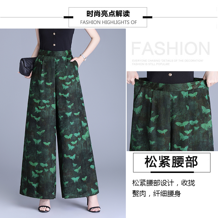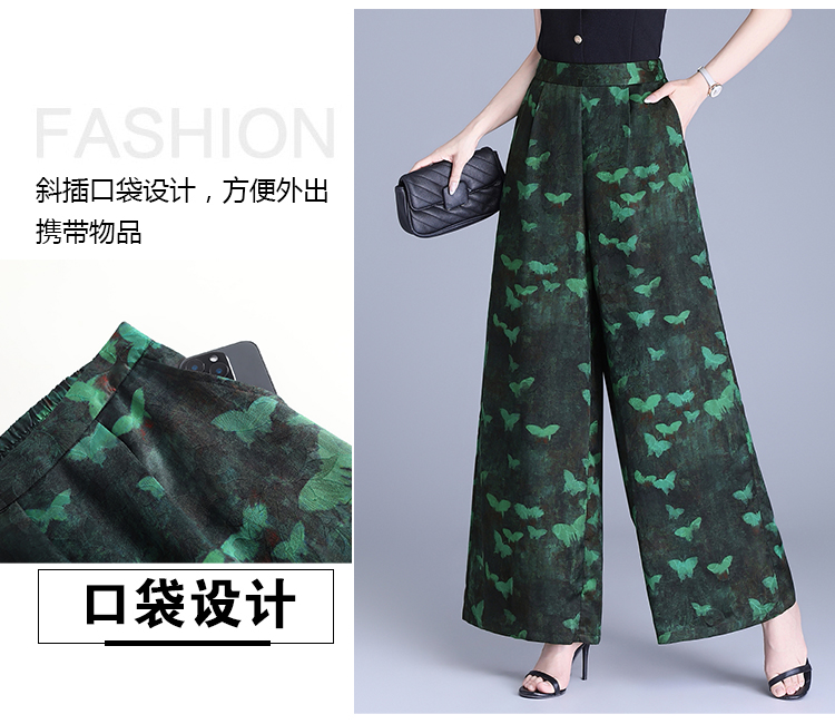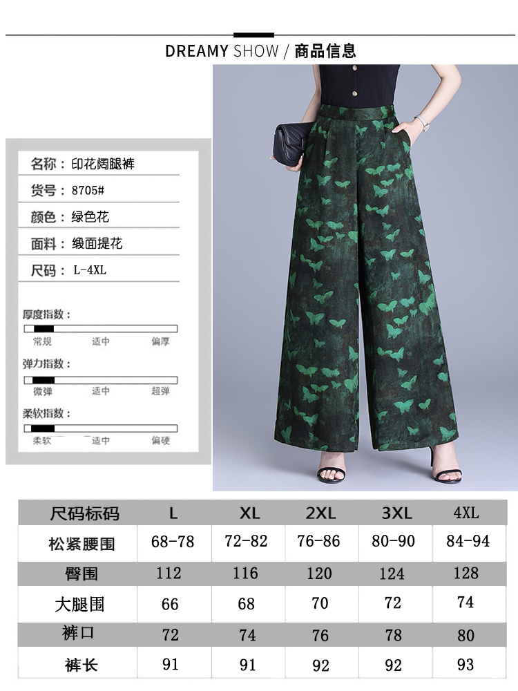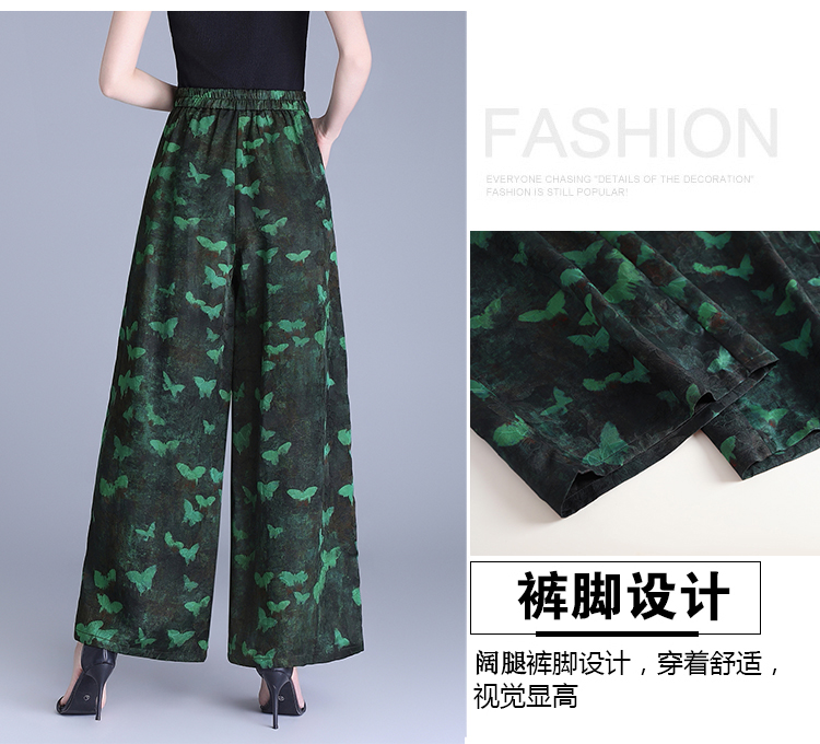 RY1344# 实拍大码宽松阔腿裤春夏妈妈装印花真丝阔腿裤