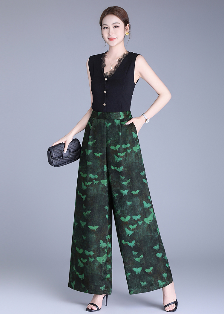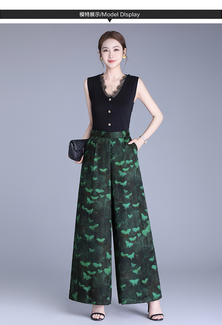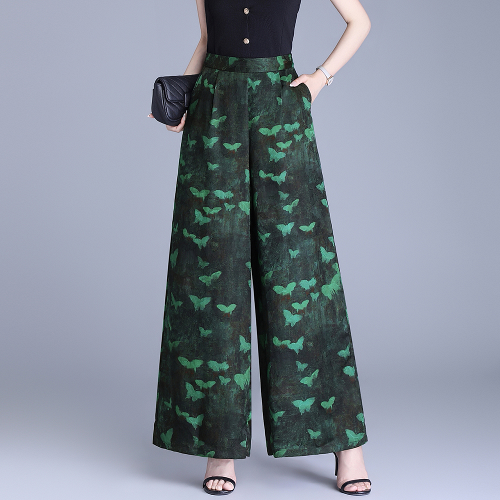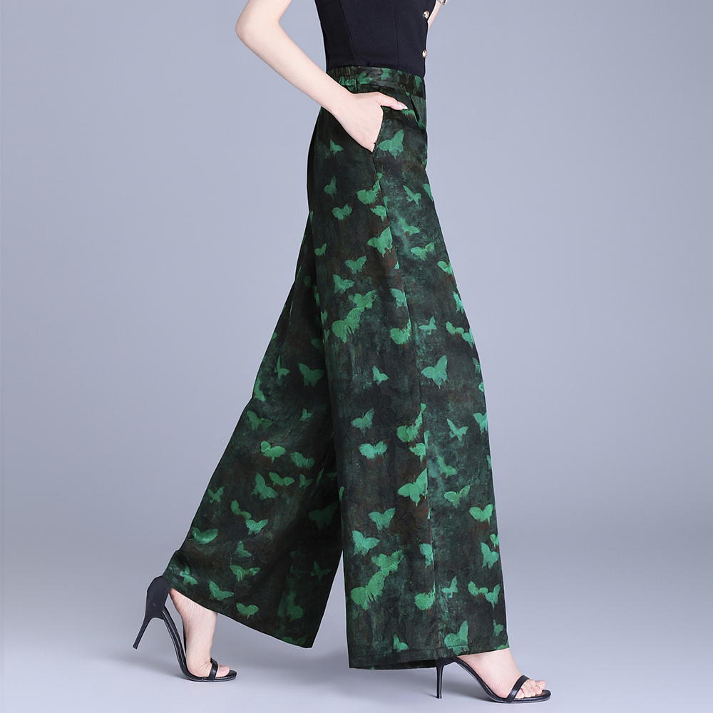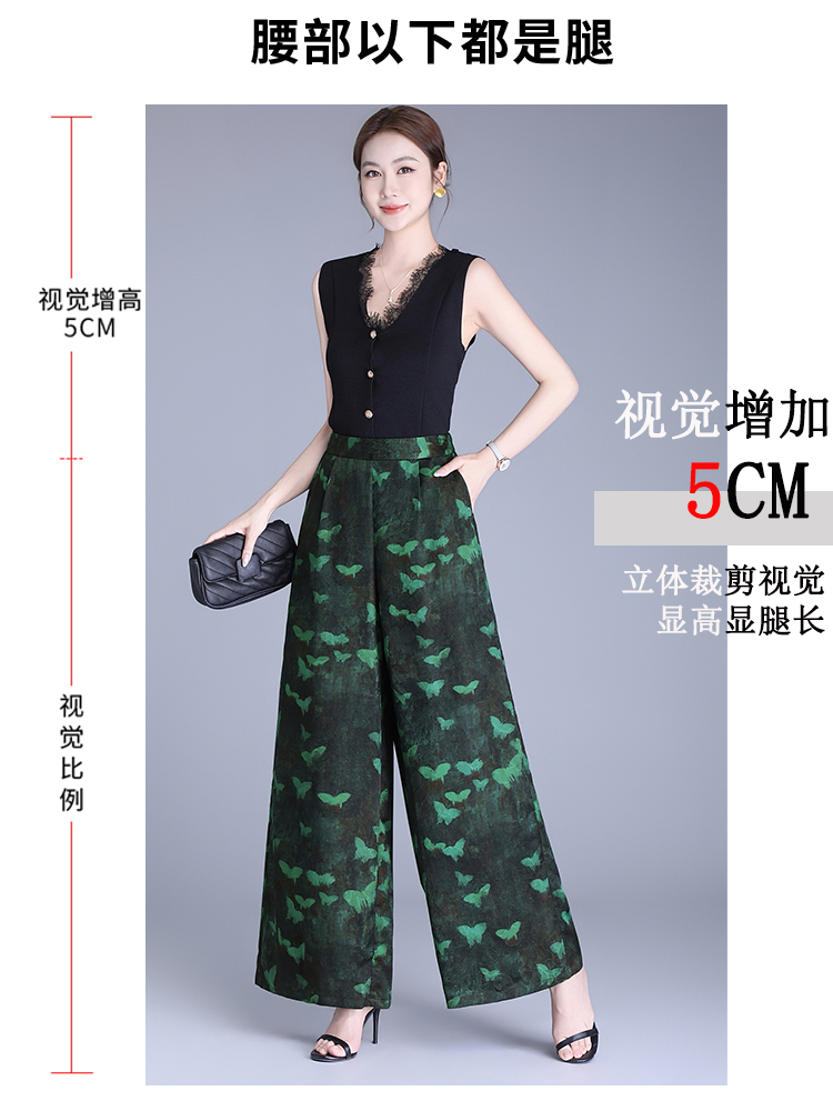 RY1344# 实拍大码宽松阔腿裤春夏妈妈装印花真丝阔腿裤