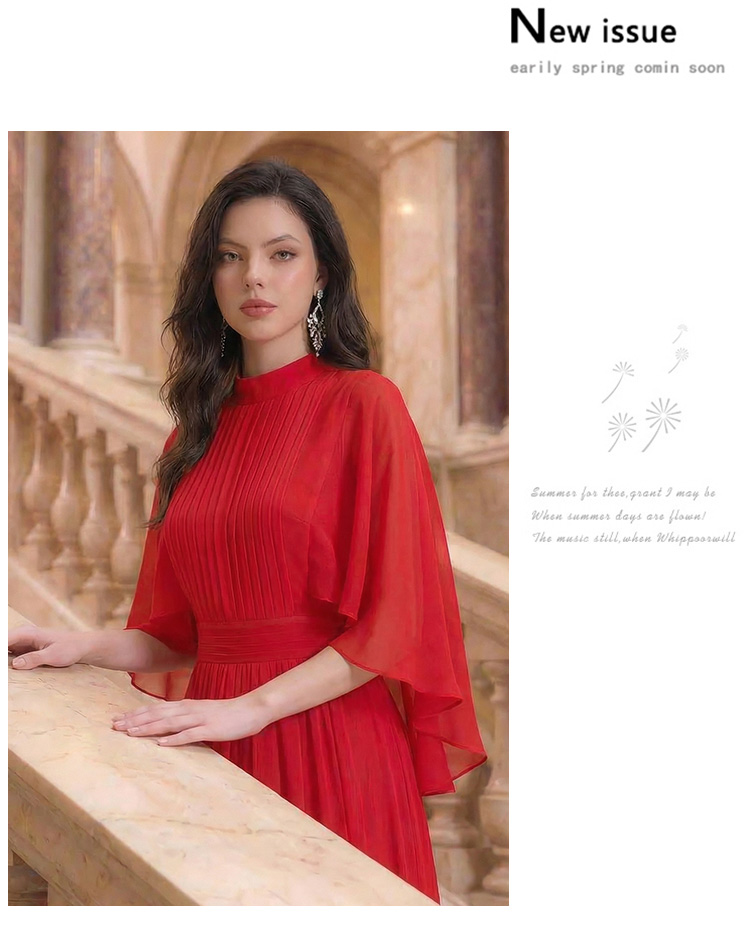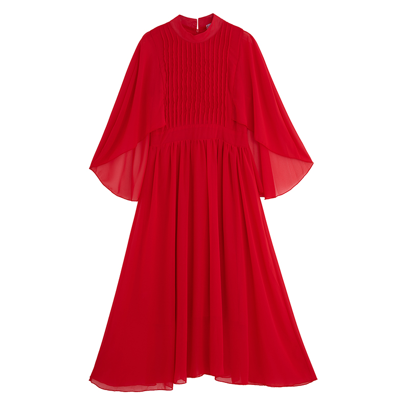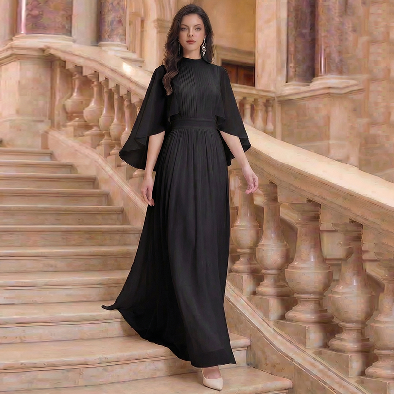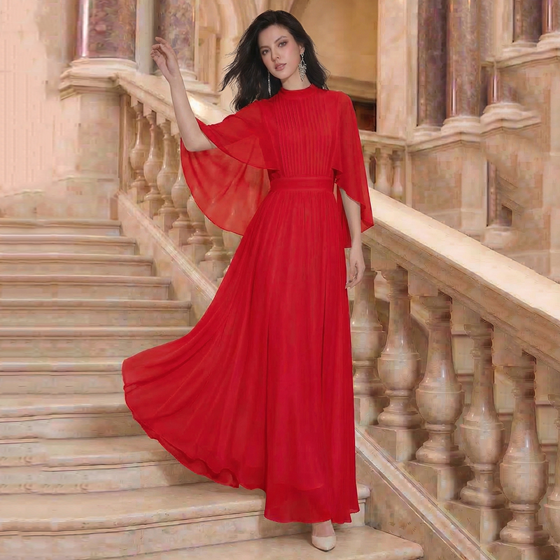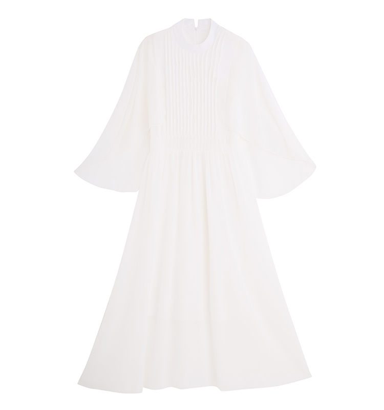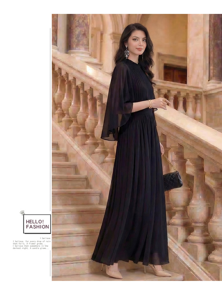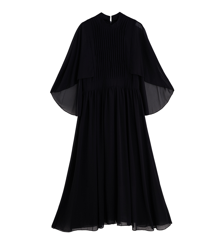 RY1345# 斗篷轻奢女装连衣裙大喇叭袖半高领白色长款裙子雪纺超长裙大摆裙