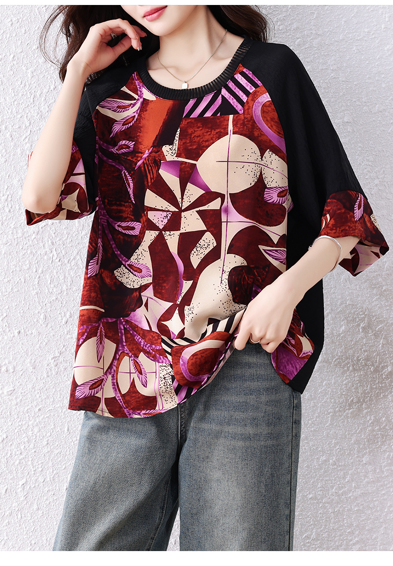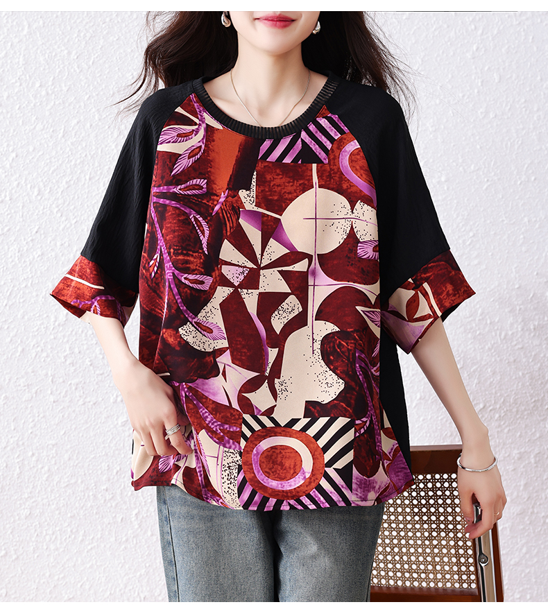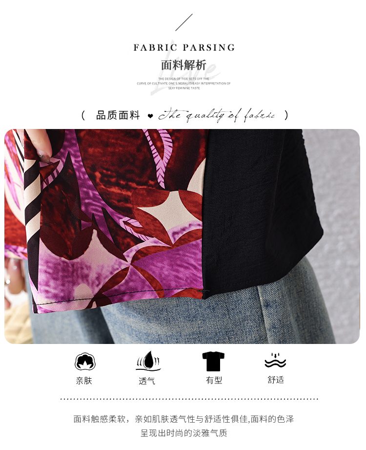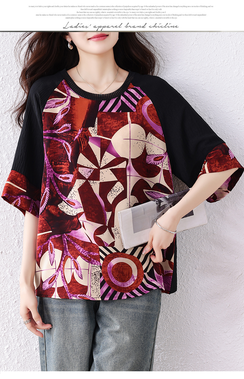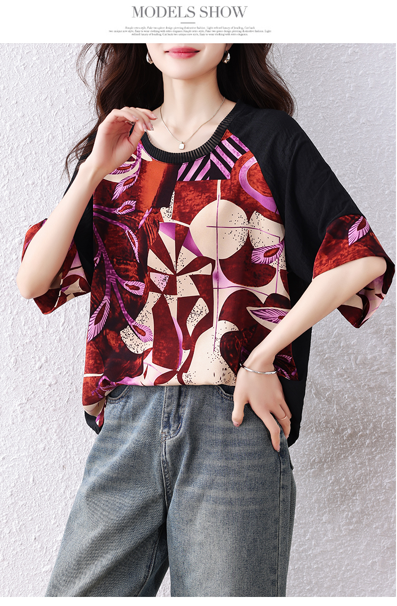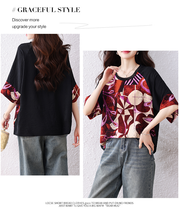 RY1353# 实拍2026夏季新款胖妹妹时尚减龄宽松遮肉显瘦拼接印花T恤上衣