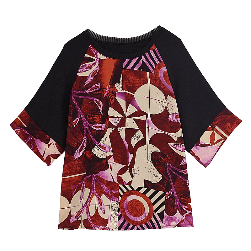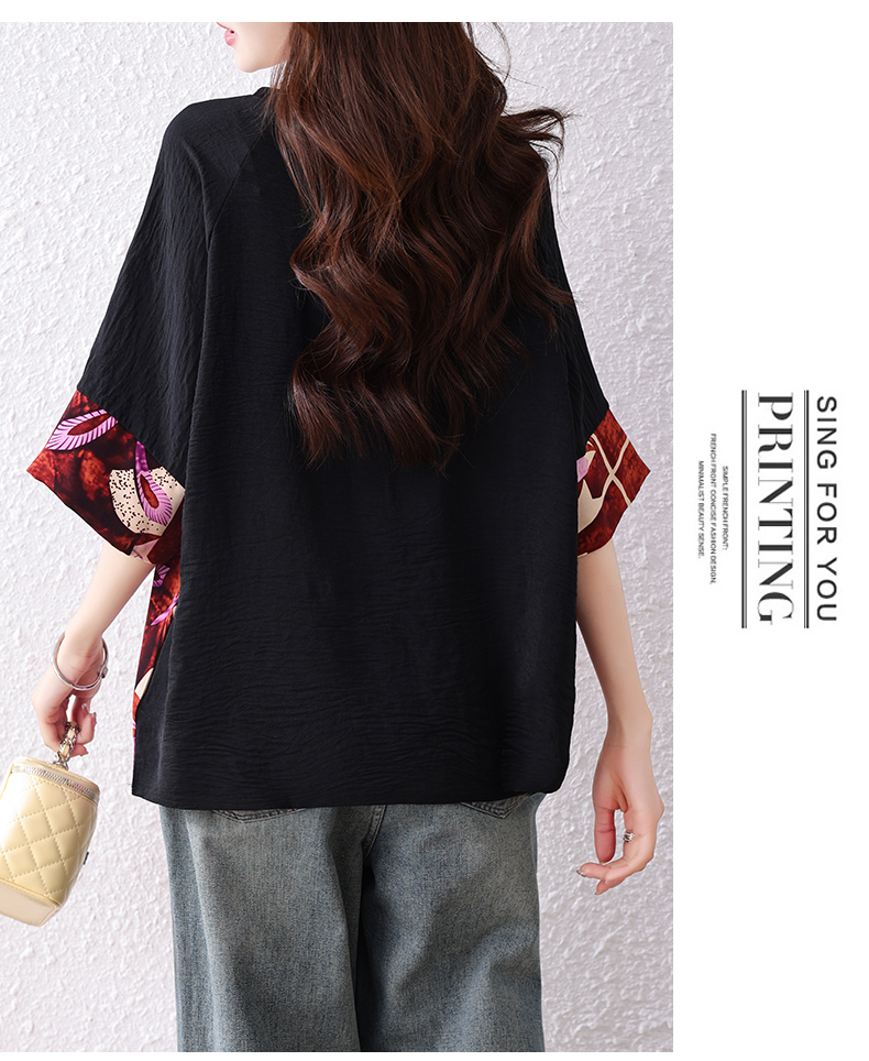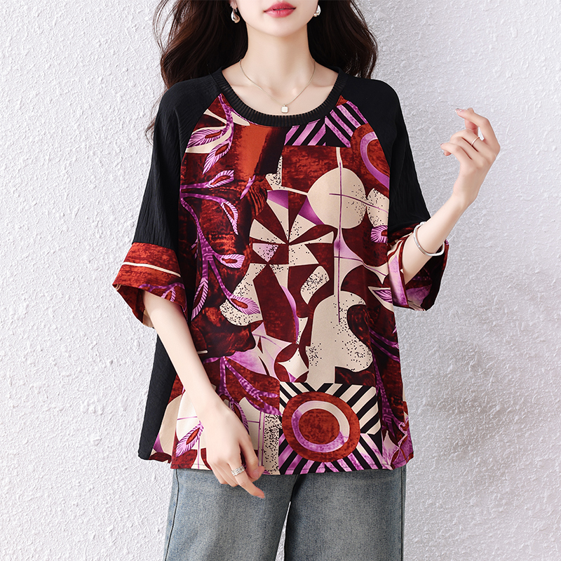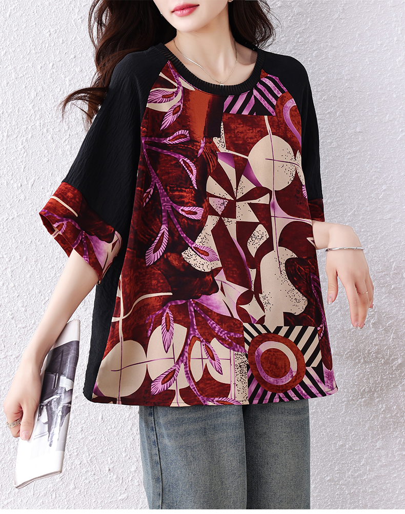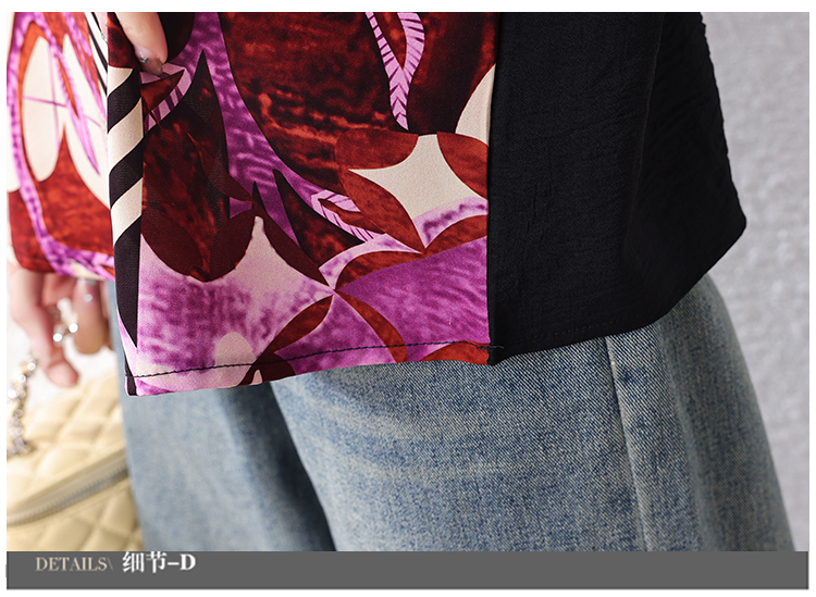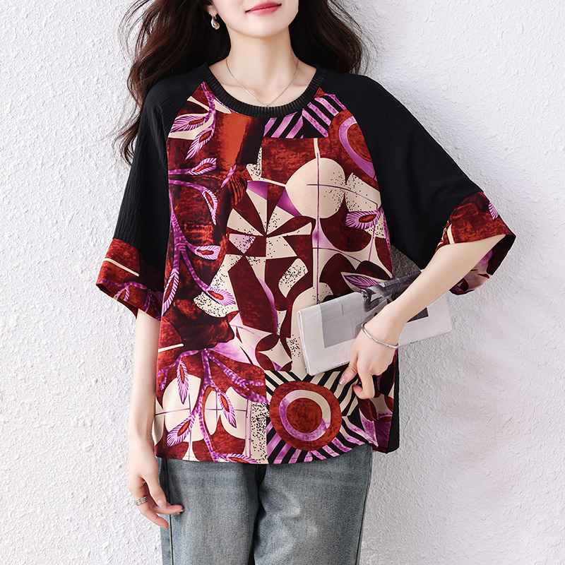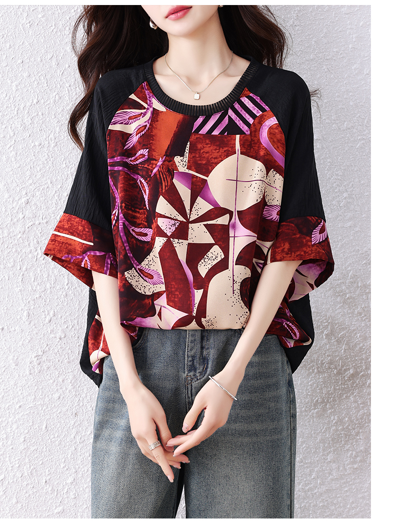 RY1353# 实拍2026夏季新款胖妹妹时尚减龄宽松遮肉显瘦拼接印花T恤上衣
