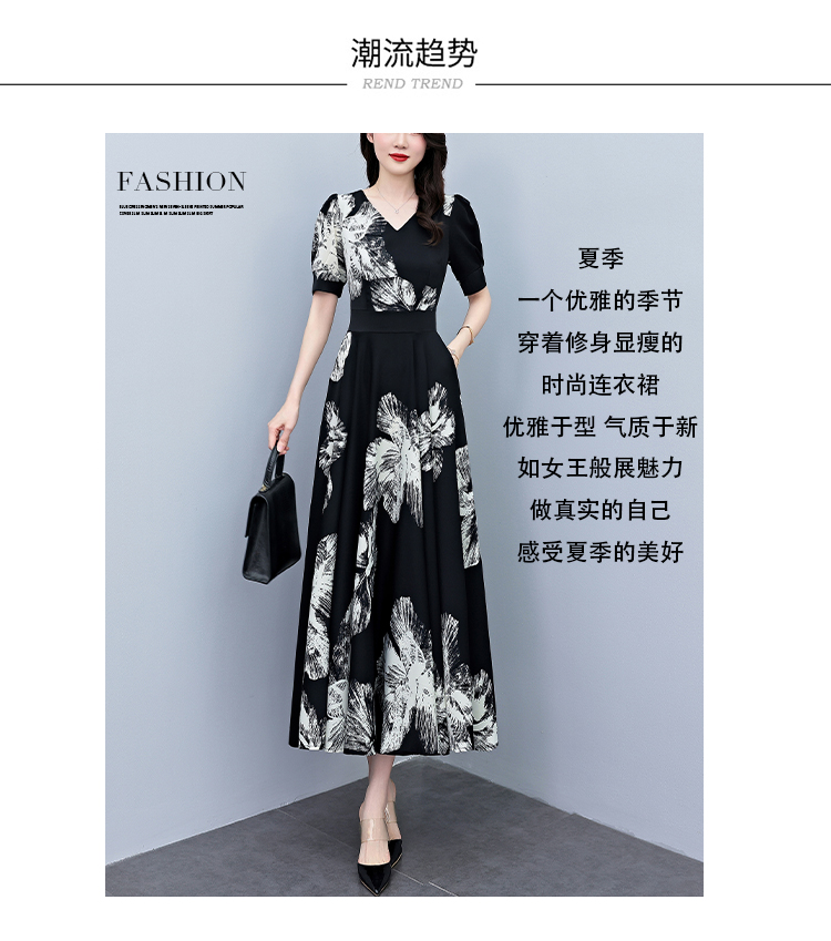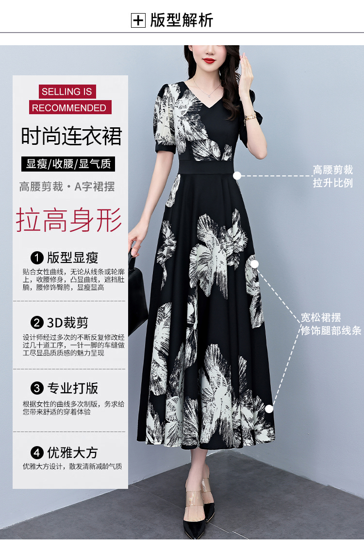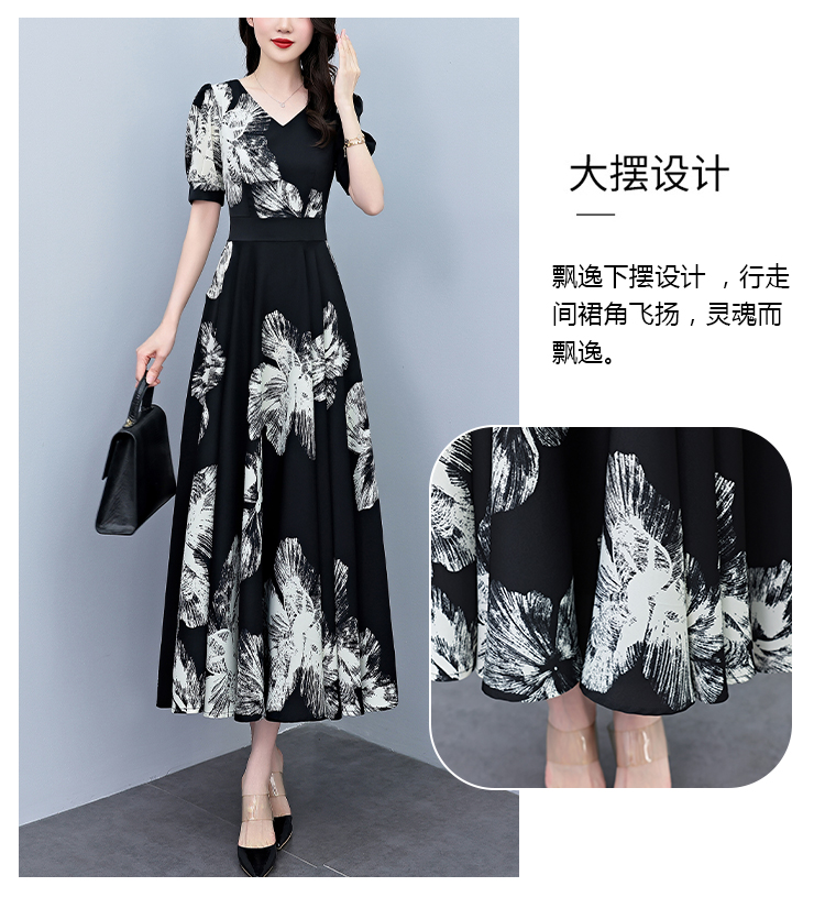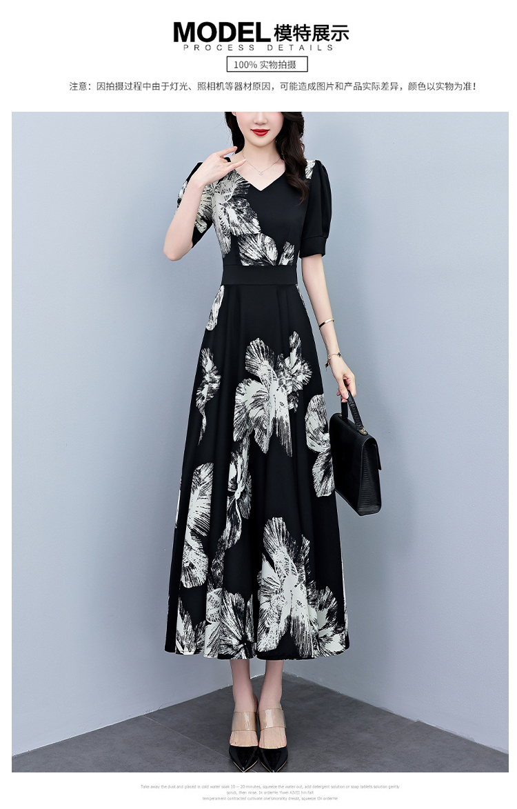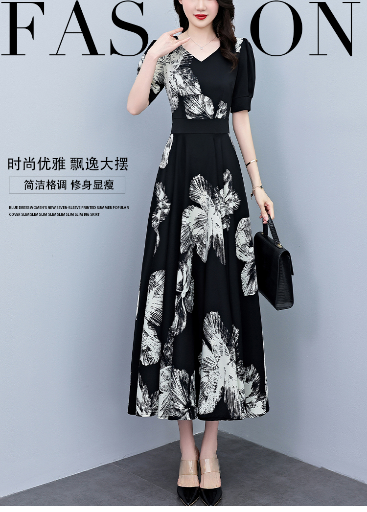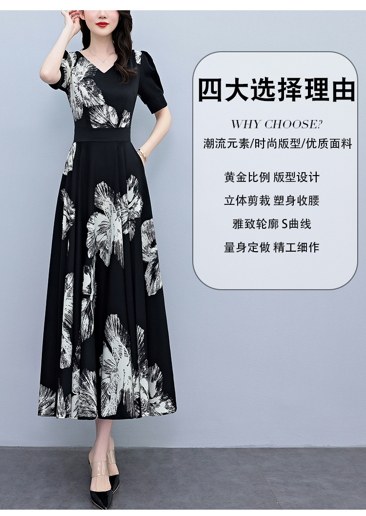 RY1373# 2026夏季新款高档印花碎花连衣裙大码胖mm收腰显瘦遮肚长裙