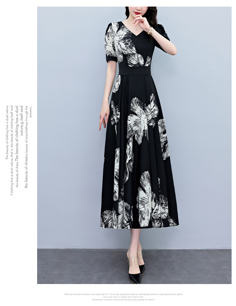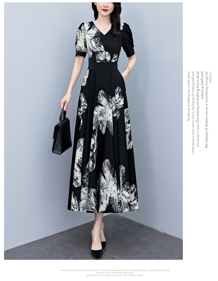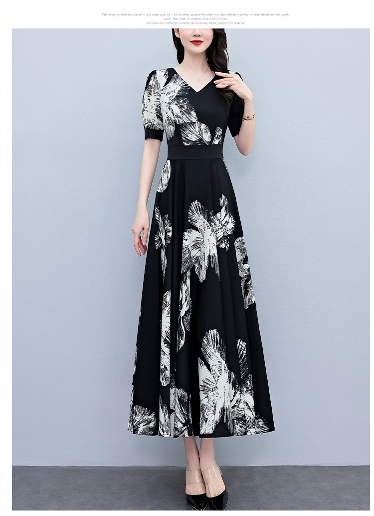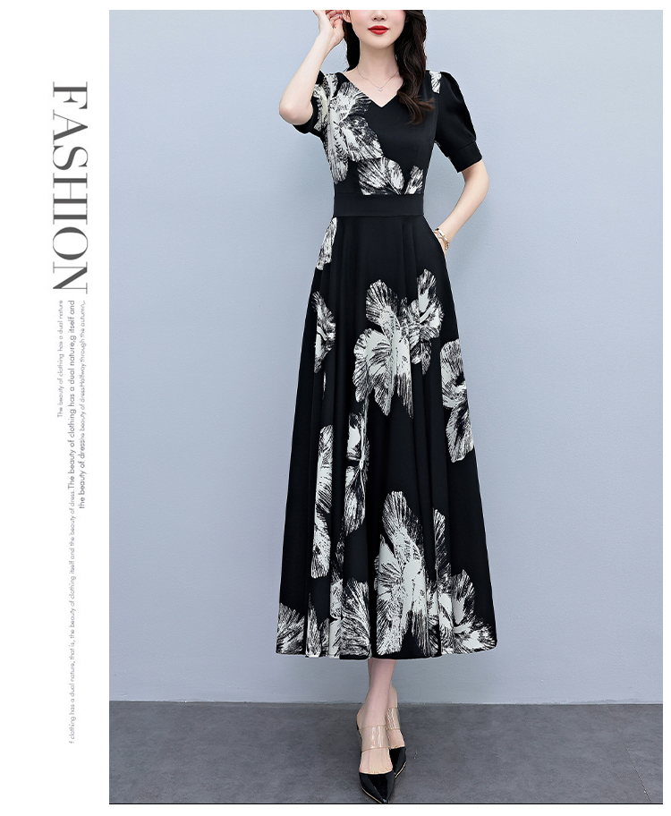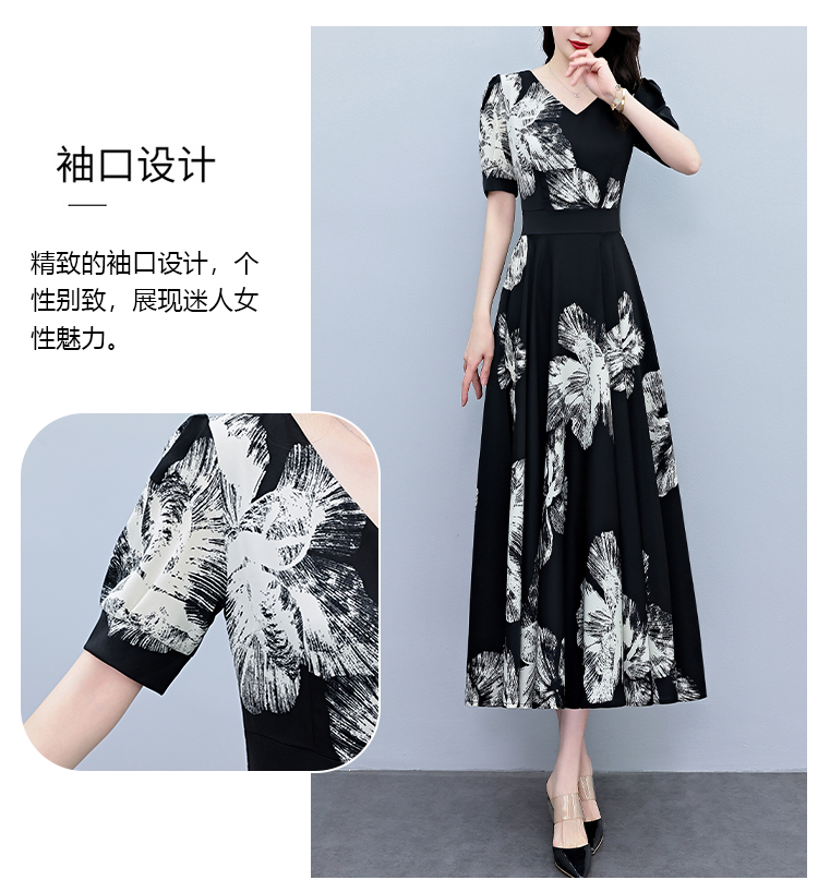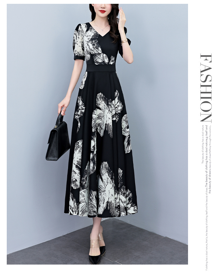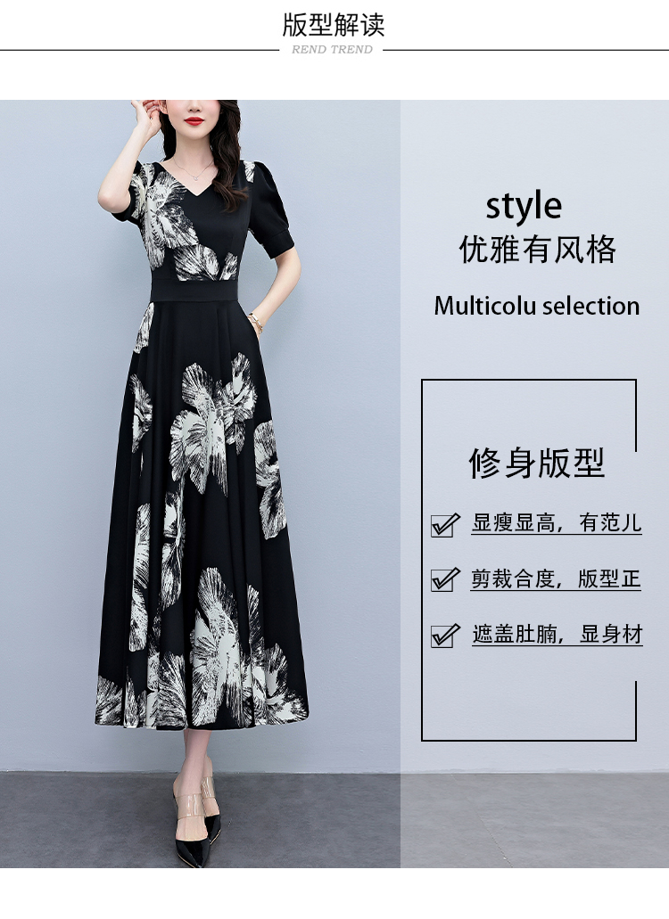 RY1373# 2026夏季新款高档印花碎花连衣裙大码胖mm收腰显瘦遮肚长裙