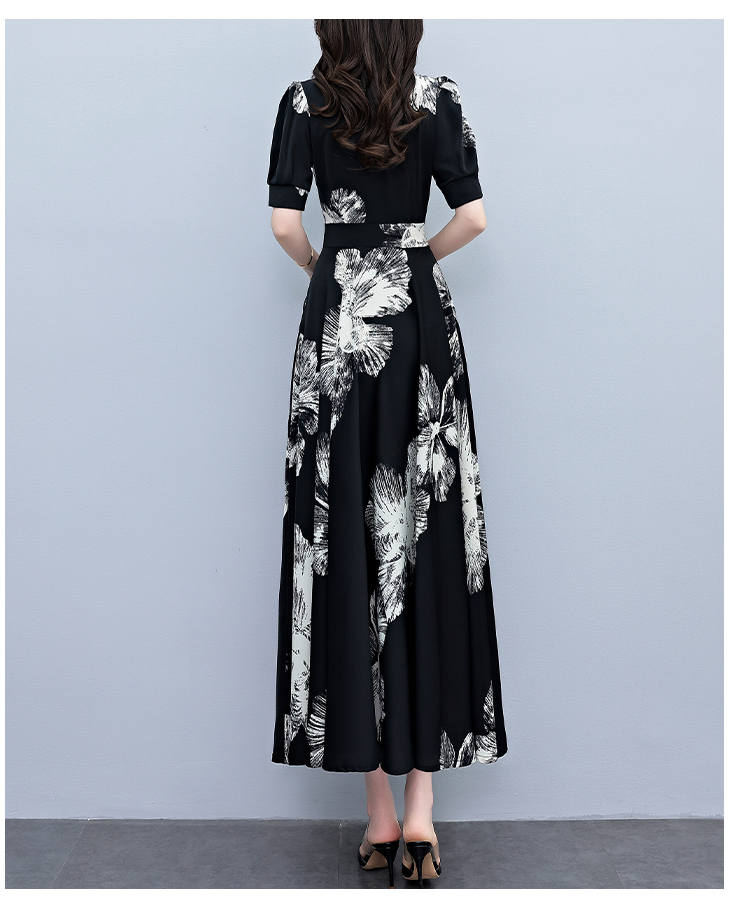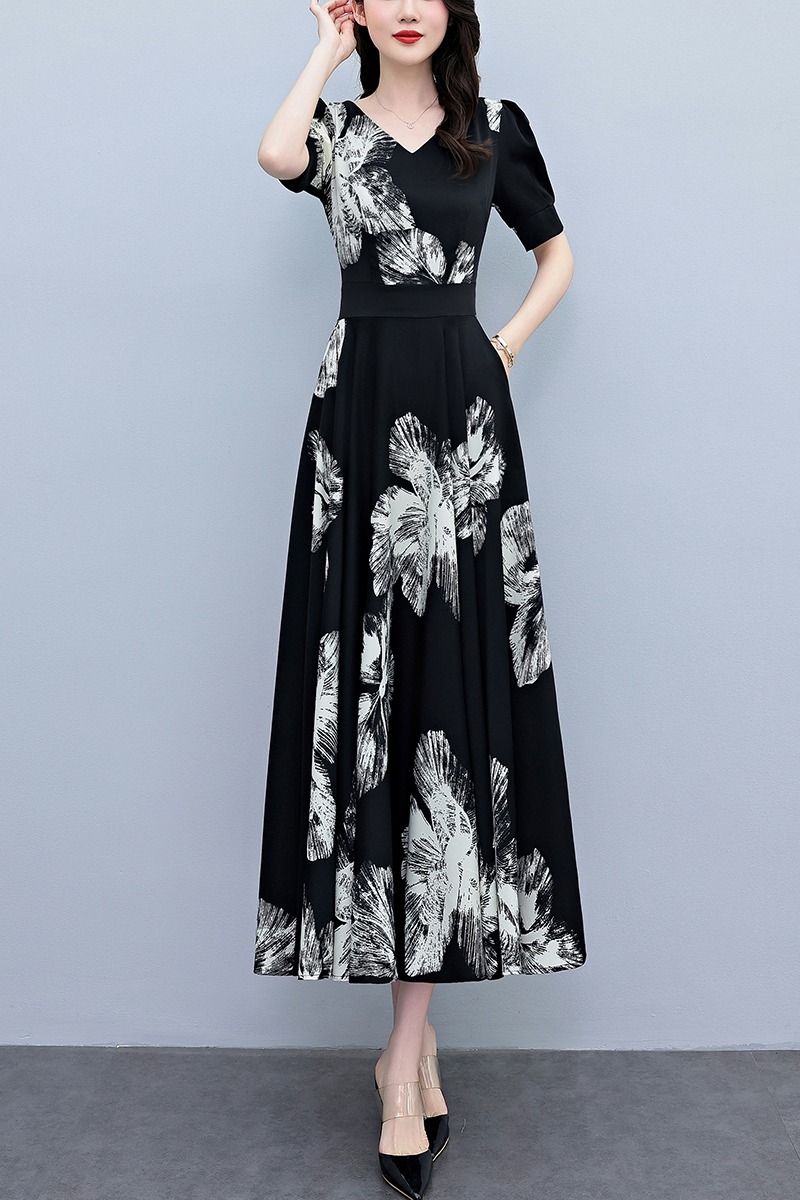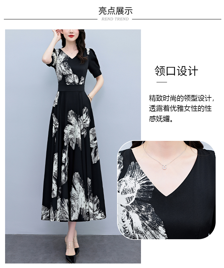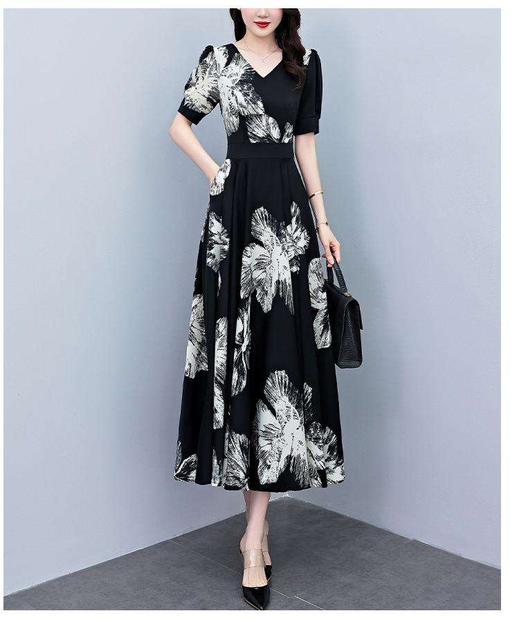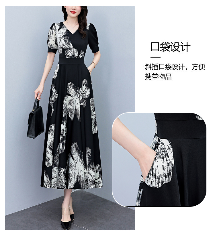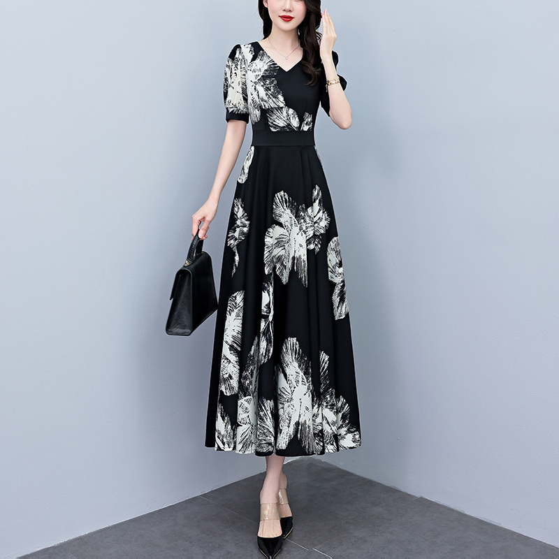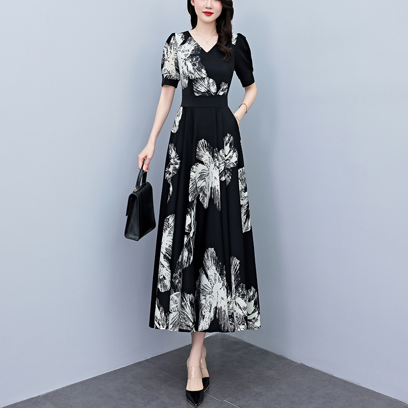 RY1373# 2026夏季新款高档印花碎花连衣裙大码胖mm收腰显瘦遮肚长裙