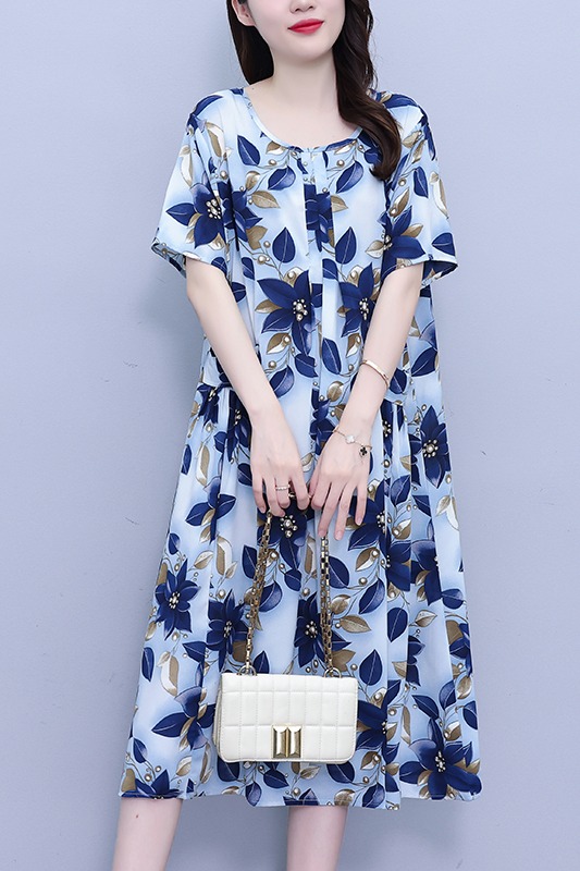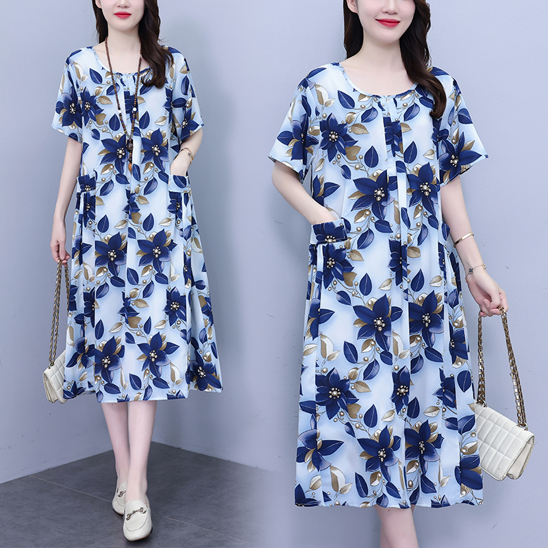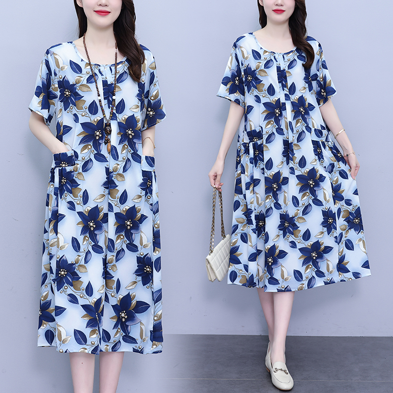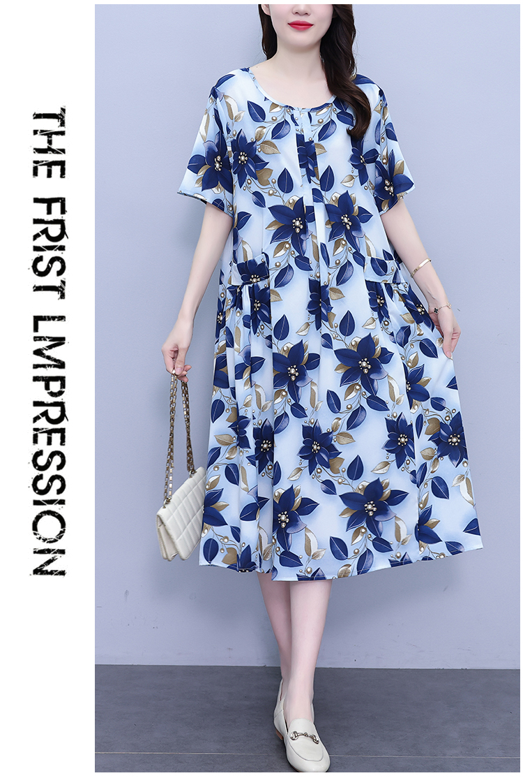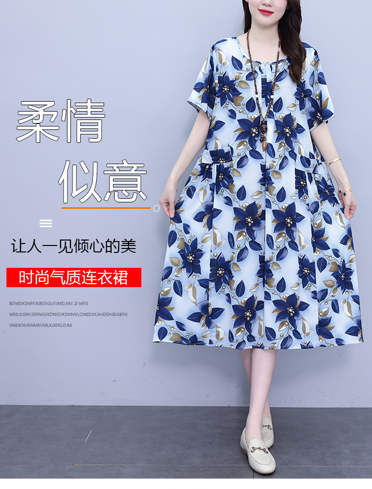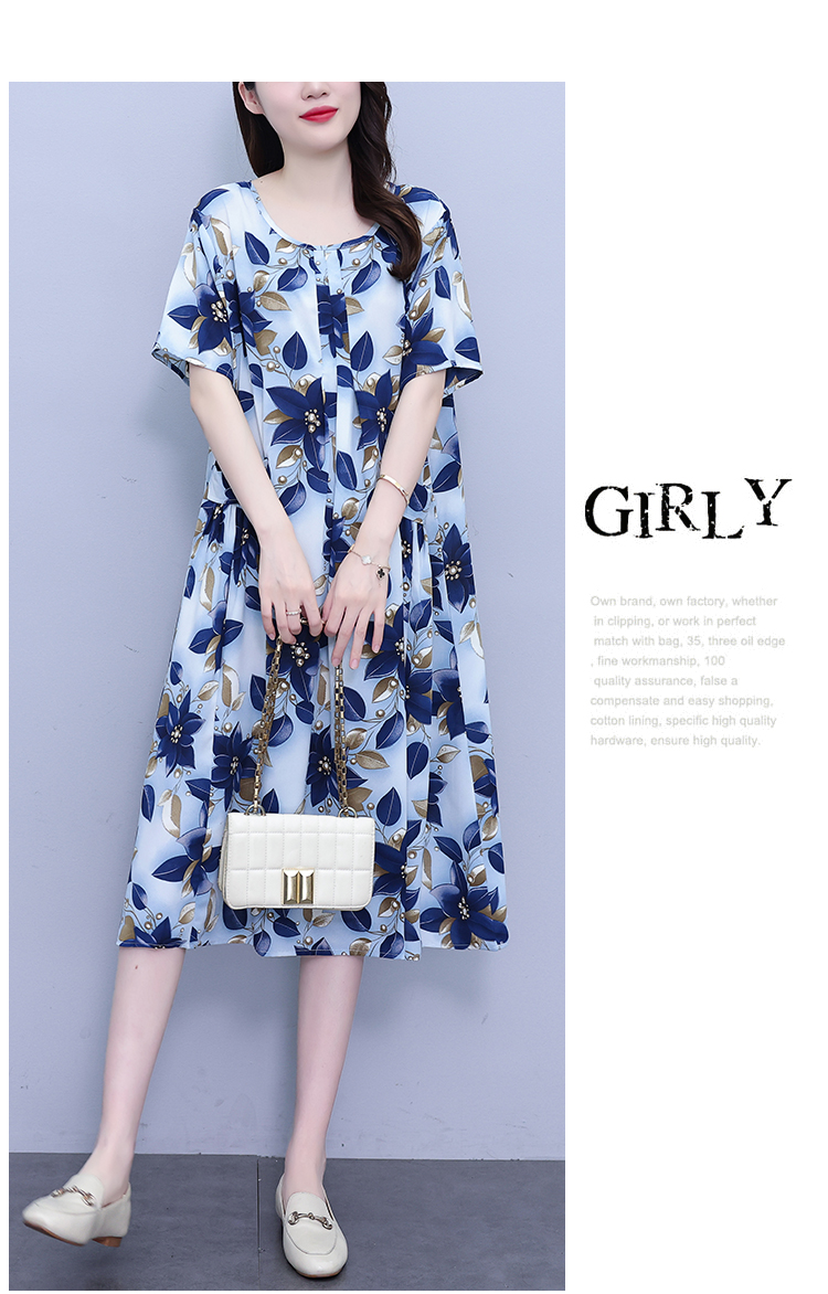 RY1389# 实拍2026夏季新款时尚连衣裙胖mm中长款宽松遮肚显瘦时尚大码女