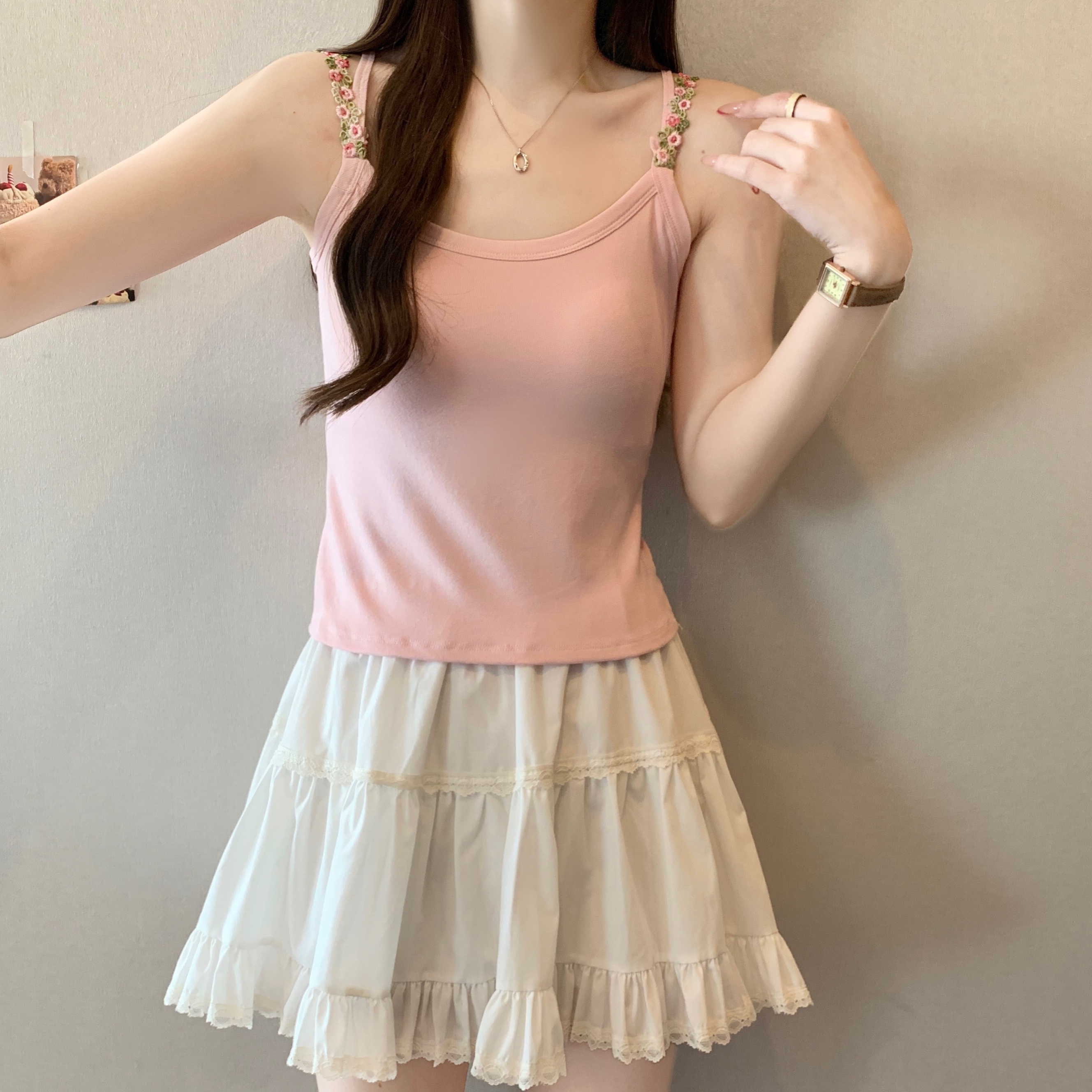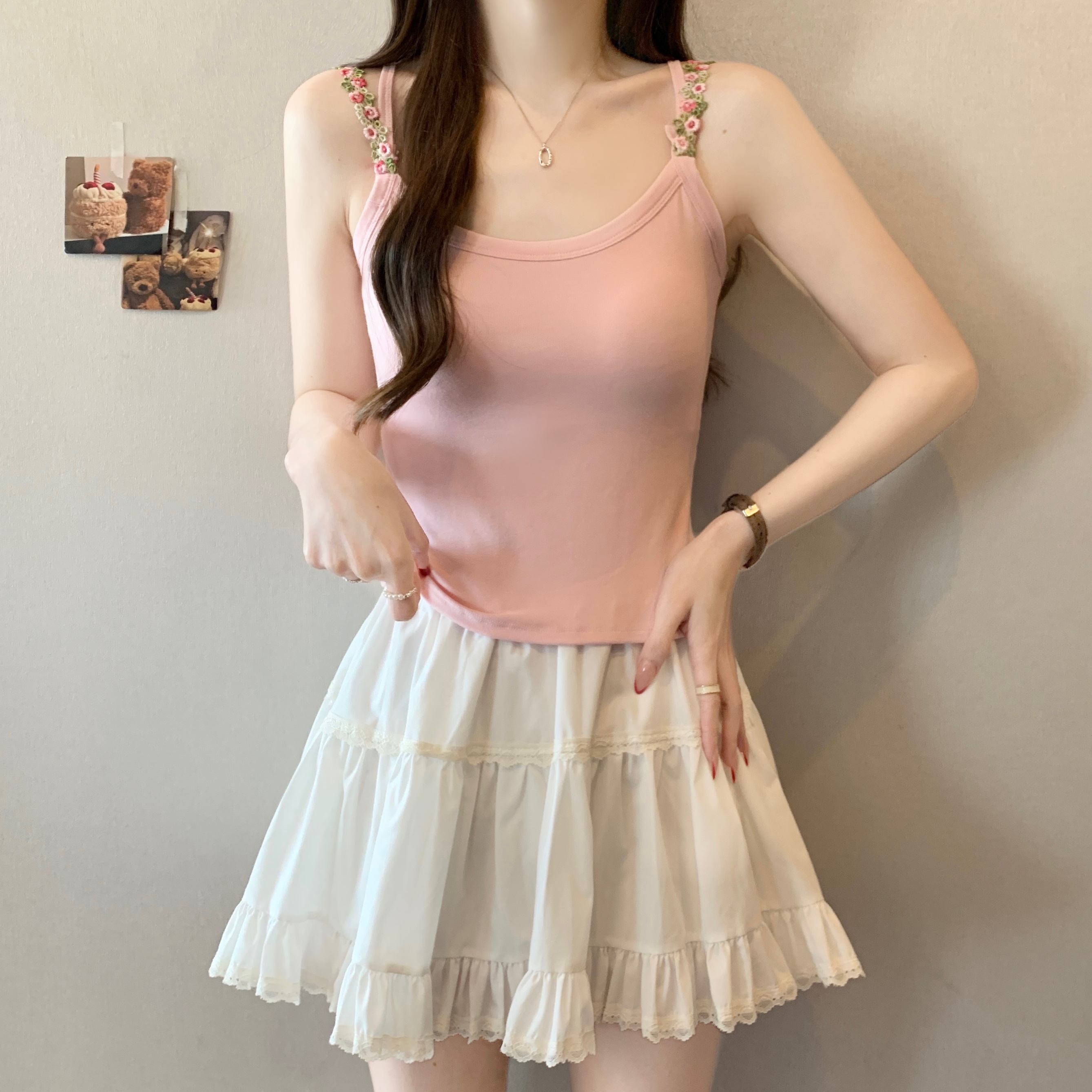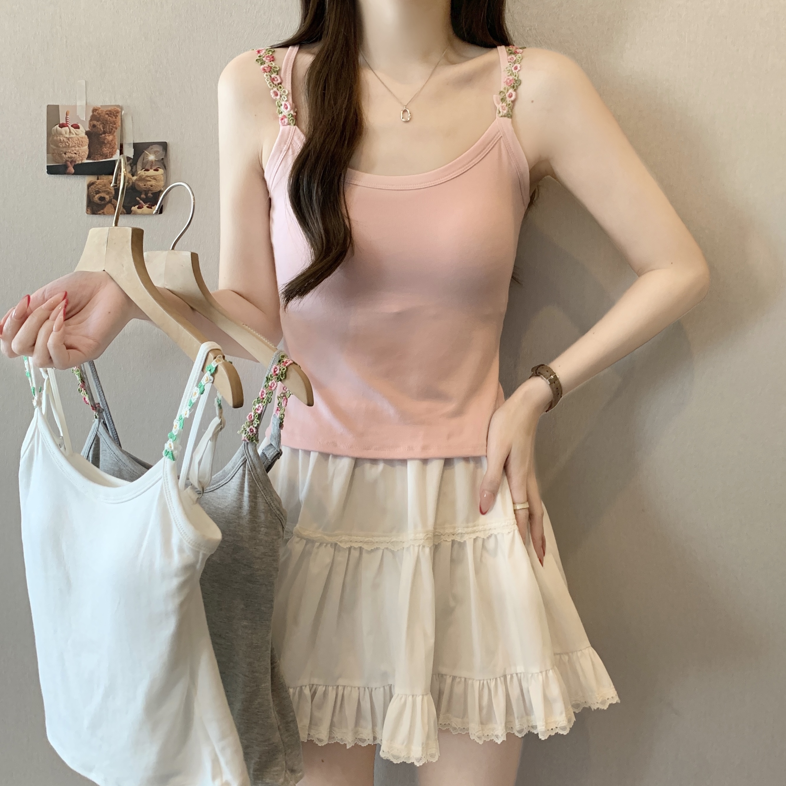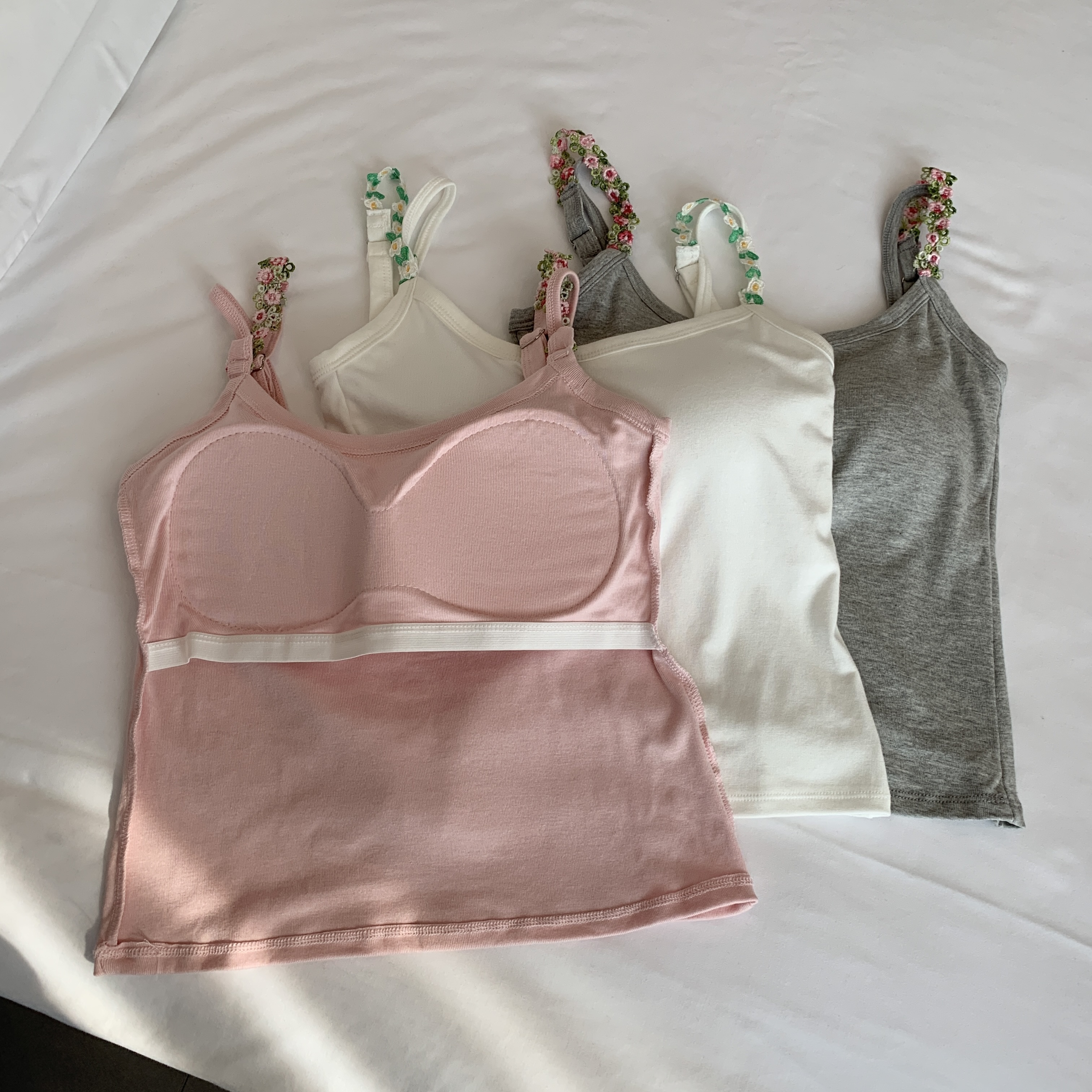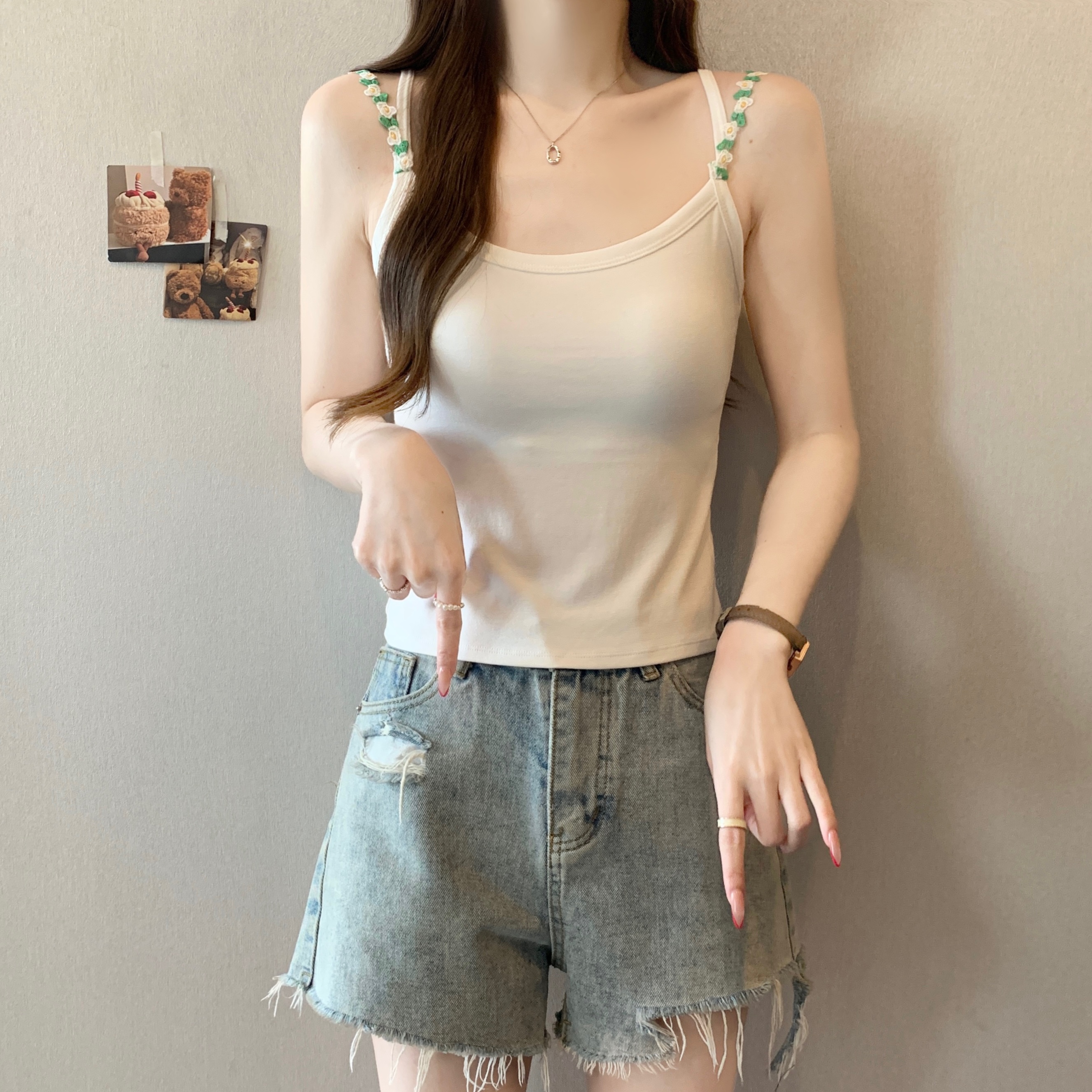 RY1409# 大码胖mm夏季新款纯欲花朵小吊带背心外穿美背带胸垫文胸一体上衣