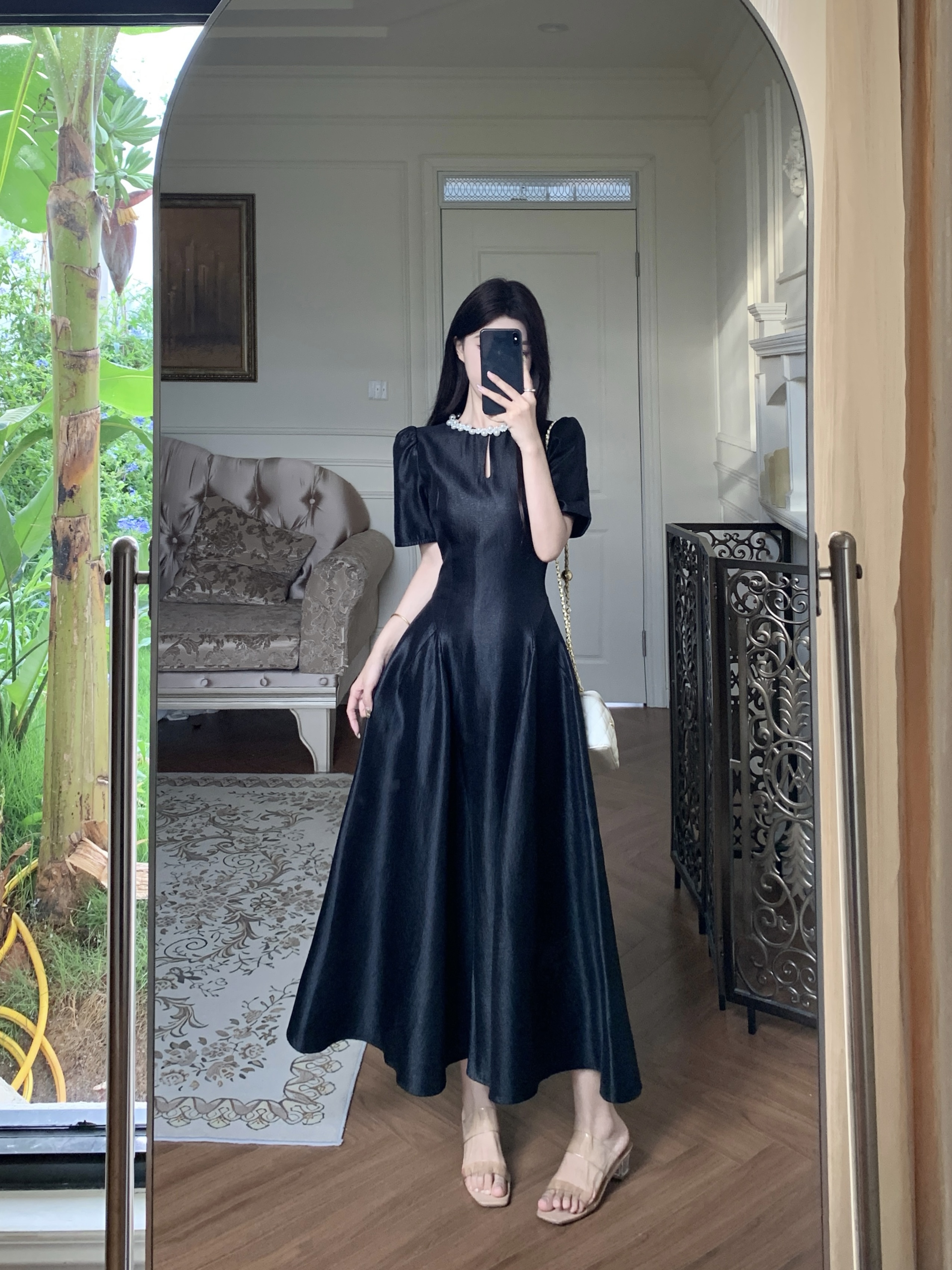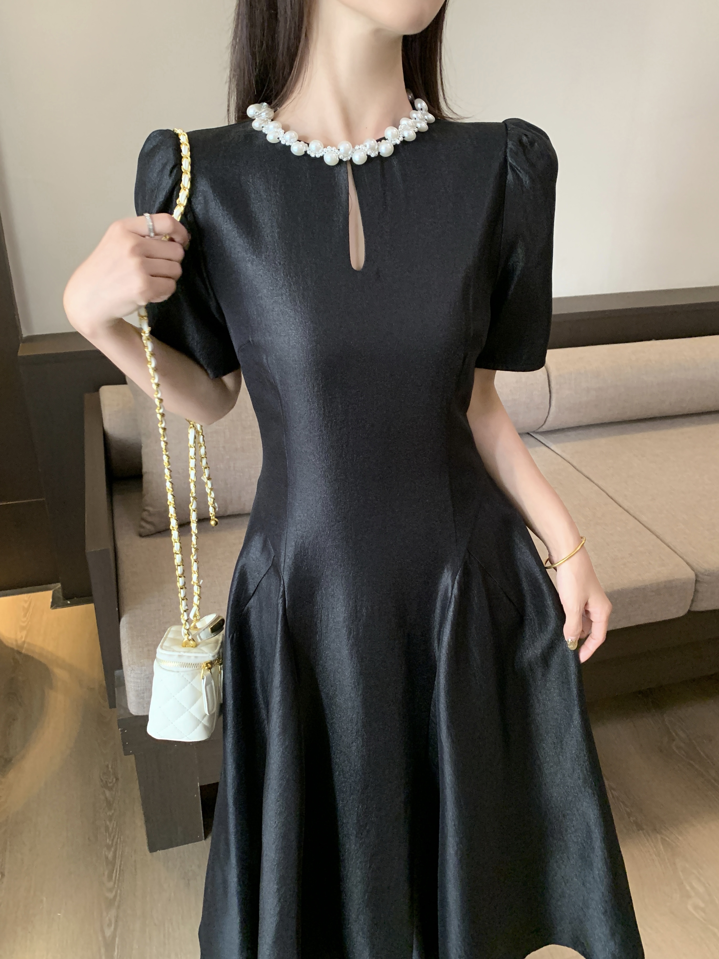 RY1465# 实拍大码夏季新款法式气质漂亮别致小众设计绝美超好看收腰连衣裙