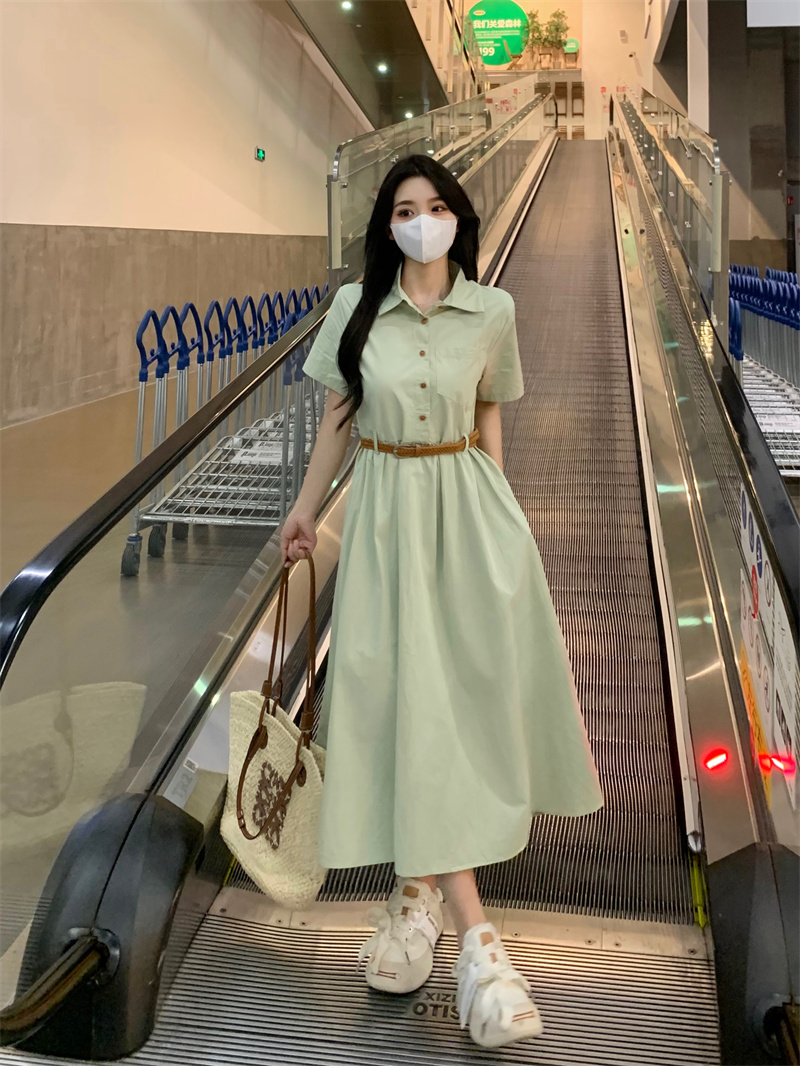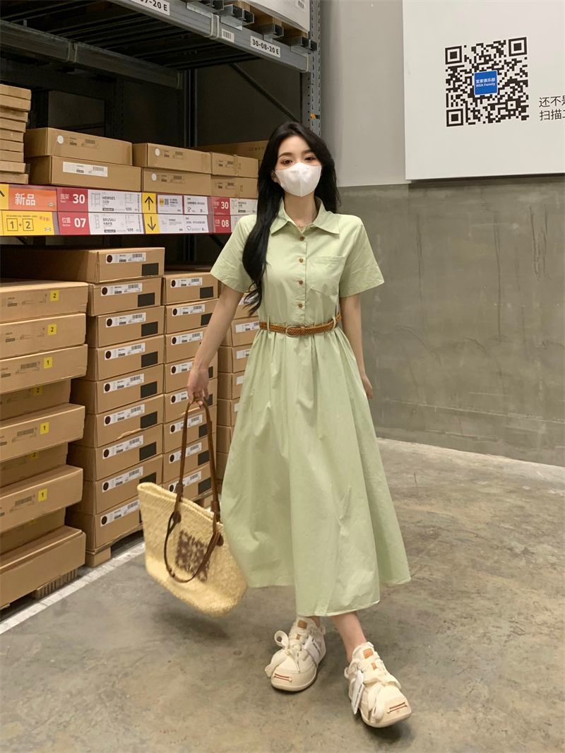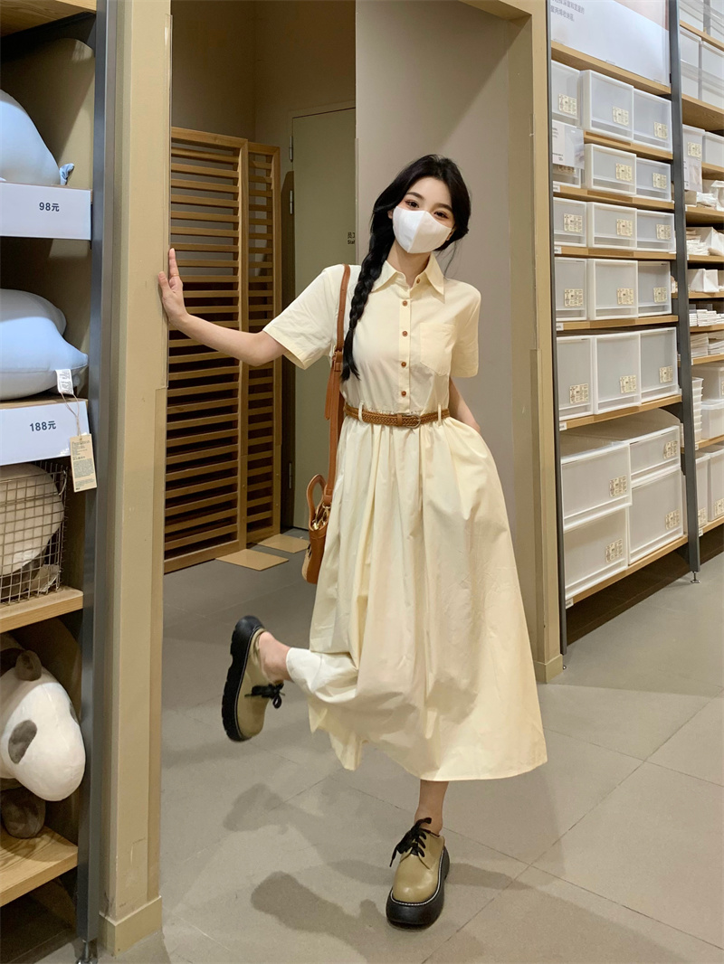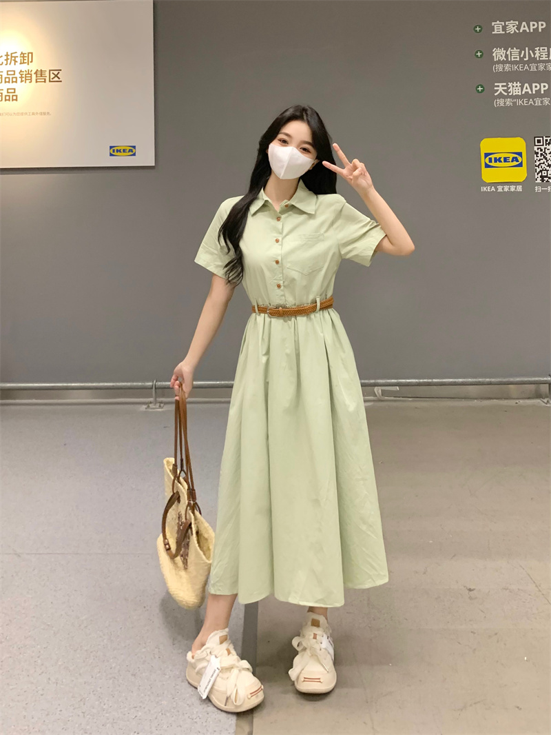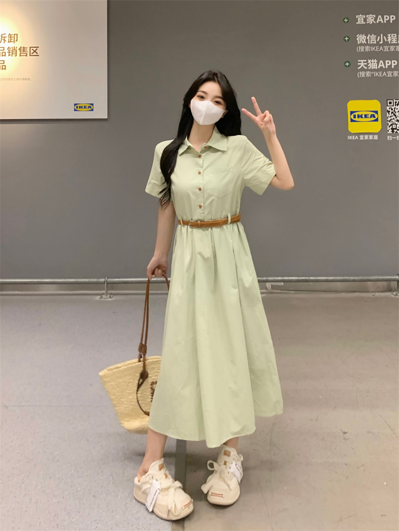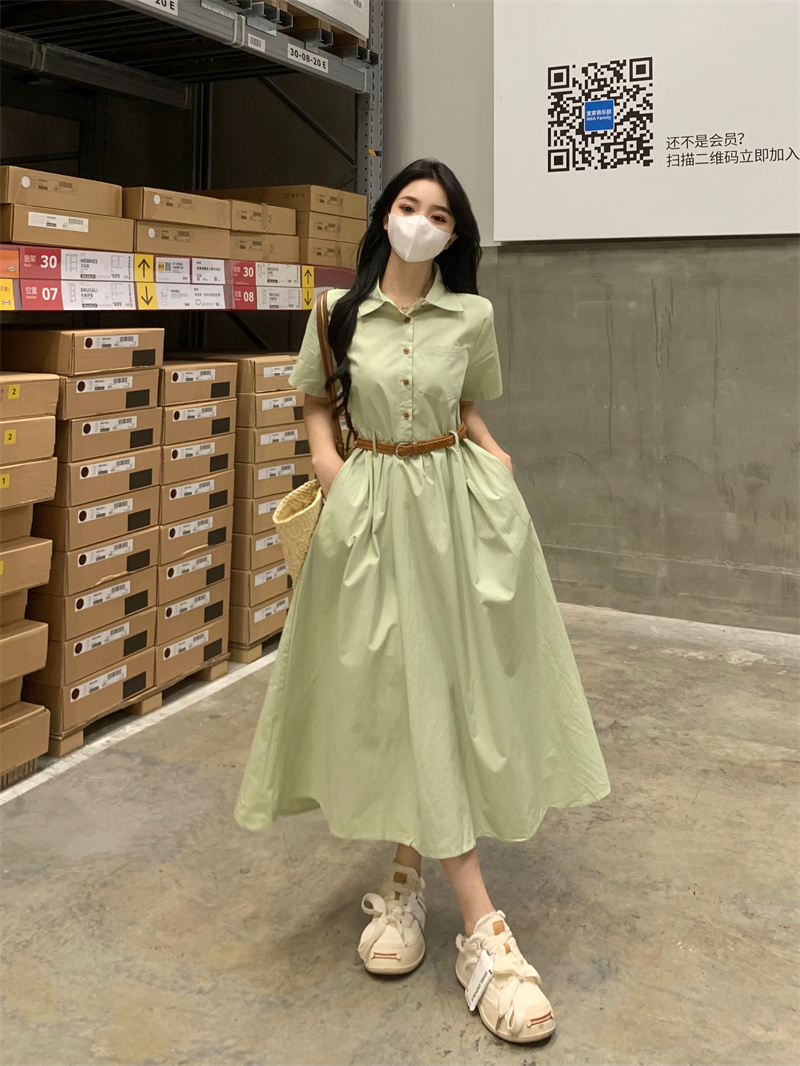 RY1466# 大码2026夏季新款气质Polo领短袖裙女装收腰显瘦温柔风法式连衣裙