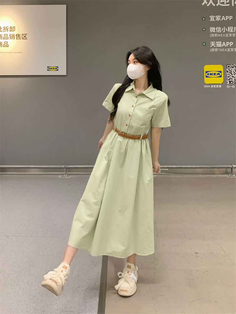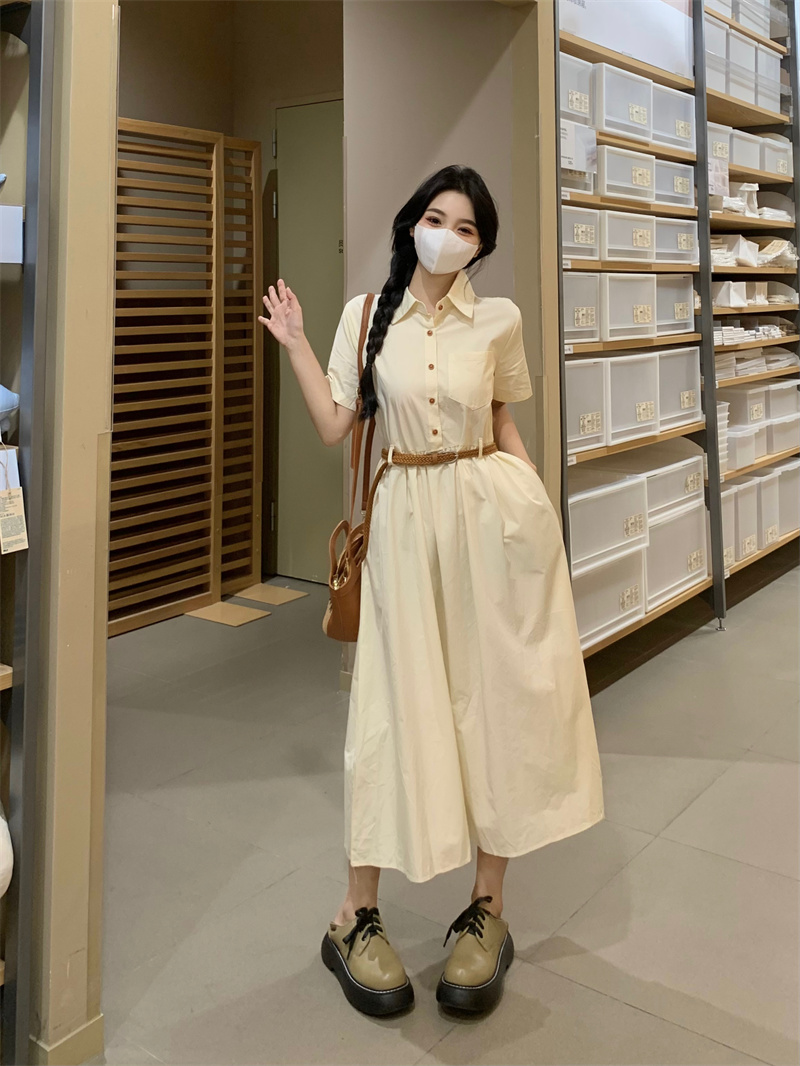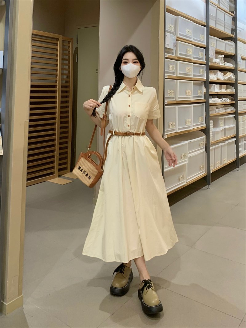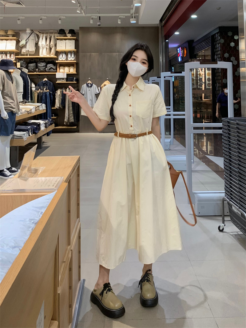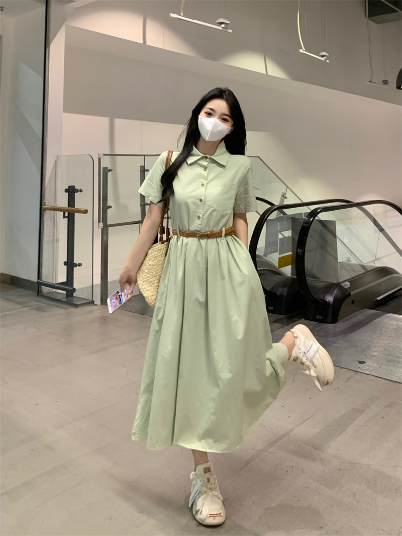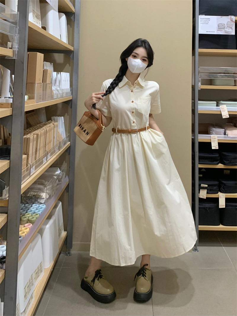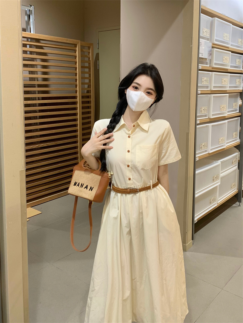 RY1466# 大码2026夏季新款气质Polo领短袖裙女装收腰显瘦温柔风法式连衣裙