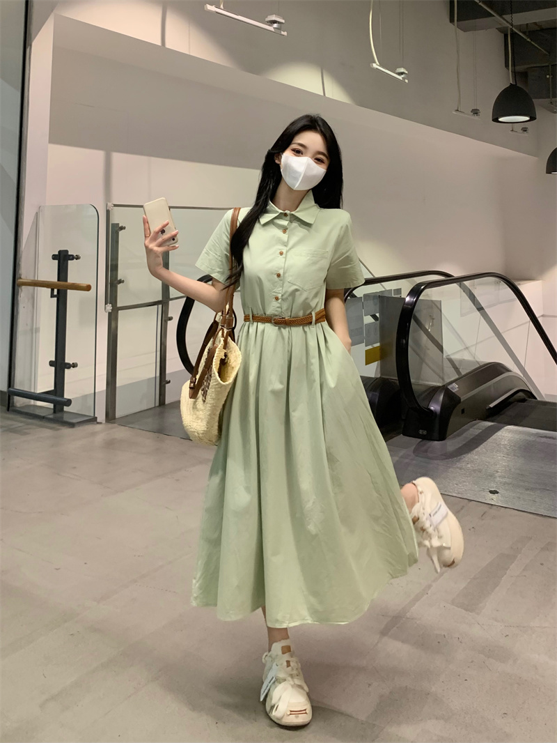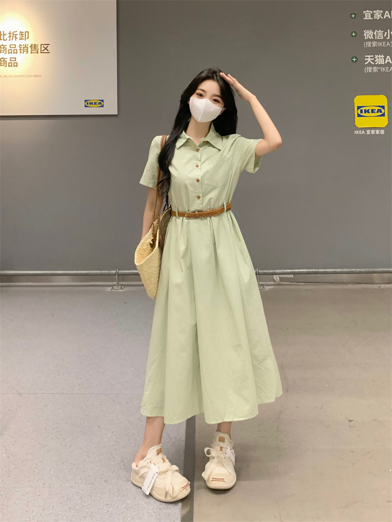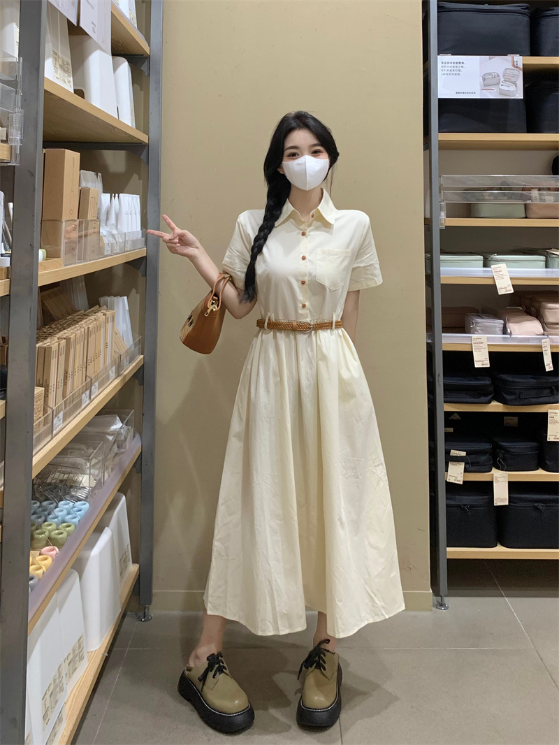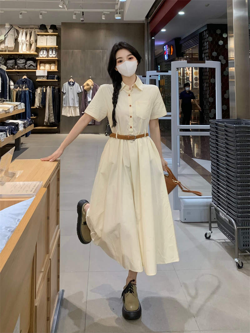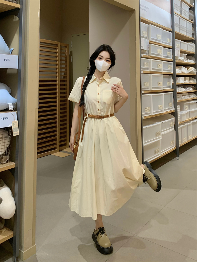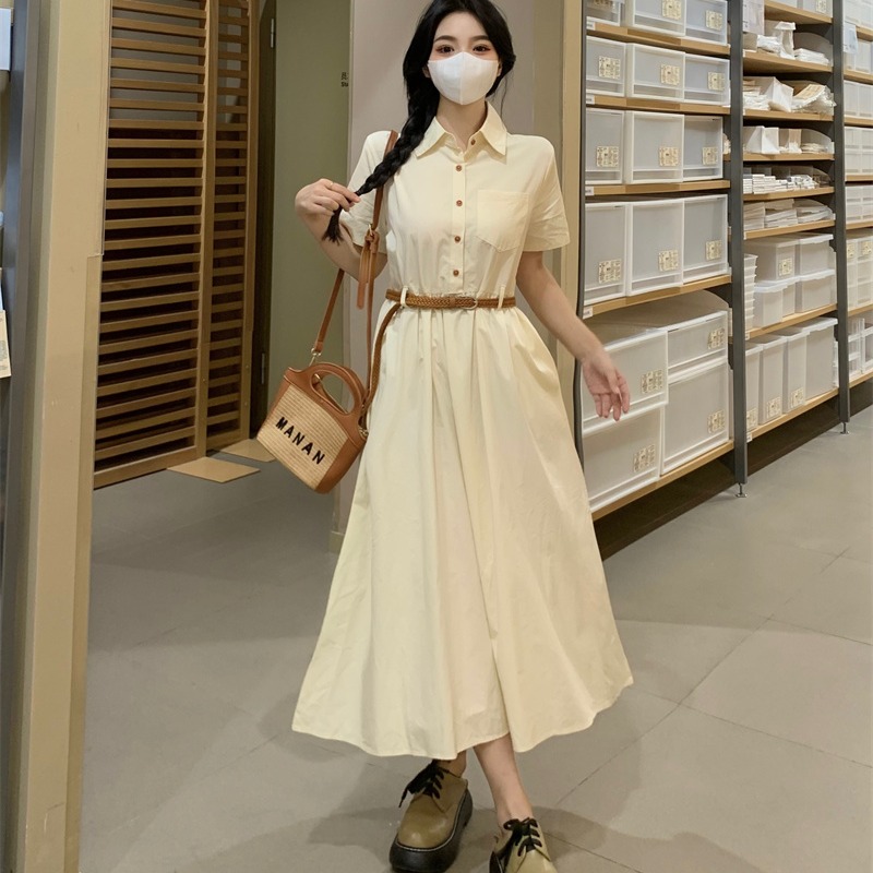 RY1466# 大码2026夏季新款气质Polo领短袖裙女装收腰显瘦温柔风法式连衣裙