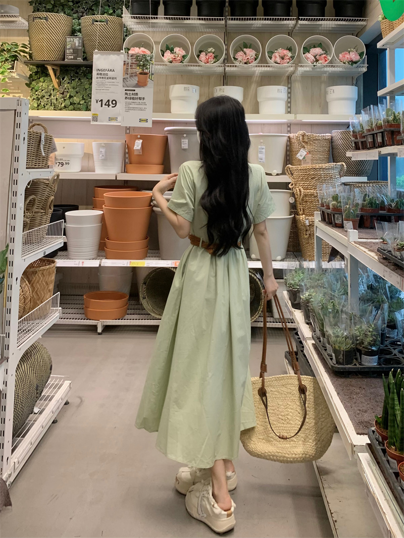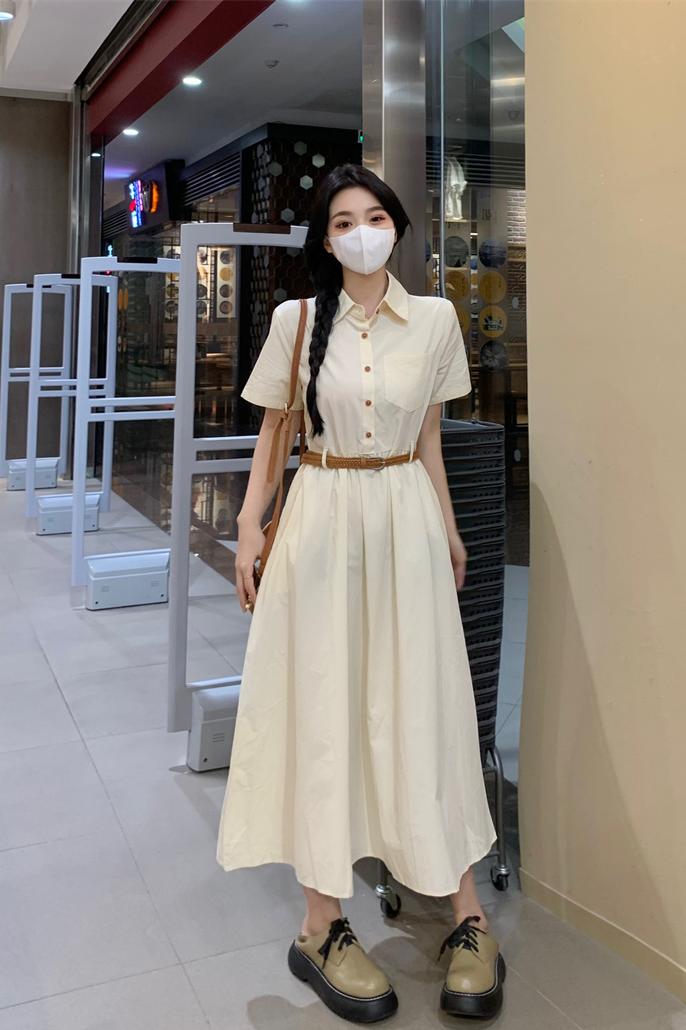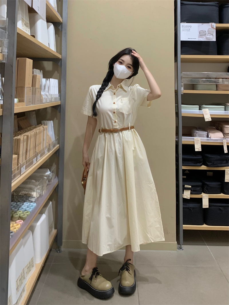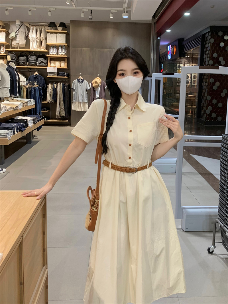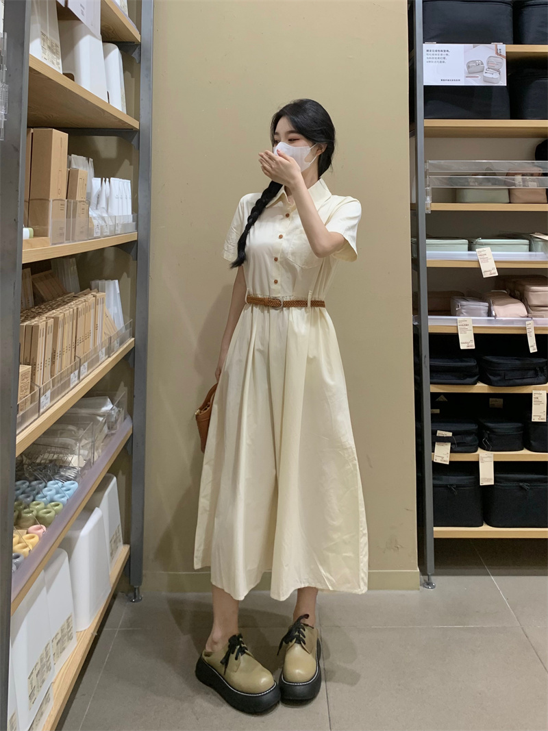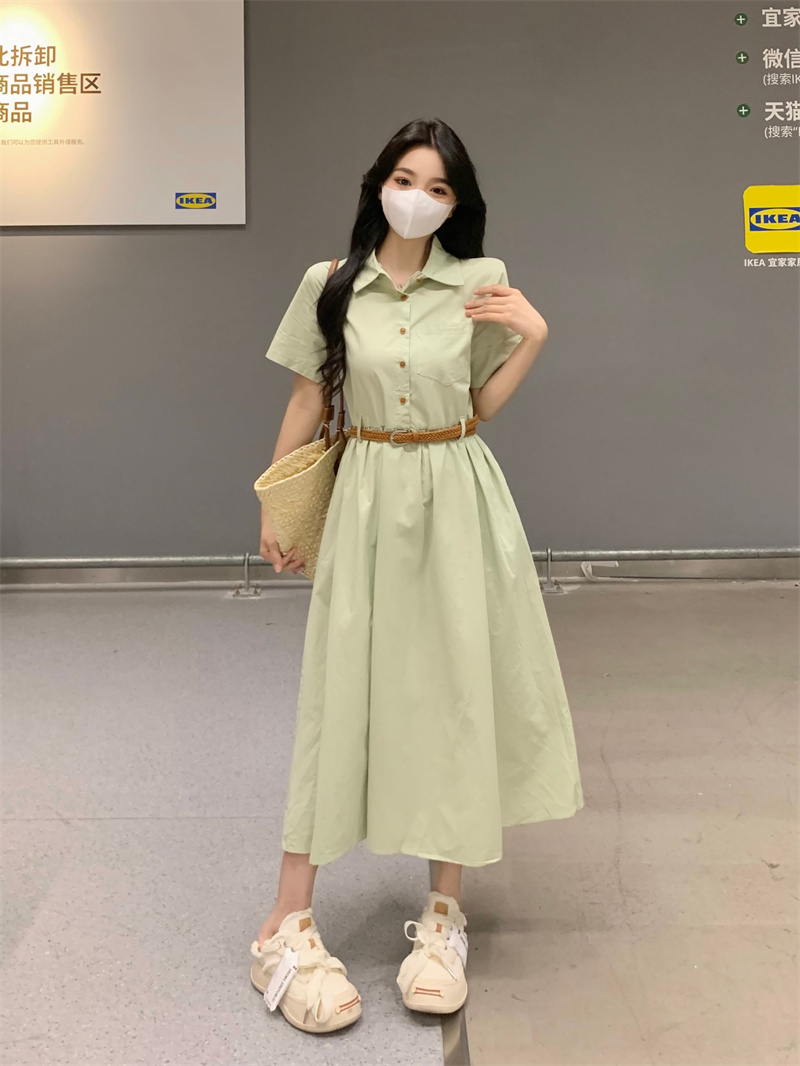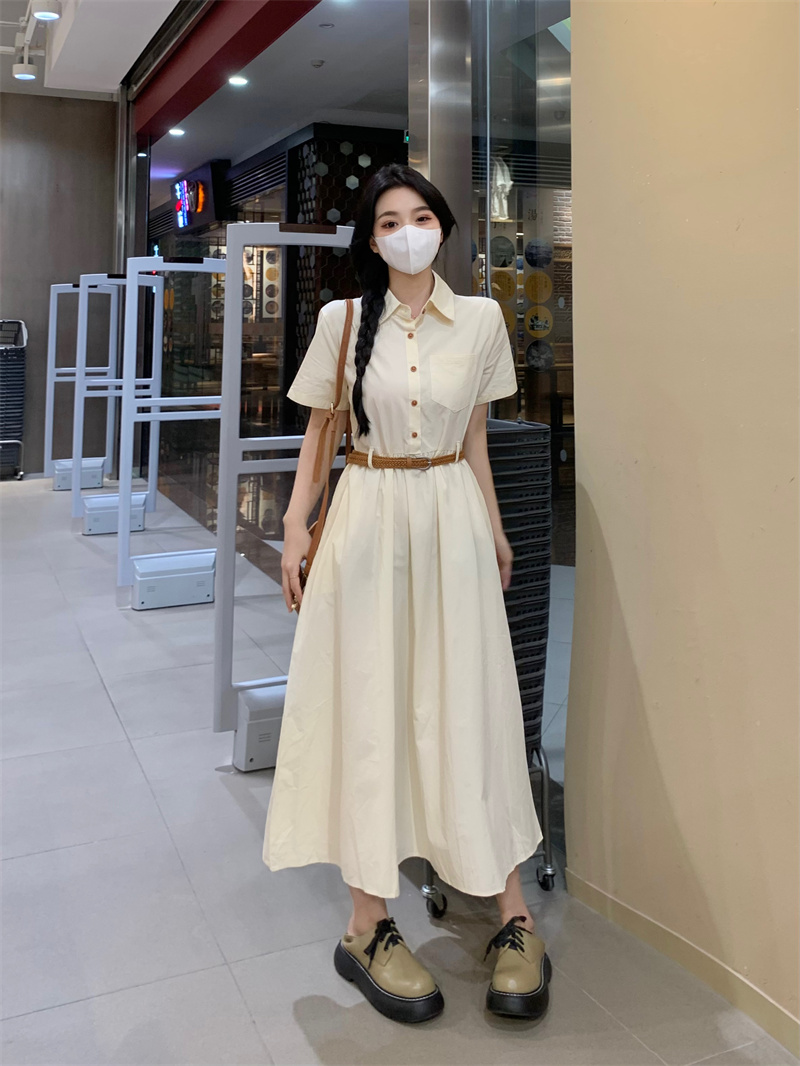 RY1466# 大码2026夏季新款气质Polo领短袖裙女装收腰显瘦温柔风法式连衣裙