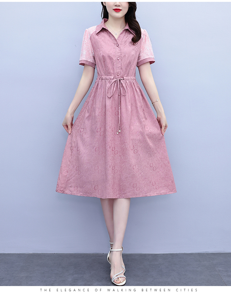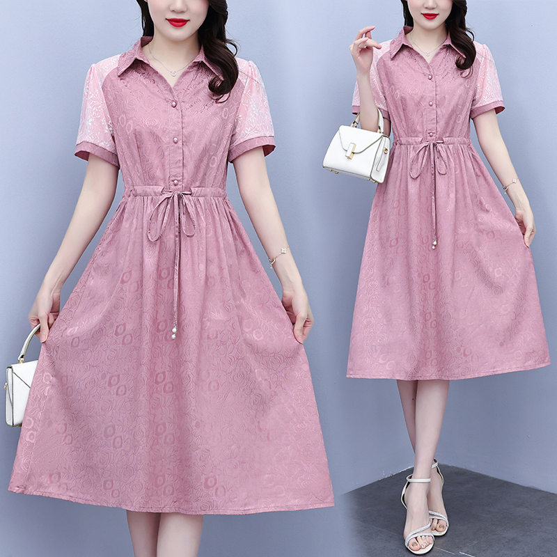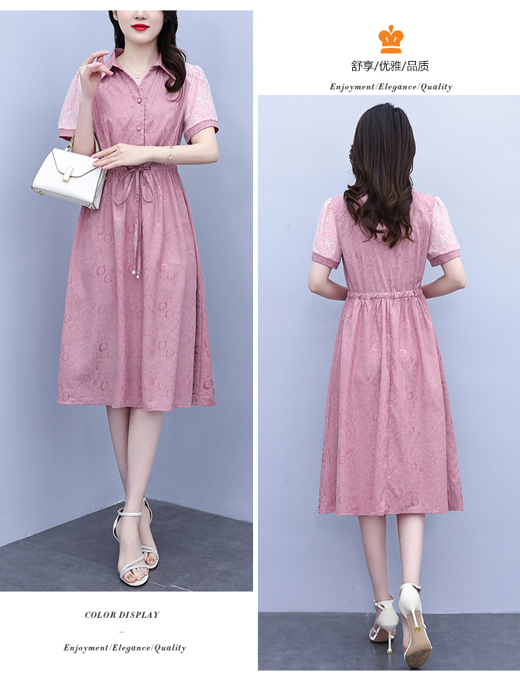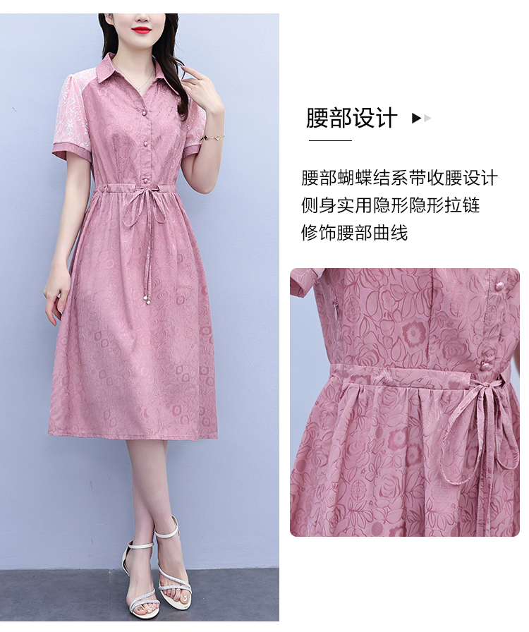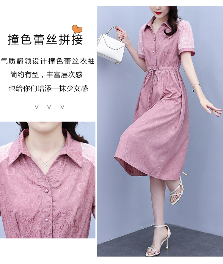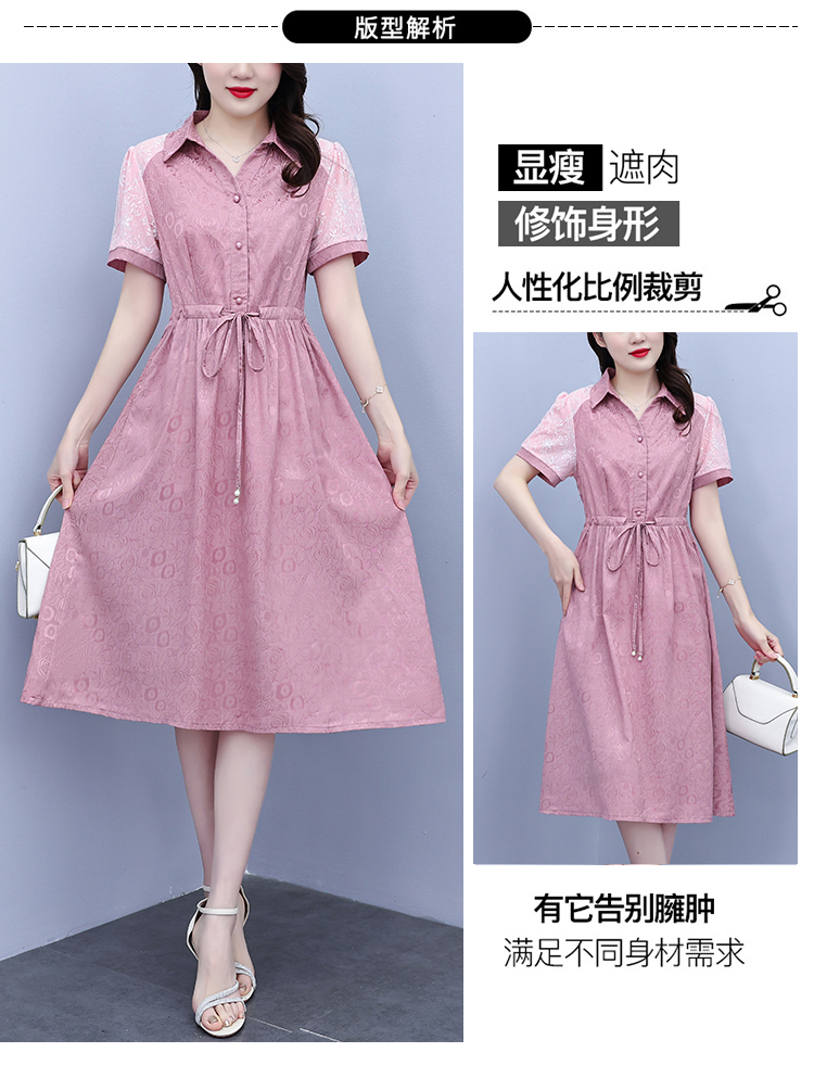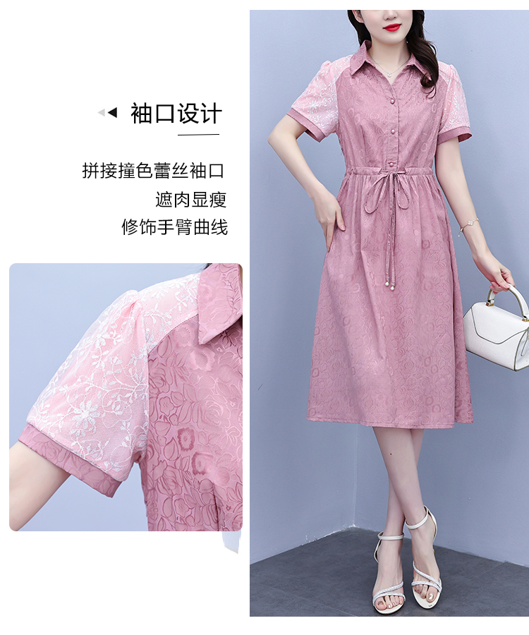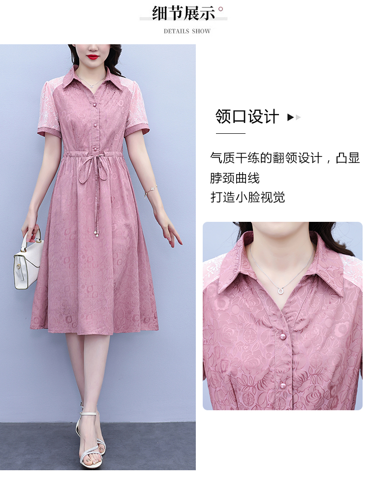 RY1478# 气质高级感衬衫领连衣裙女2026夏季新款妈妈时尚高端洋气短袖裙子