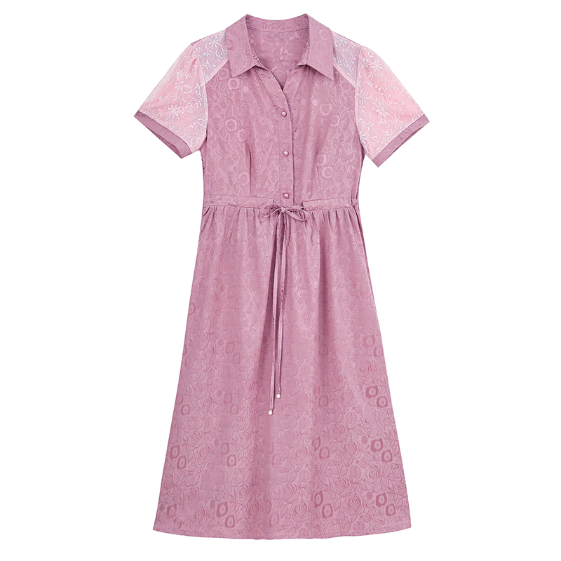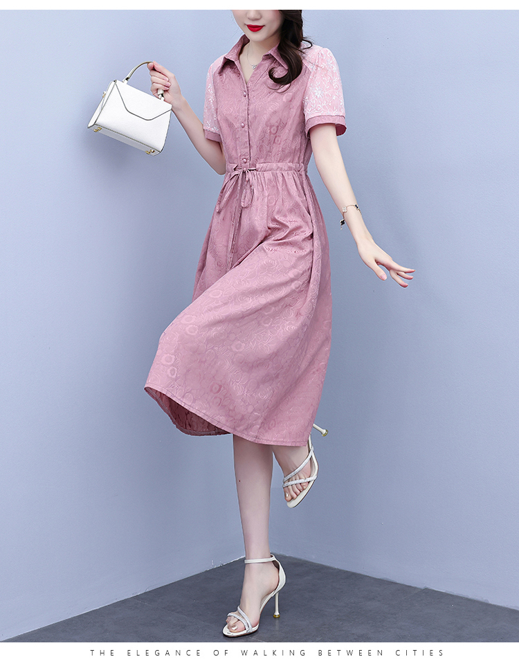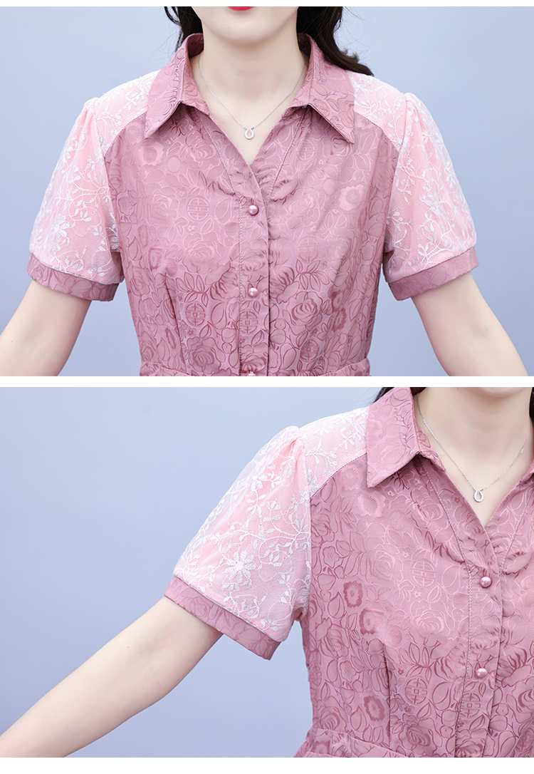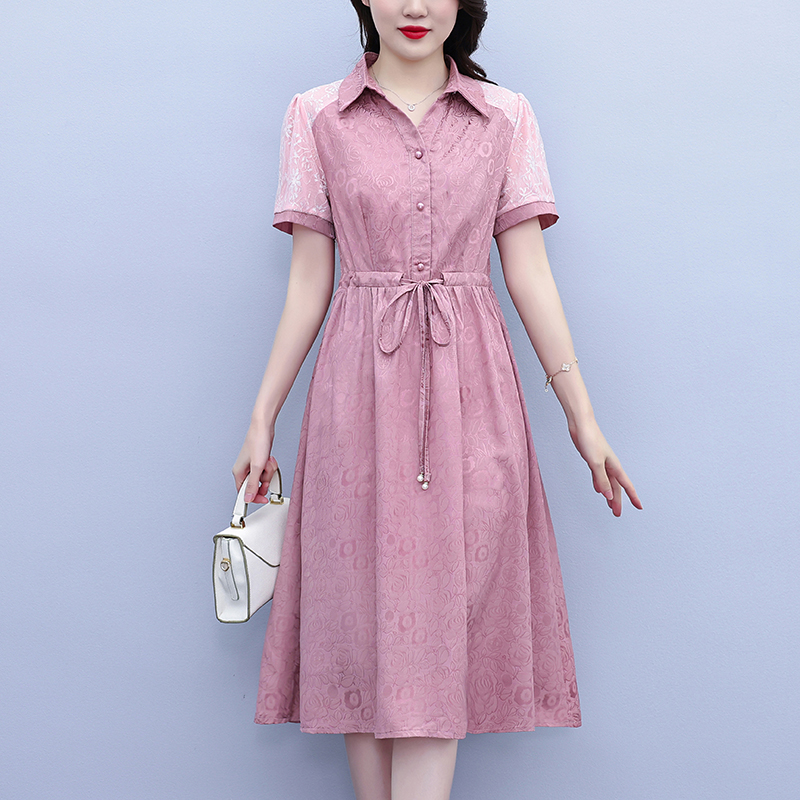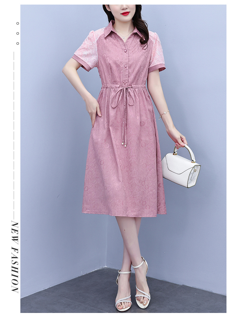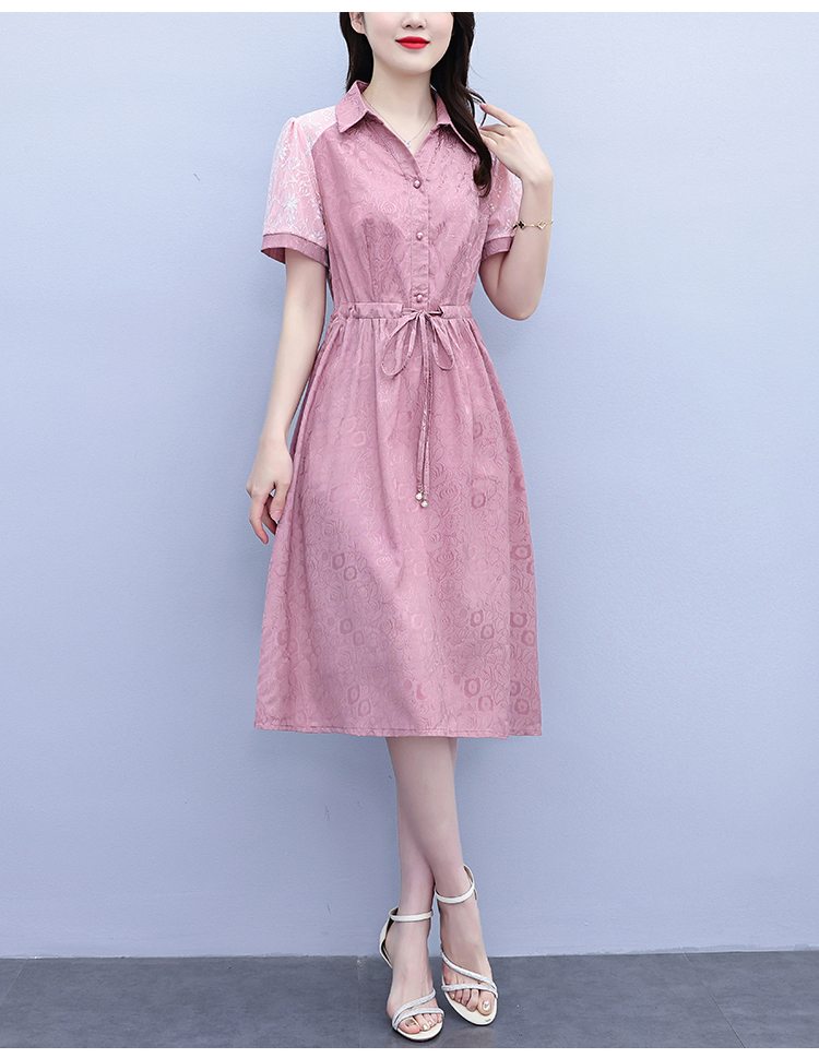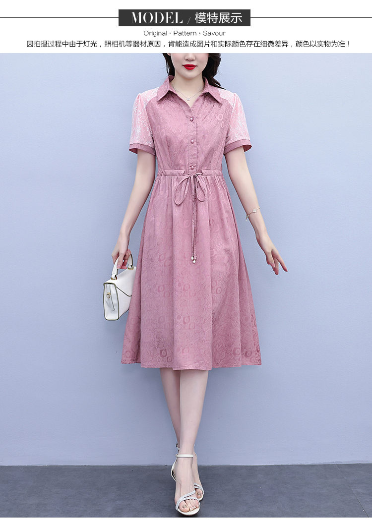 RY1478# 气质高级感衬衫领连衣裙女2026夏季新款妈妈时尚高端洋气短袖裙子