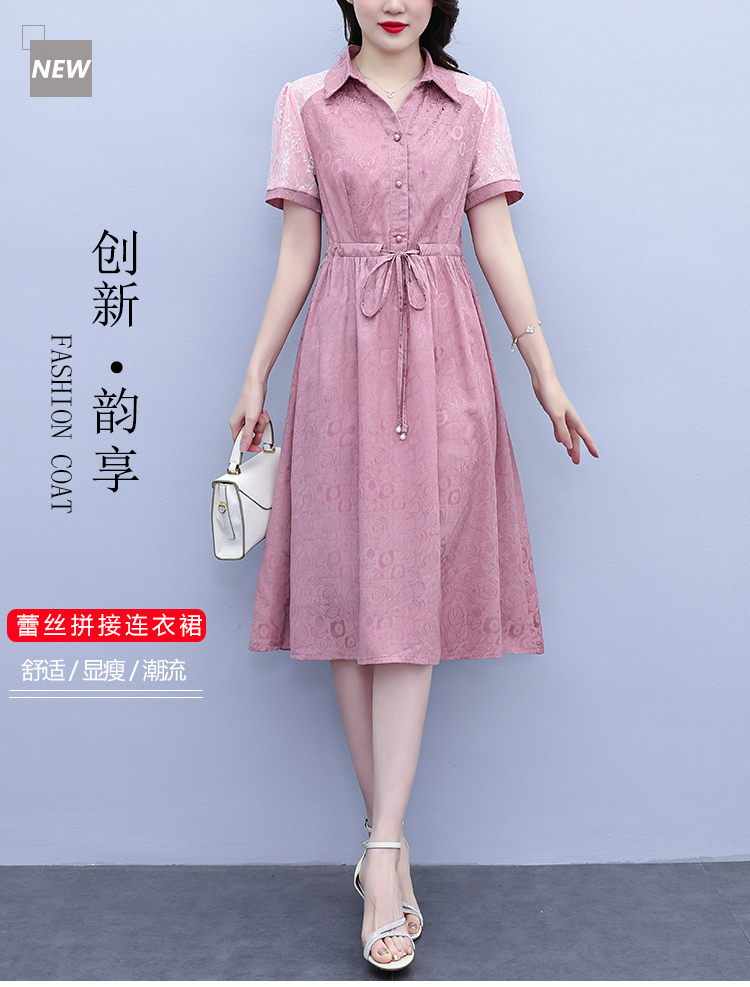 RY1466# 大码2026夏季新款气质Polo领短袖裙女装收腰显瘦温柔风...