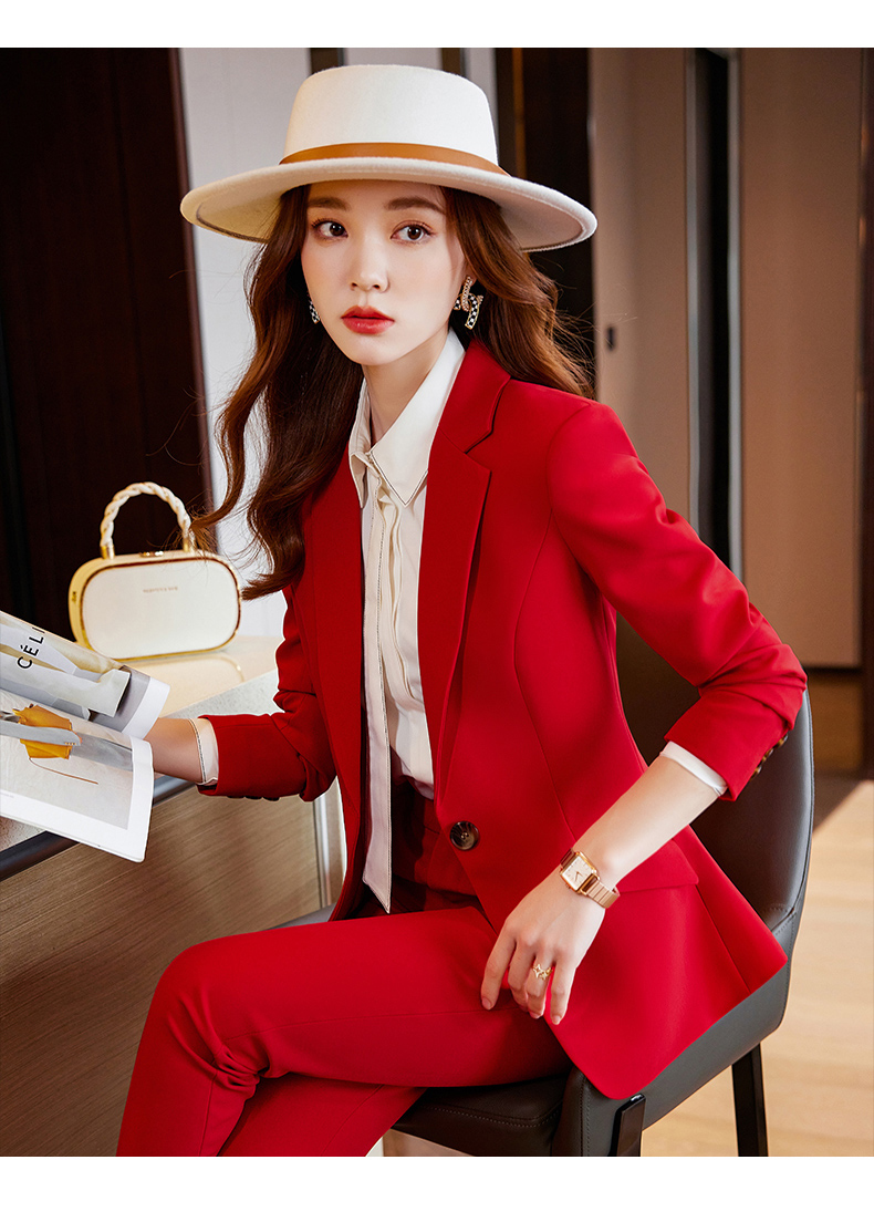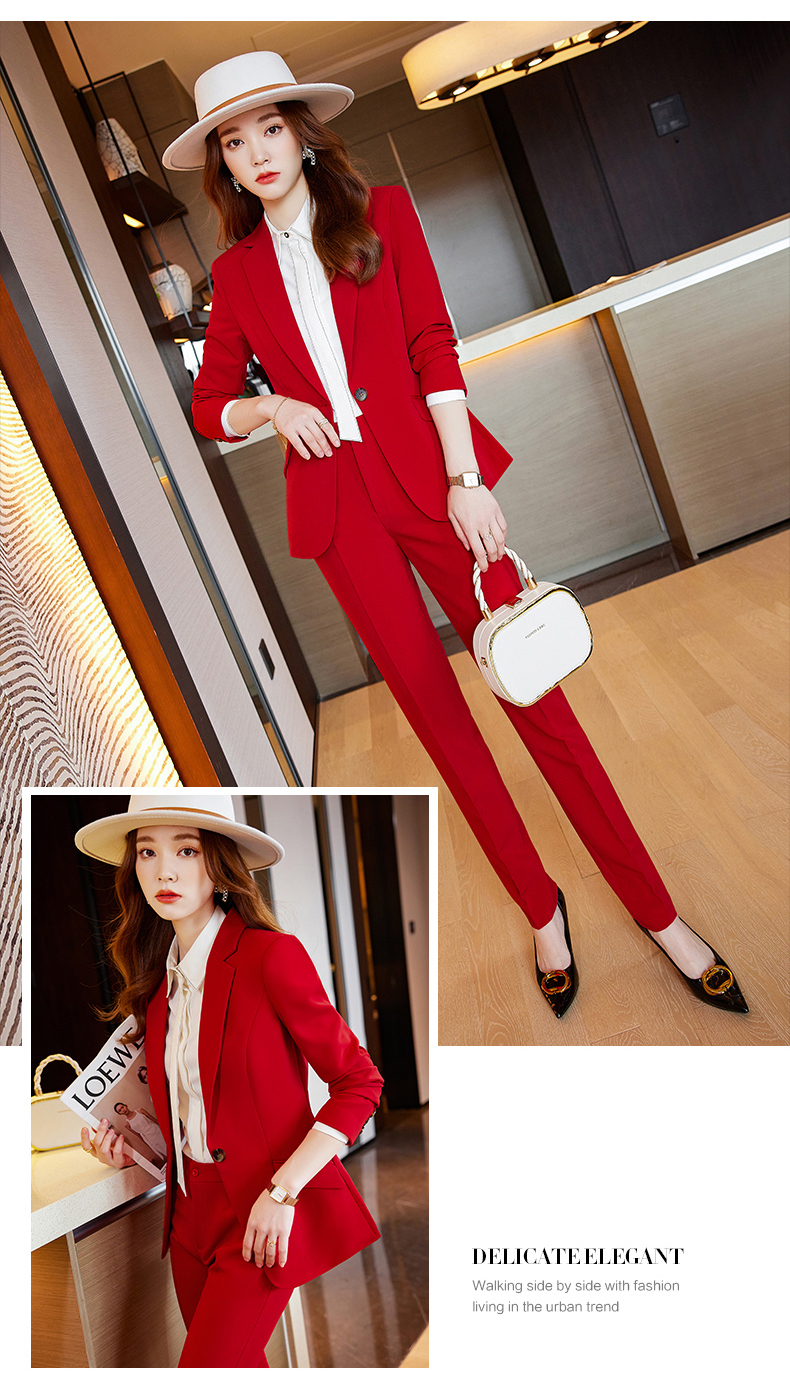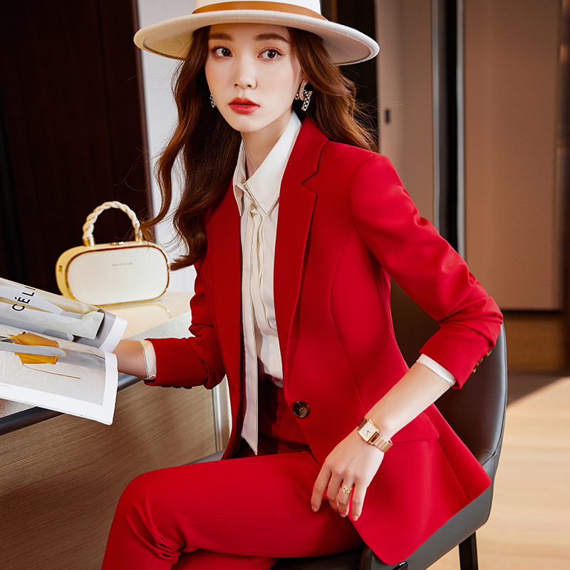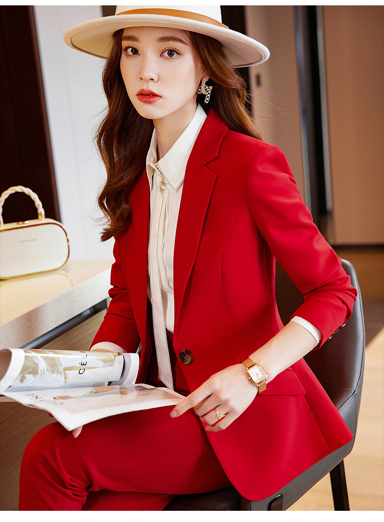MY15358#职业正装红色西装外套女2023年秋冬高级感气质通勤套装
