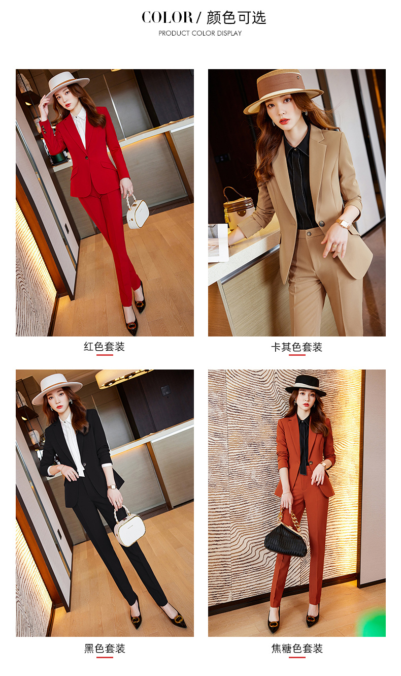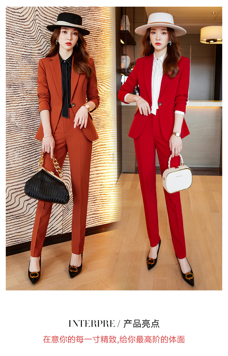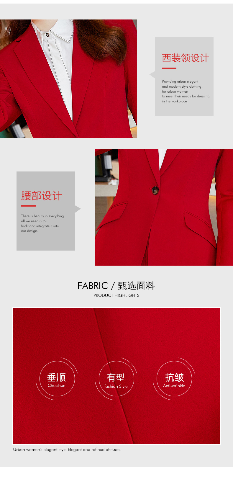 MY15358#职业正装红色西装外套女2023年秋冬高级感气质通勤套装