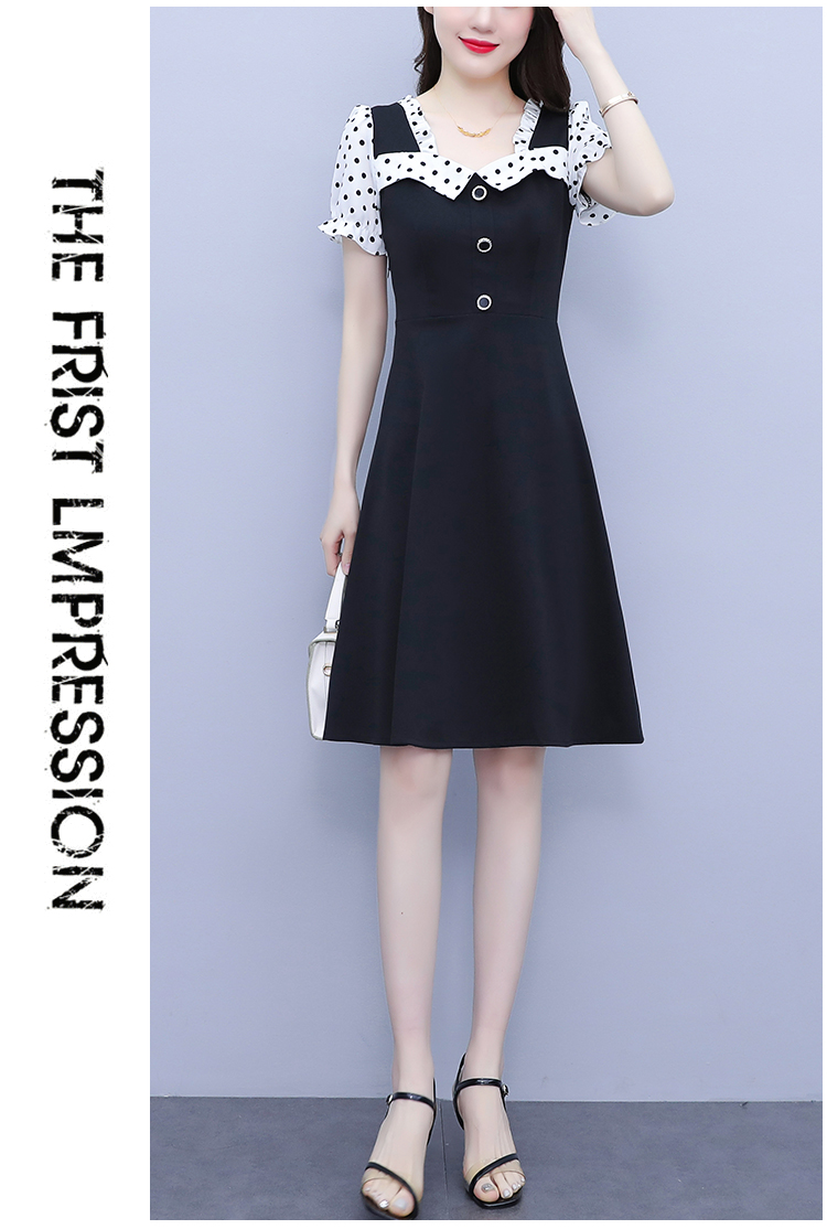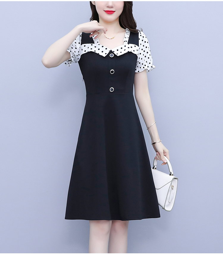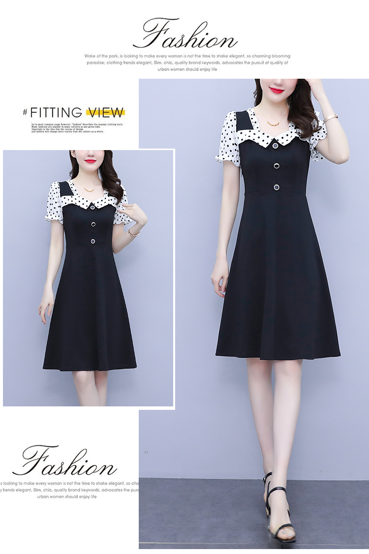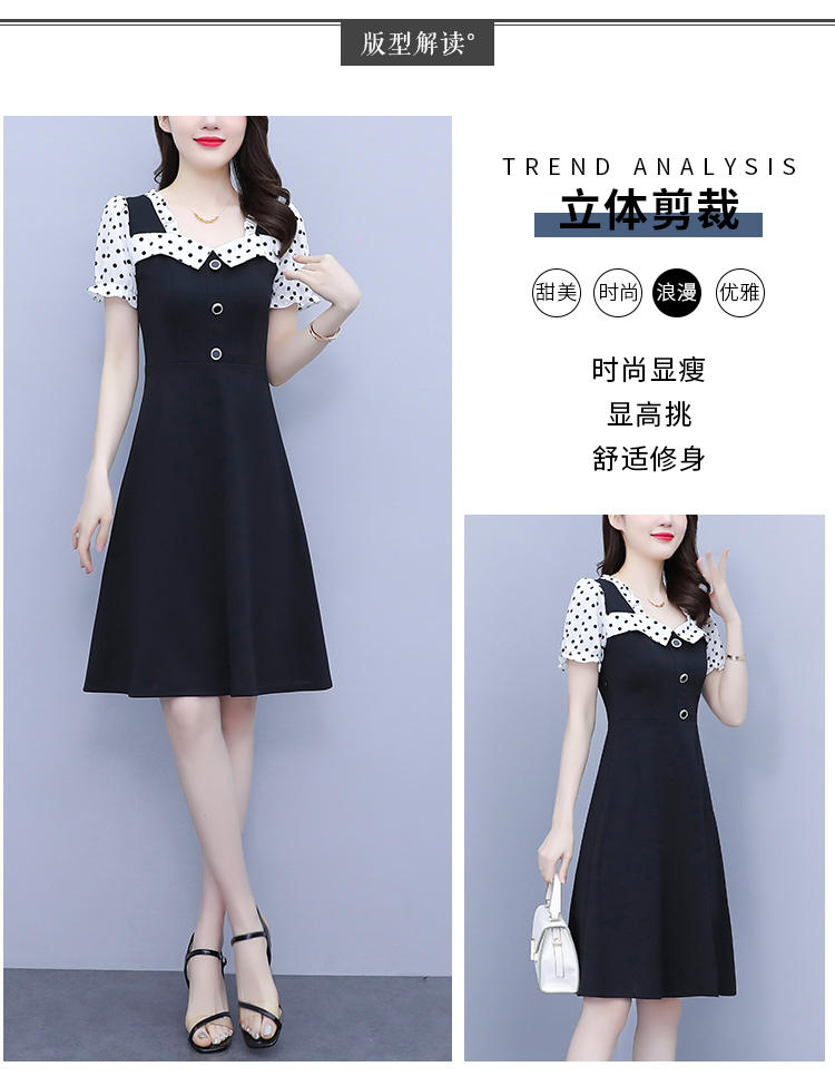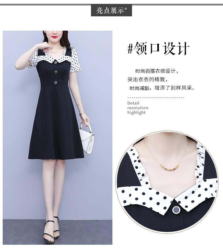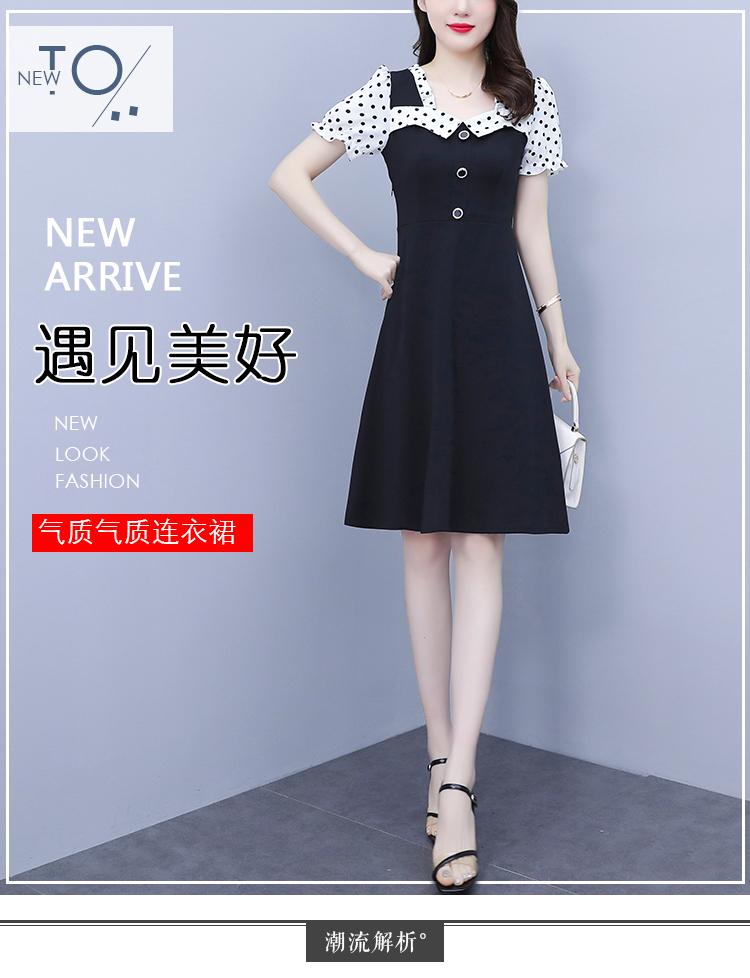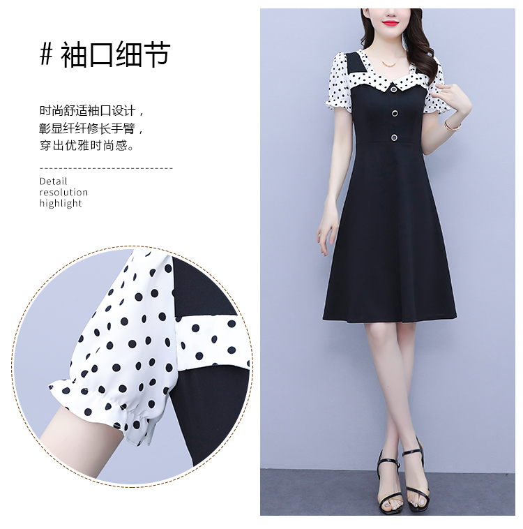 RY1575# 大码女装2026夏季新款胖mm波点拼接喇叭袖气质洋气修身连衣裙女