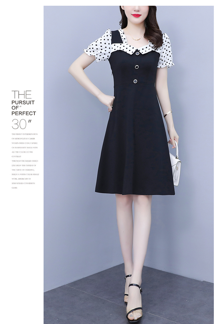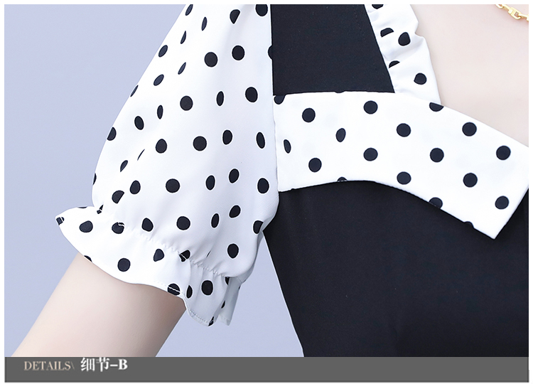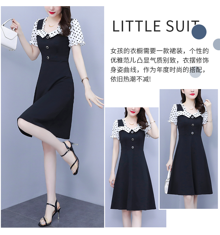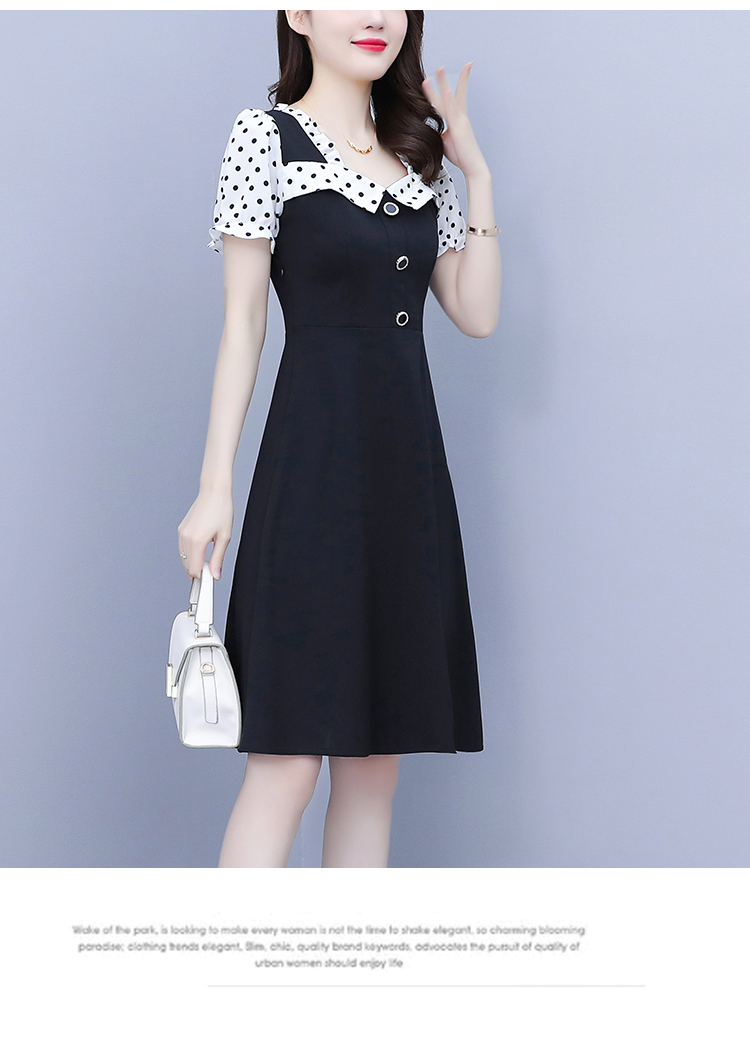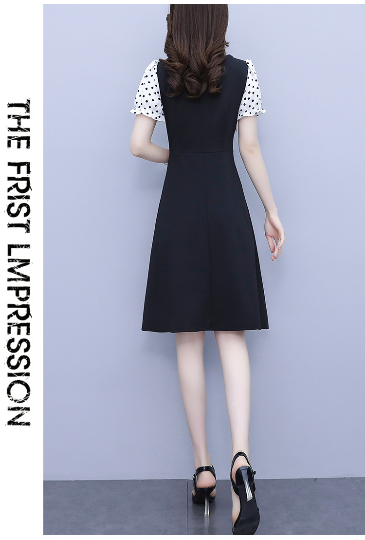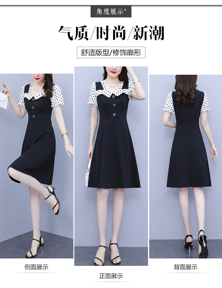 RY1575# 大码女装2026夏季新款胖mm波点拼接喇叭袖气质洋气修身连衣裙女