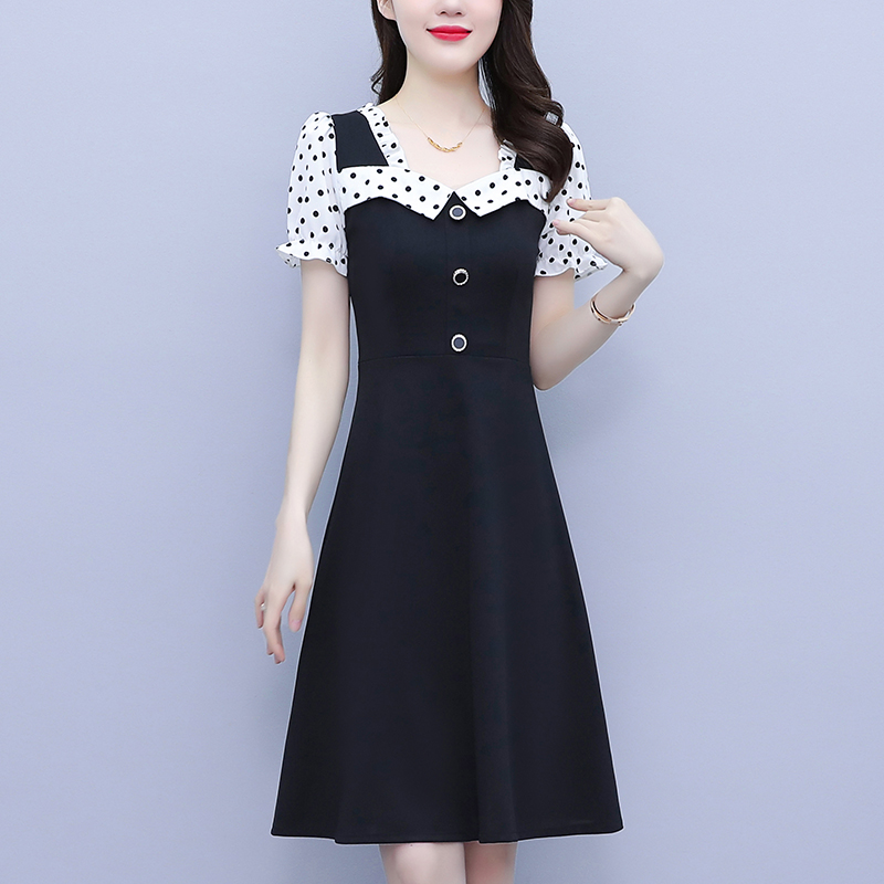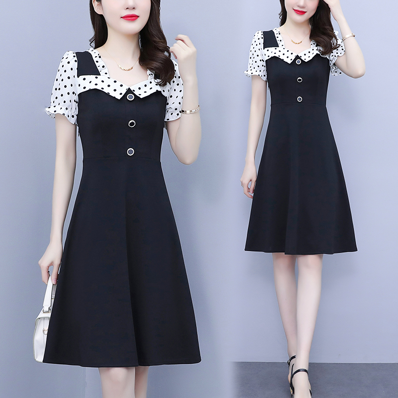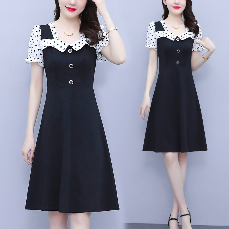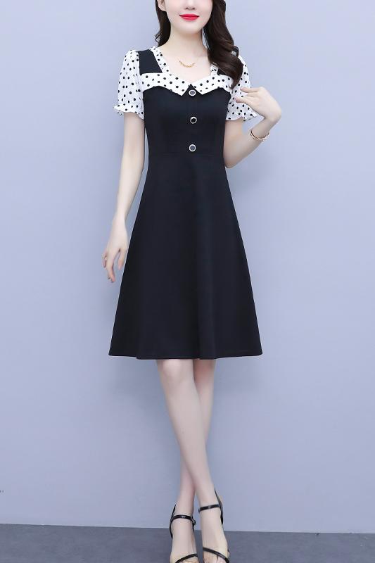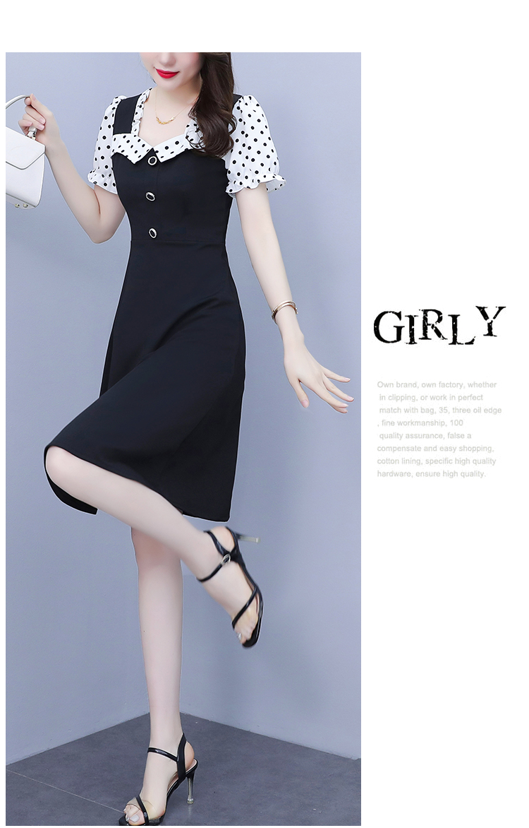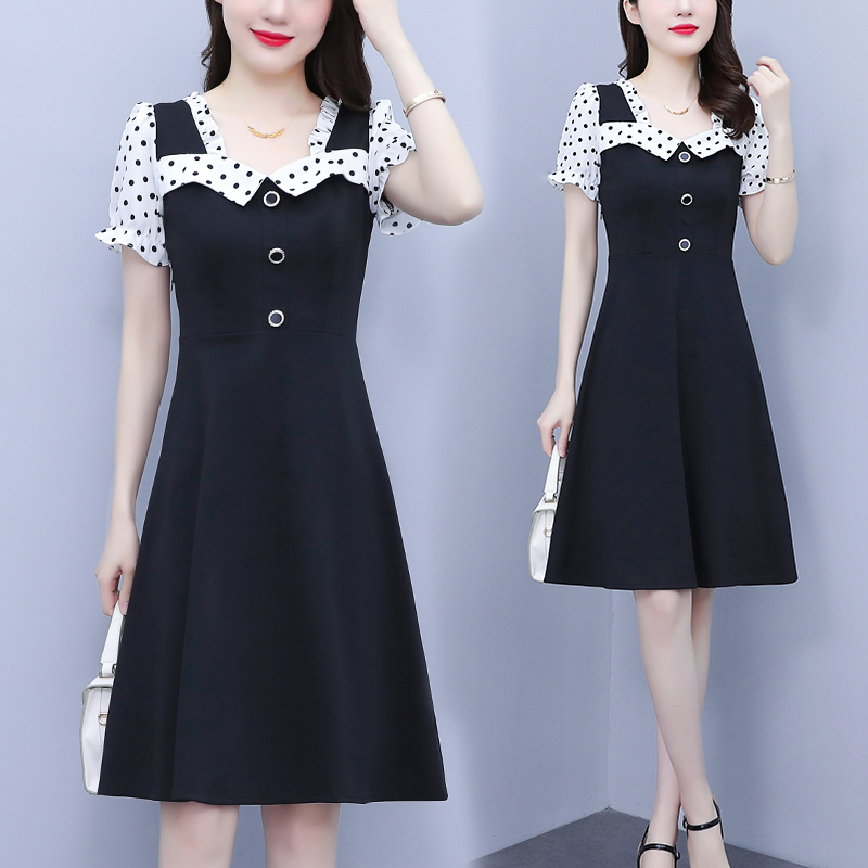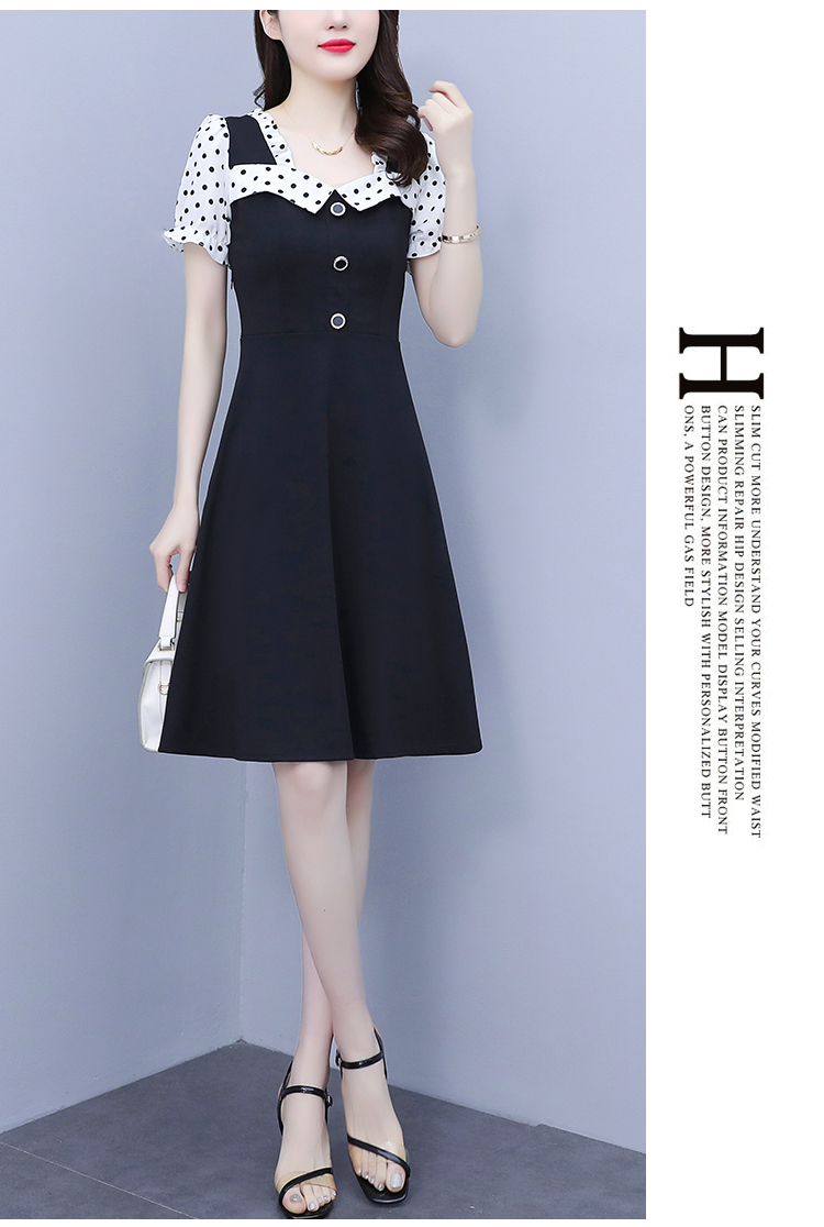 RY1575# 大码女装2026夏季新款胖mm波点拼接喇叭袖气质洋气修身连衣裙女