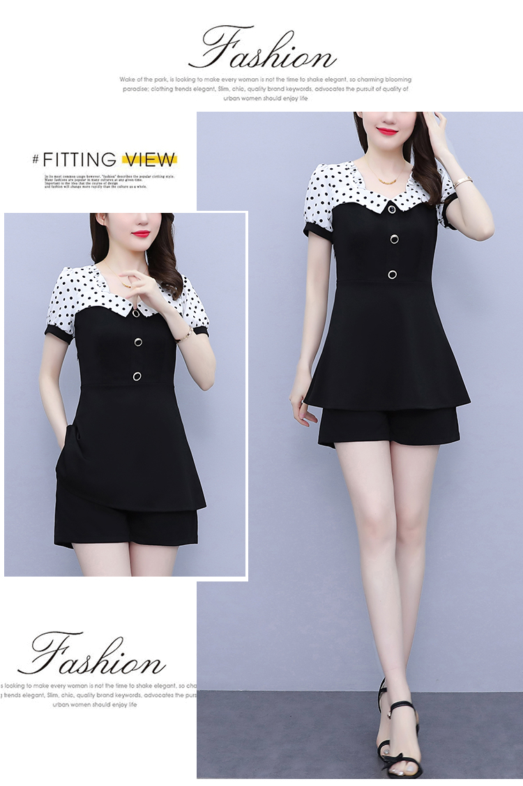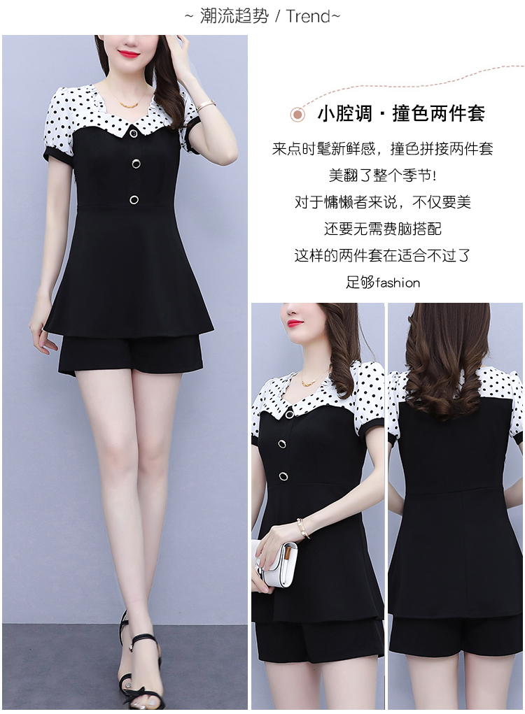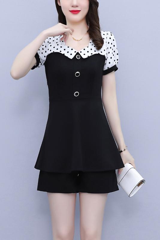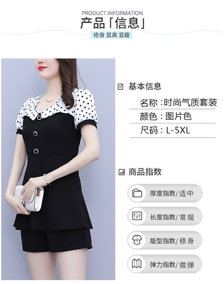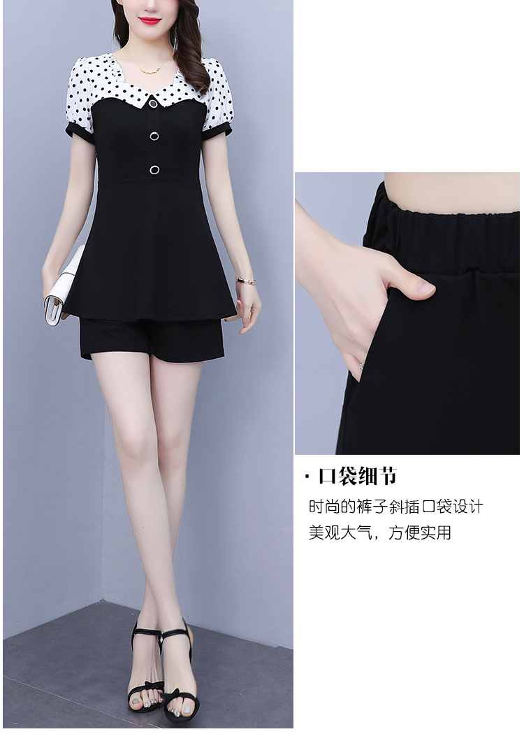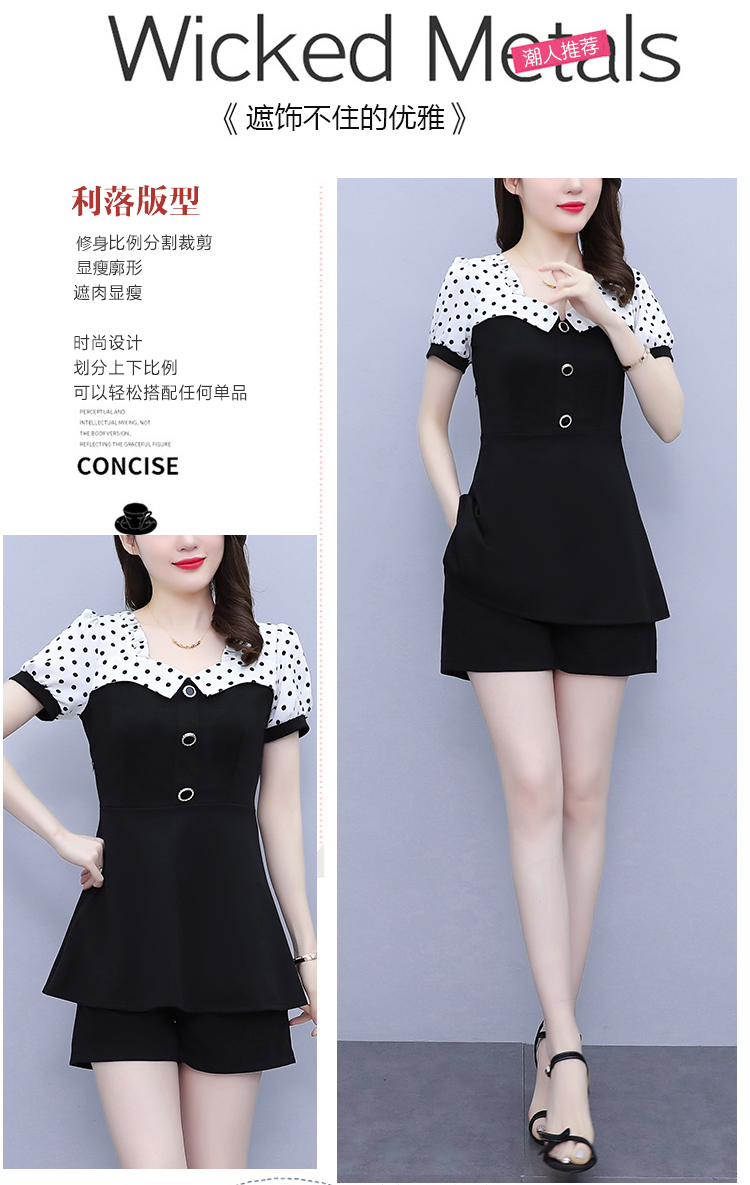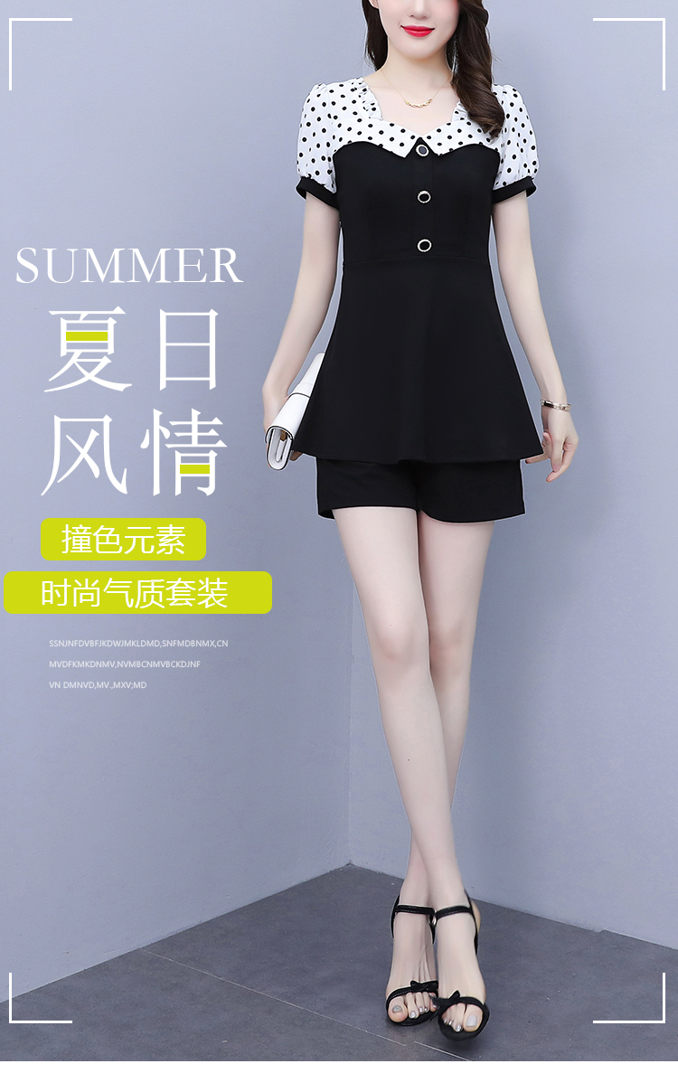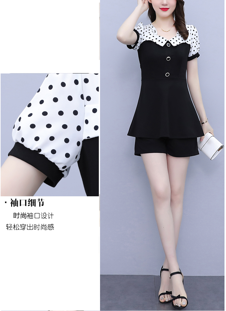 RY1577# 大码女装2026夏季胖mm气质波点拼接显瘦上衣+短裤两件套套装女