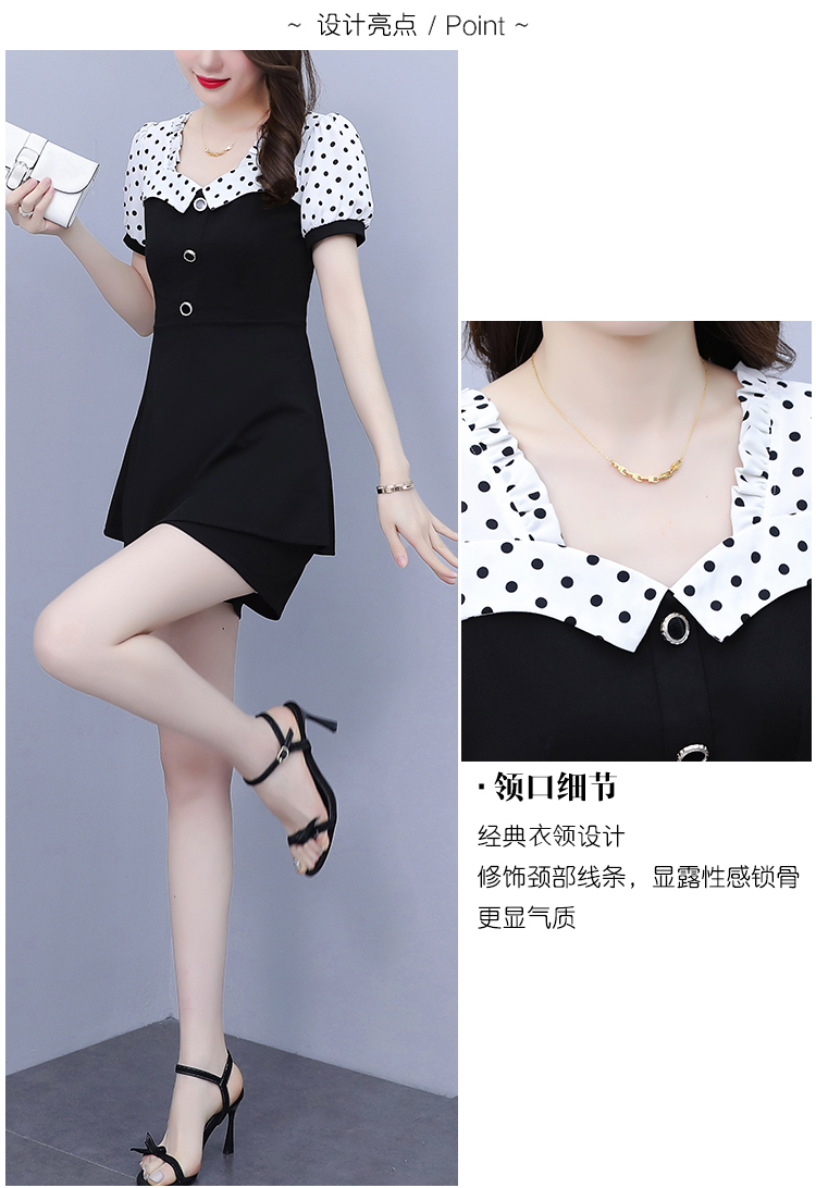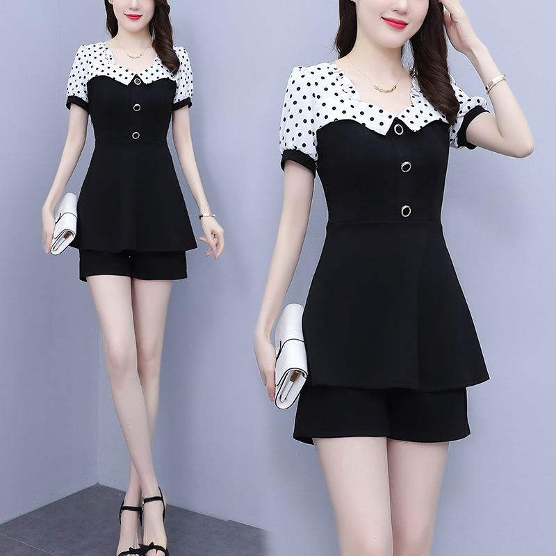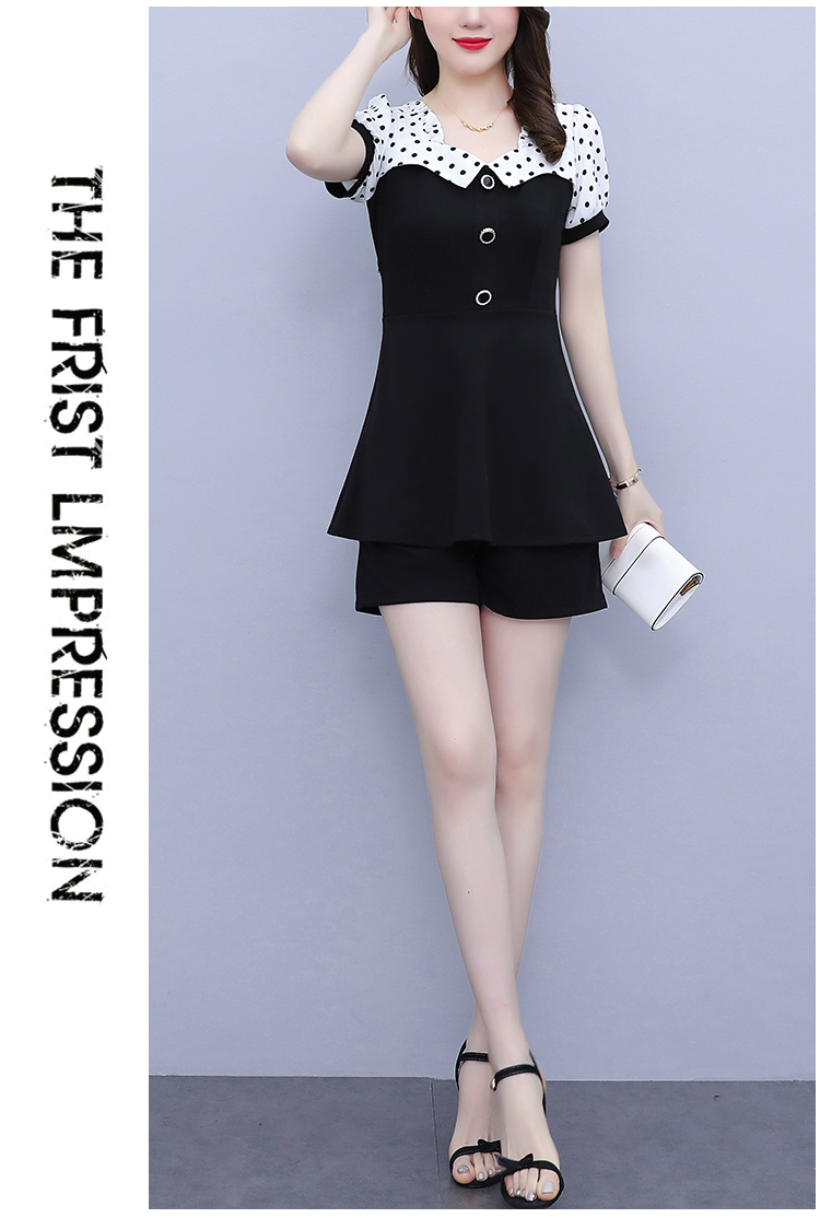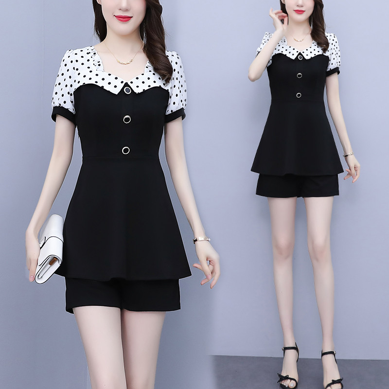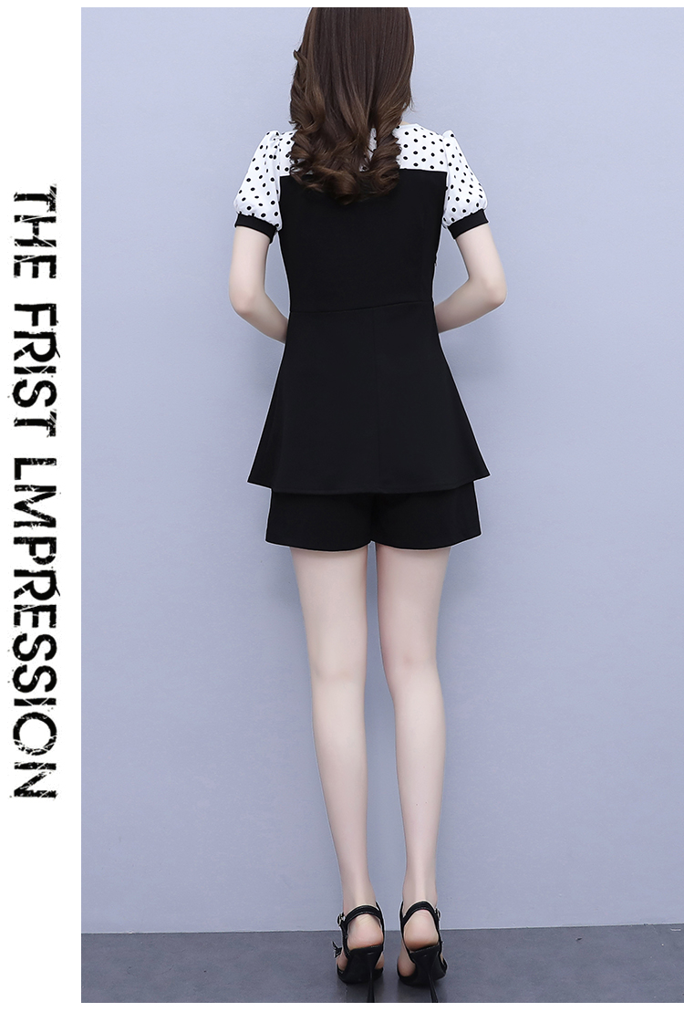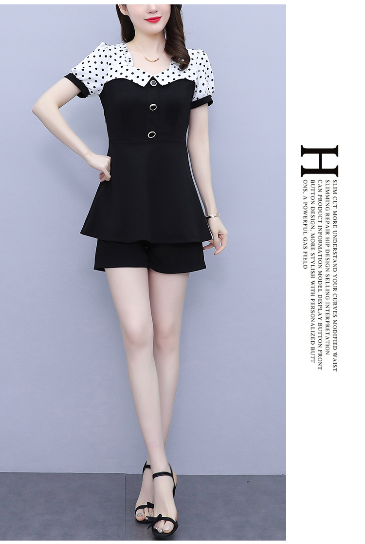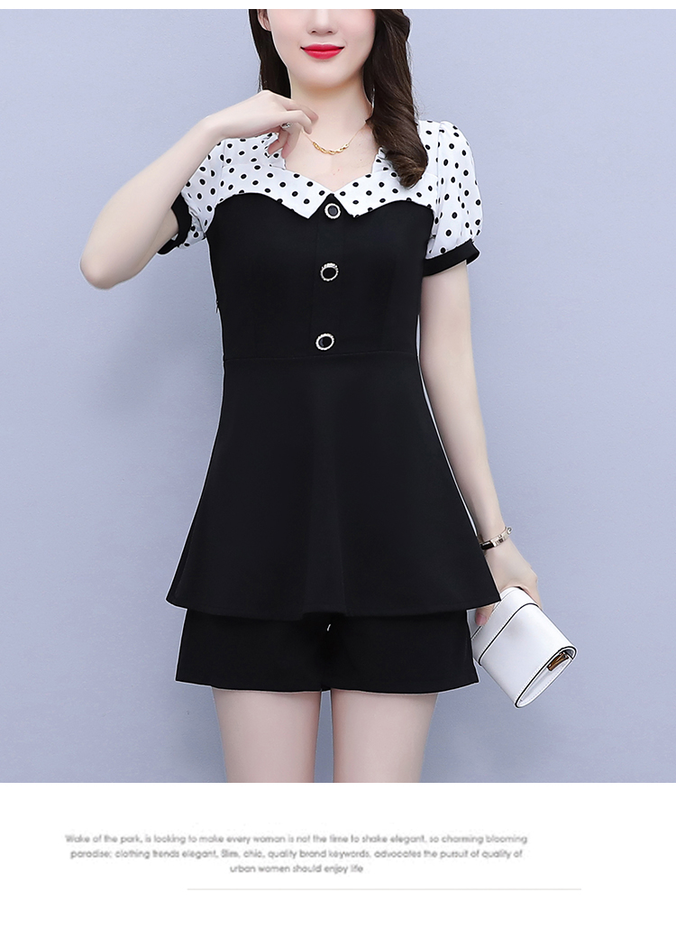 RY1577# 大码女装2026夏季胖mm气质波点拼接显瘦上衣+短裤两件套套装女