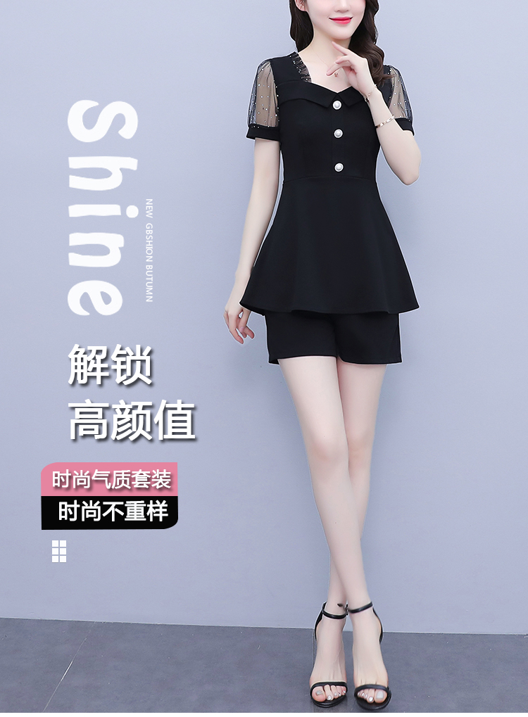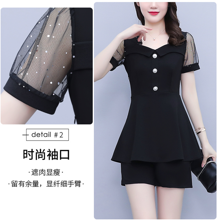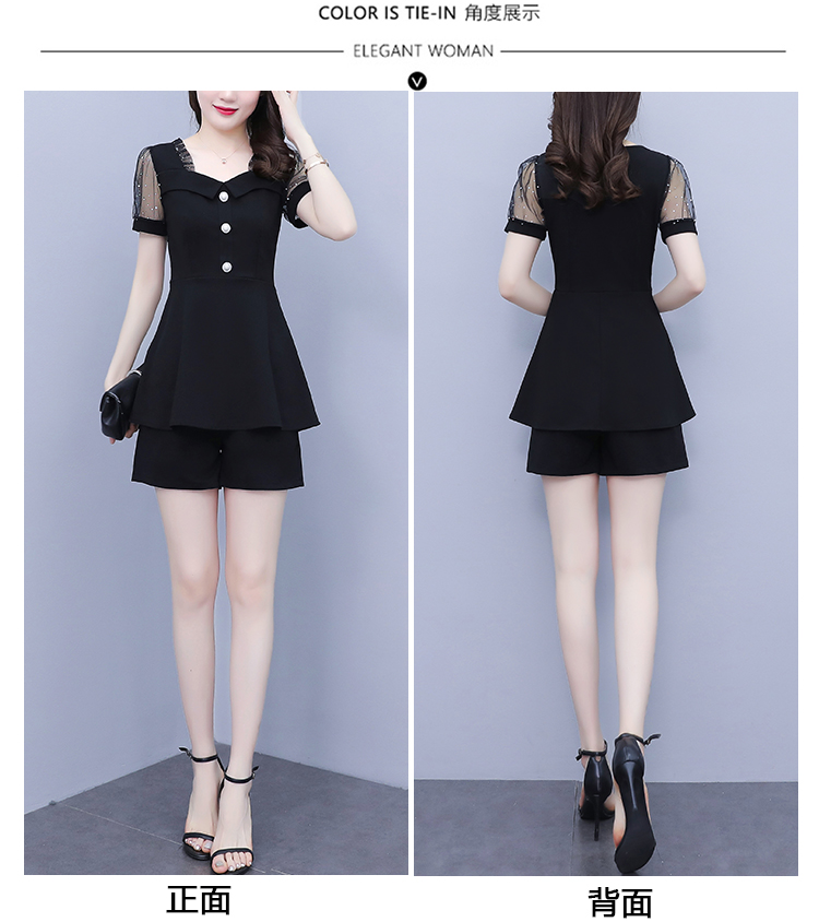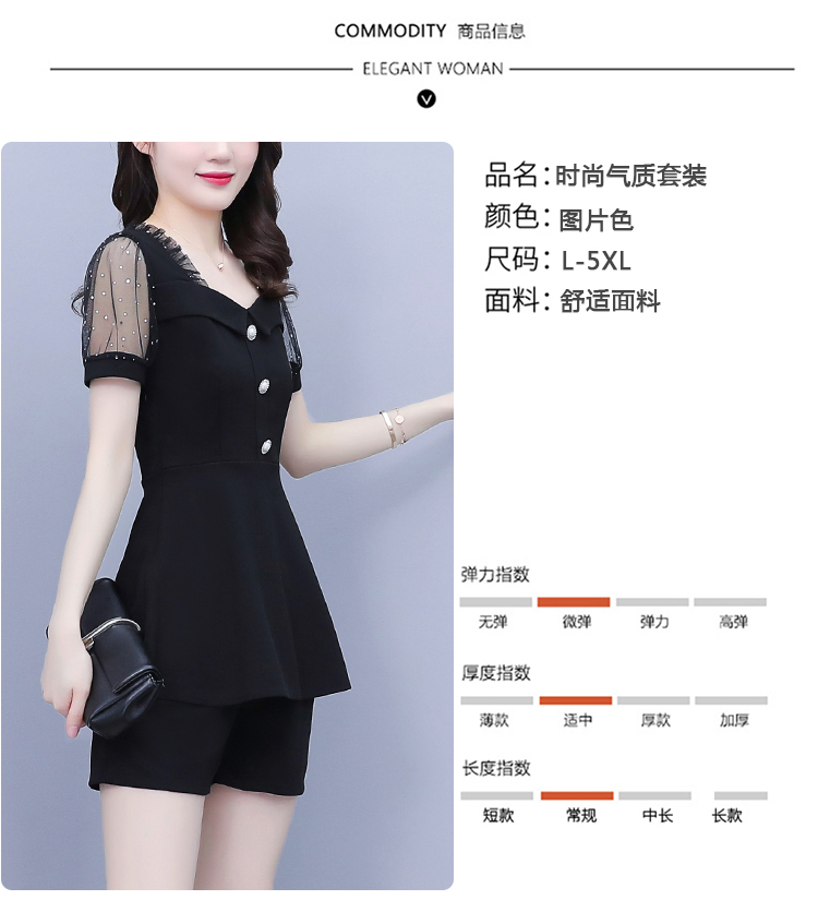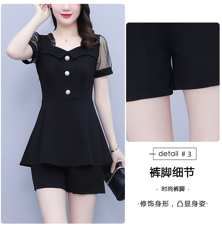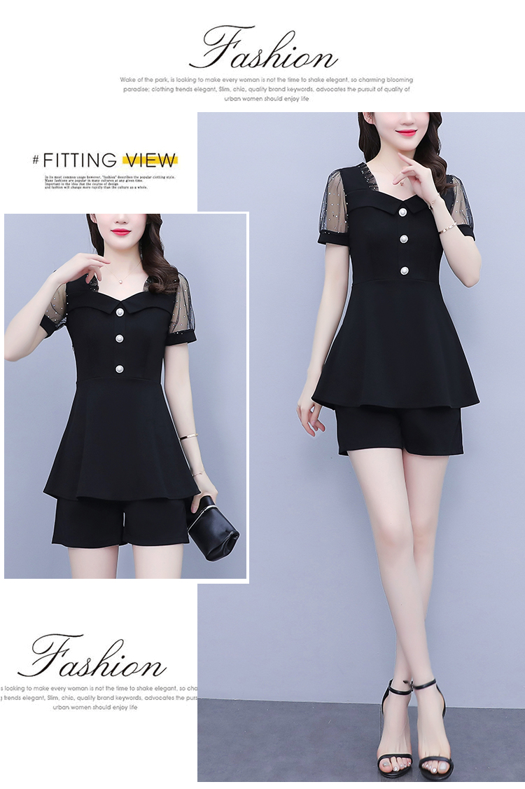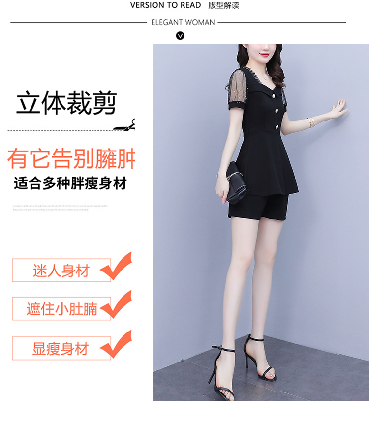 RY1579# 大码女装2026夏季新款胖mm亮片网纱拼接修身上衣+短裤两件套套装