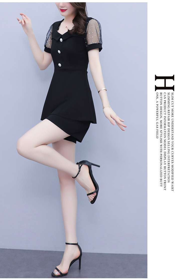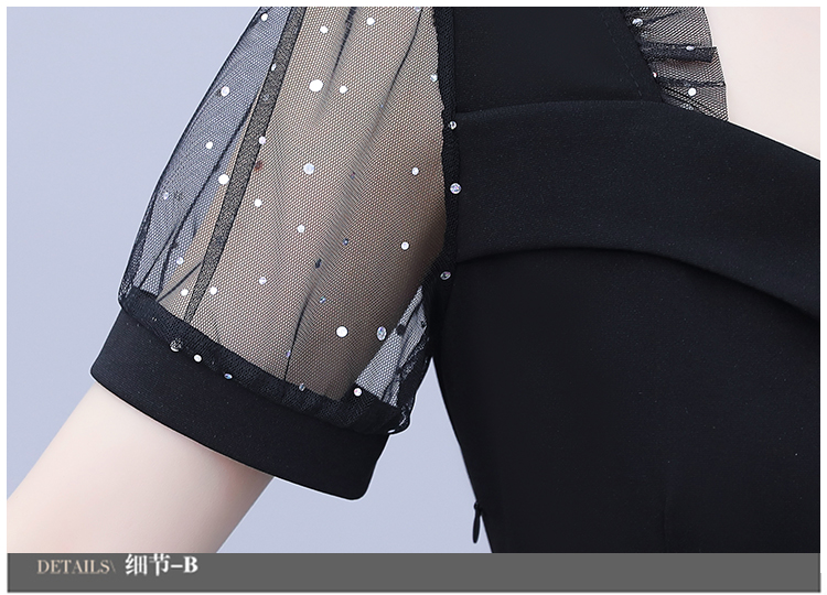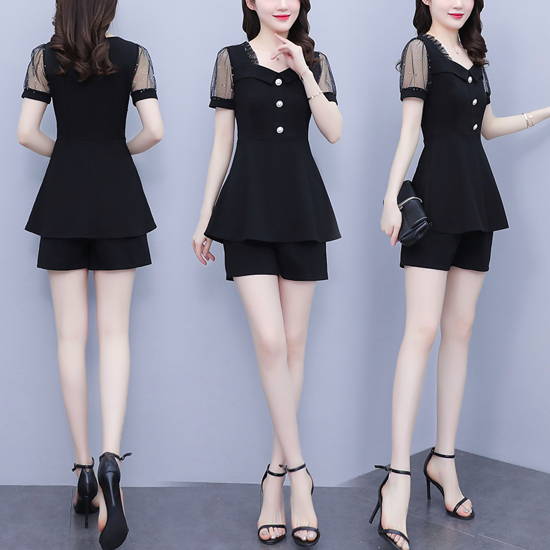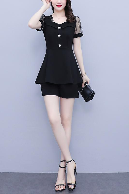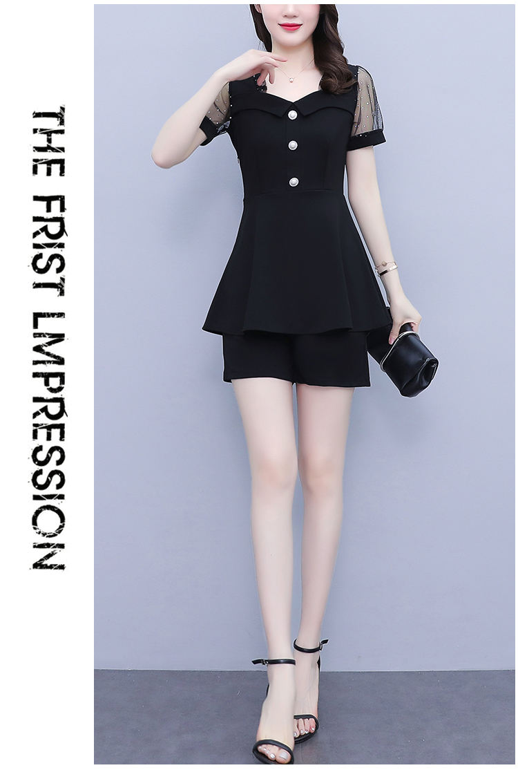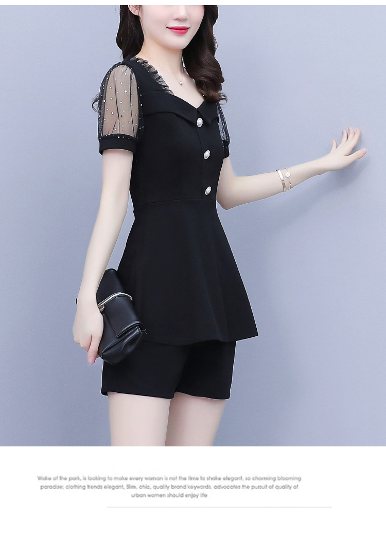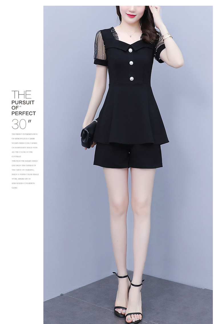 RY1579# 大码女装2026夏季新款胖mm亮片网纱拼接修身上衣+短裤两件套套装