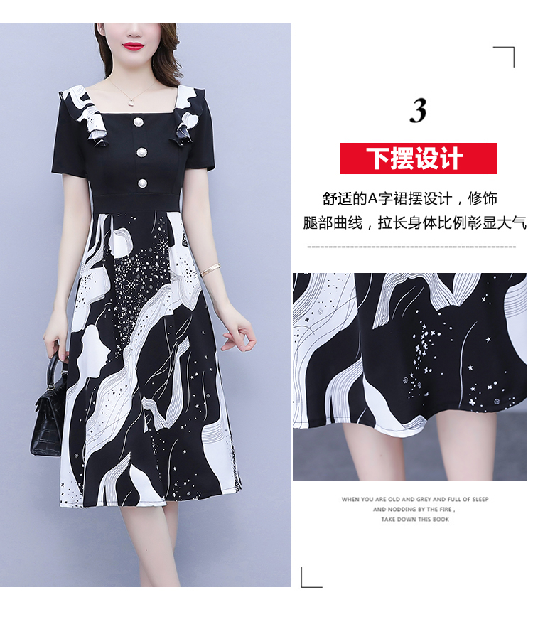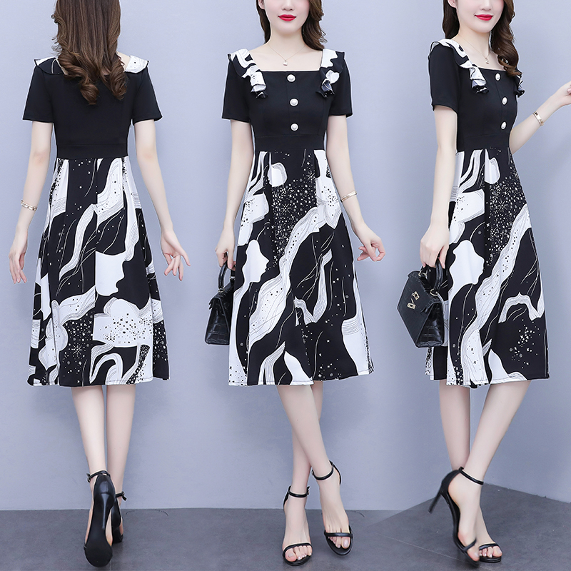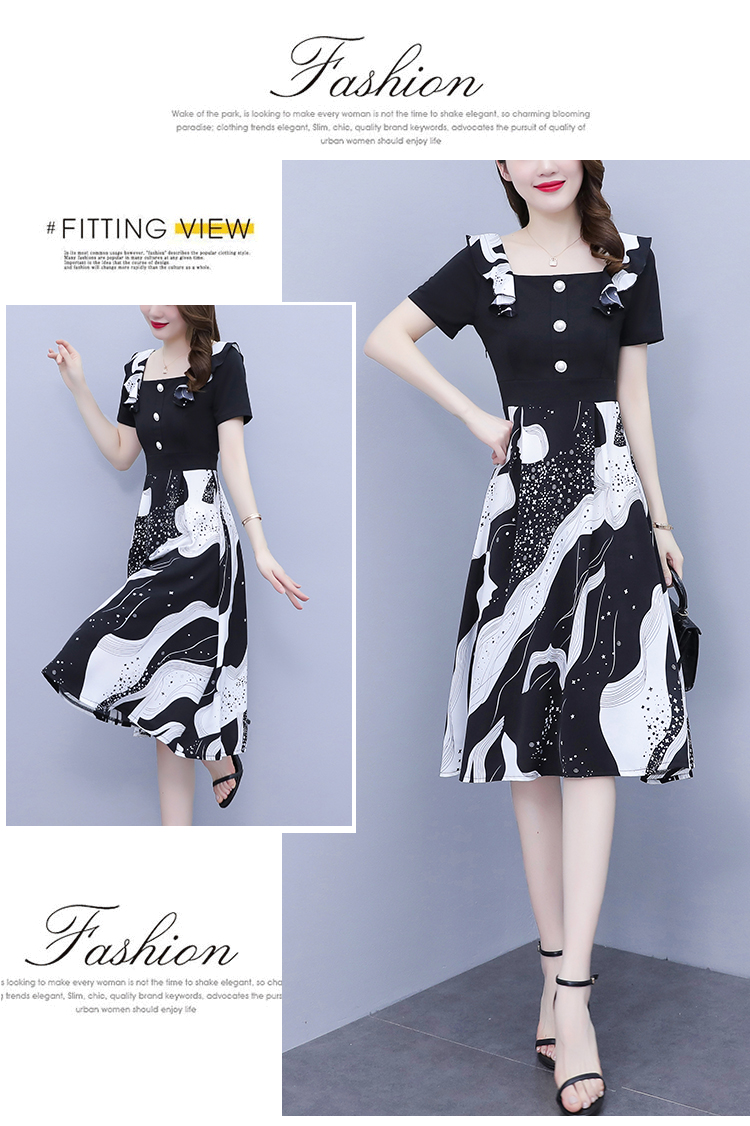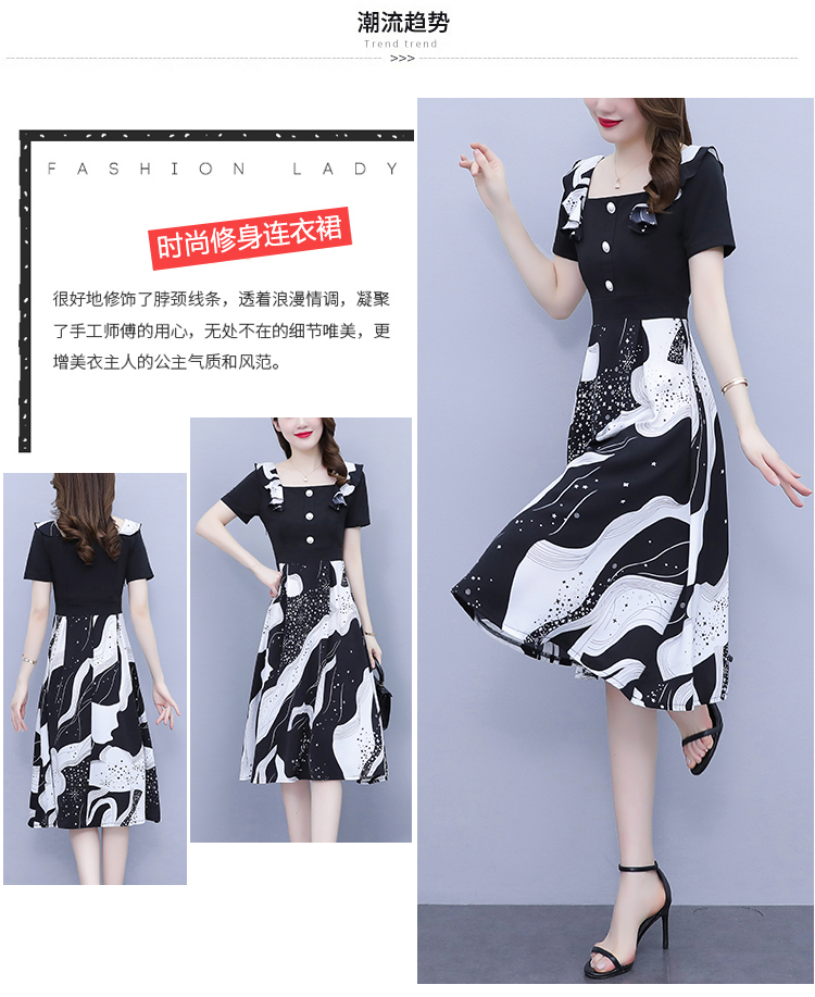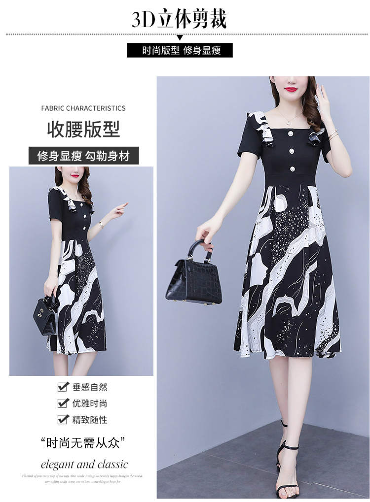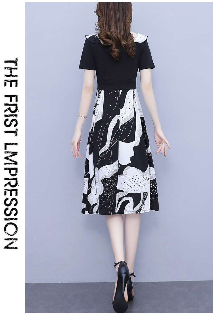 RY1581# 大码女装2026夏韩版季胖mm印花拼接荷叶领简约修身洋气连衣裙女