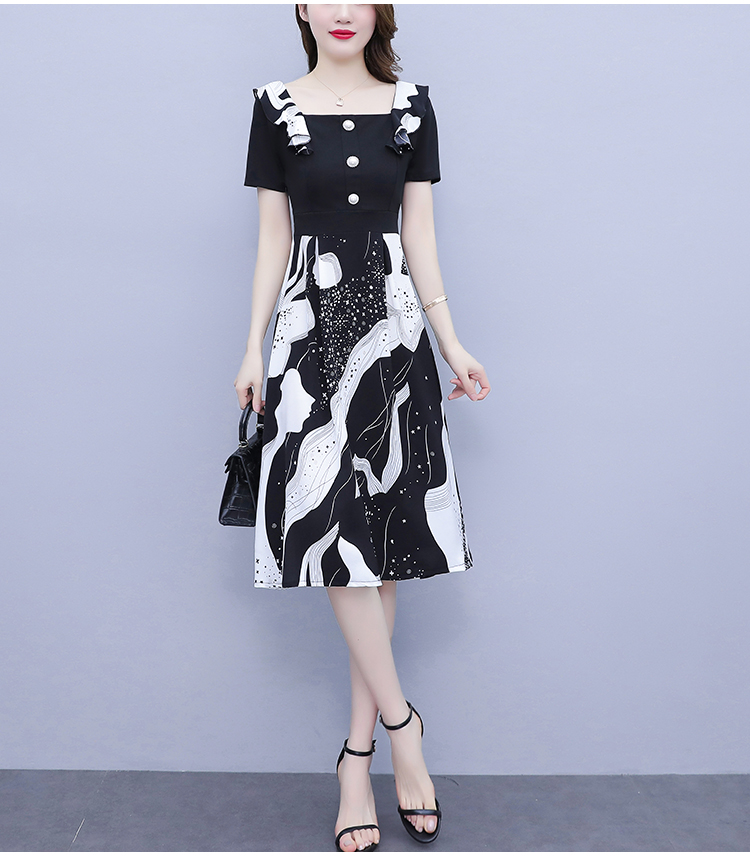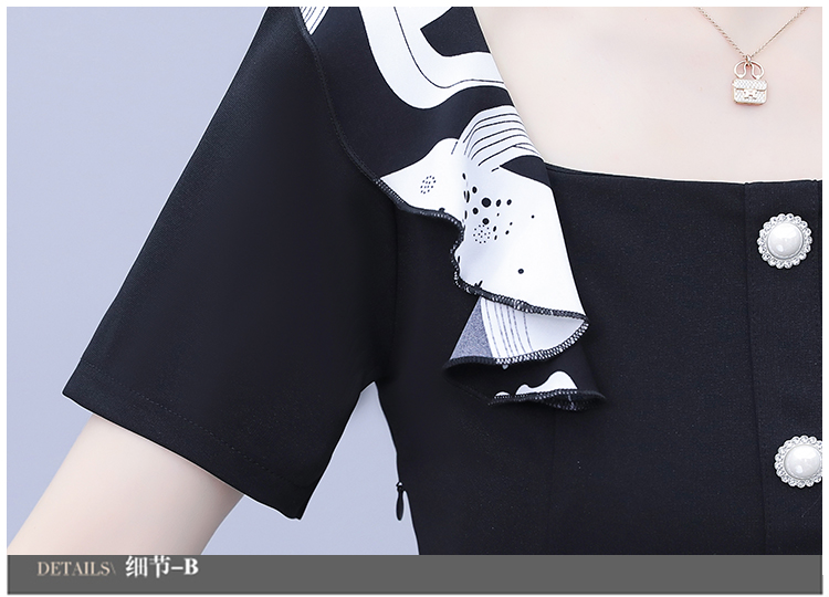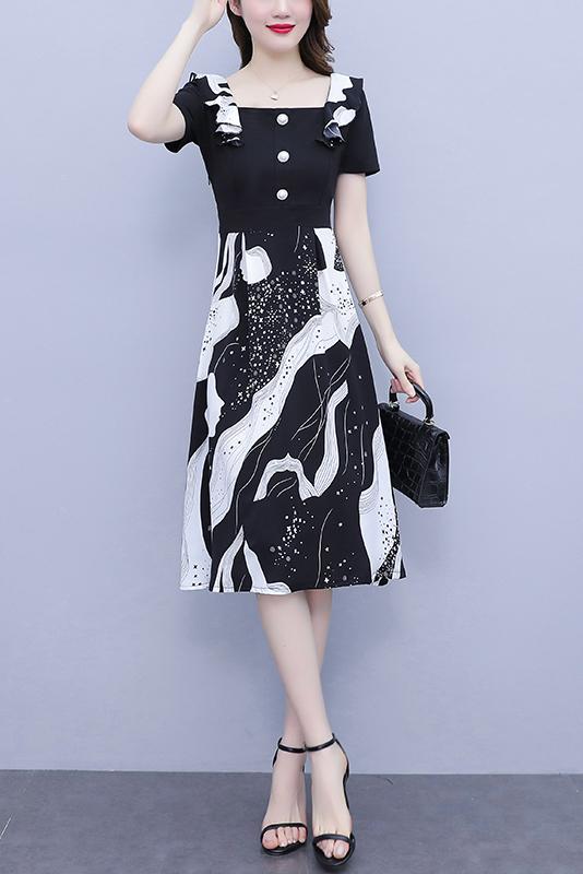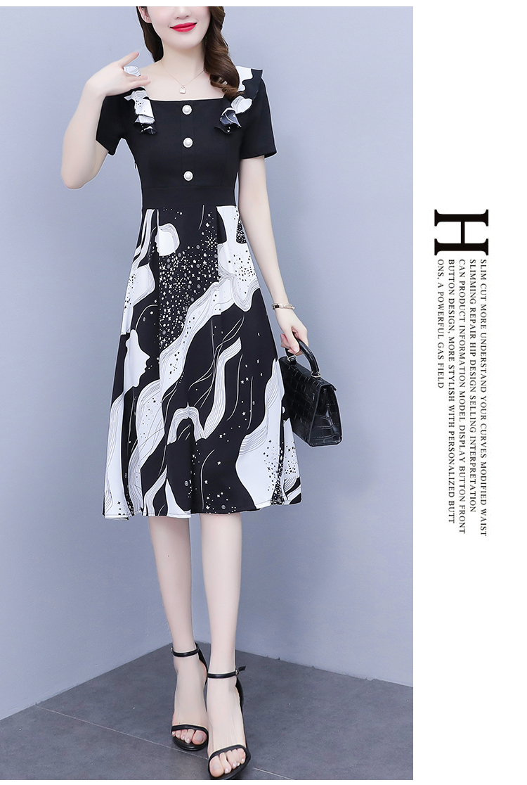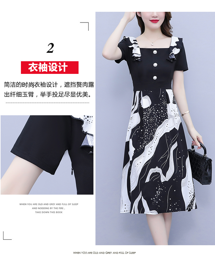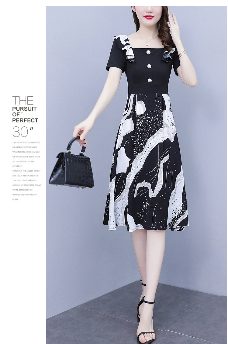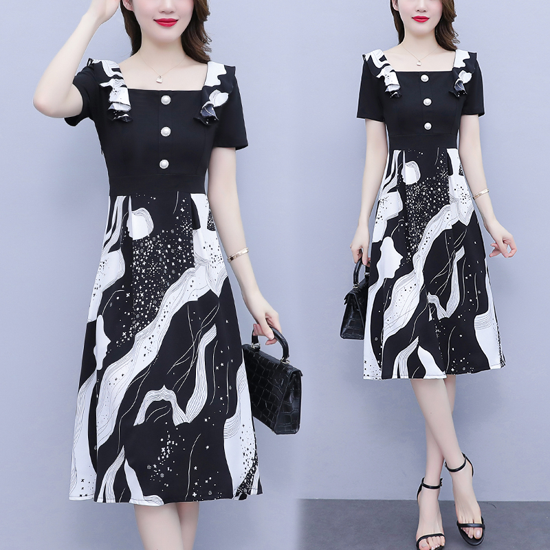 RY1581# 大码女装2026夏韩版季胖mm印花拼接荷叶领简约修身洋气连衣裙女