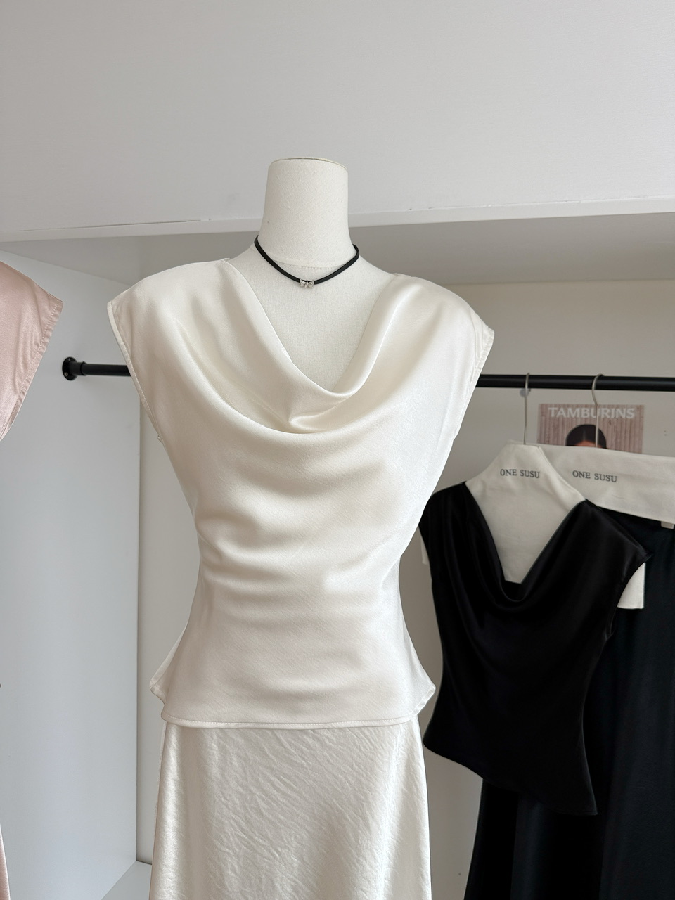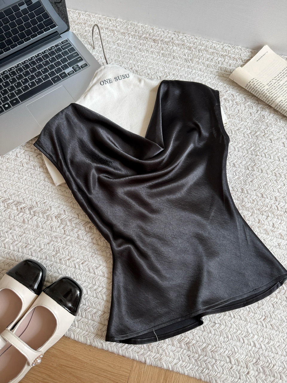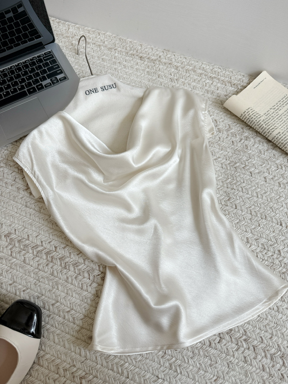 RY1605# KARFELY/重磅三醋酸缎面衬衫性感优雅荡领醋酸缎面衬衣背心打底衫