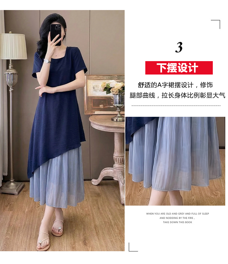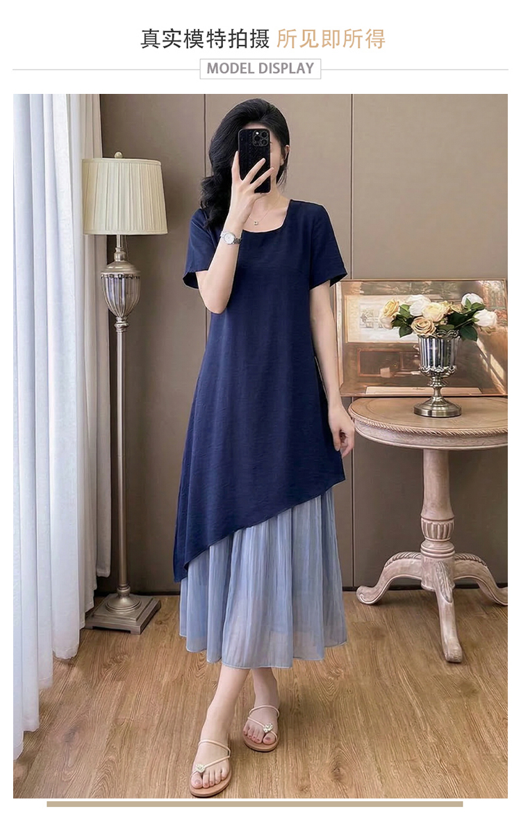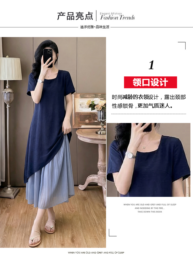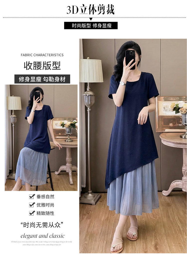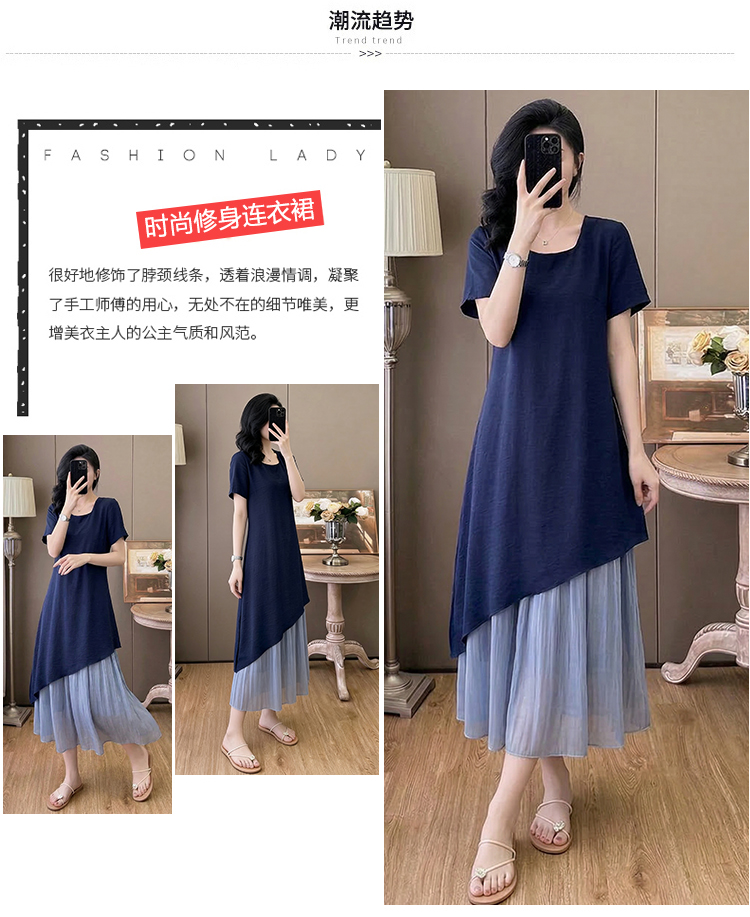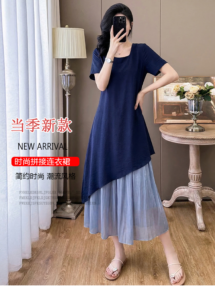 RY1606# 2026夏季新款法式高级感时尚拼接假两件显瘦中长款连衣裙女