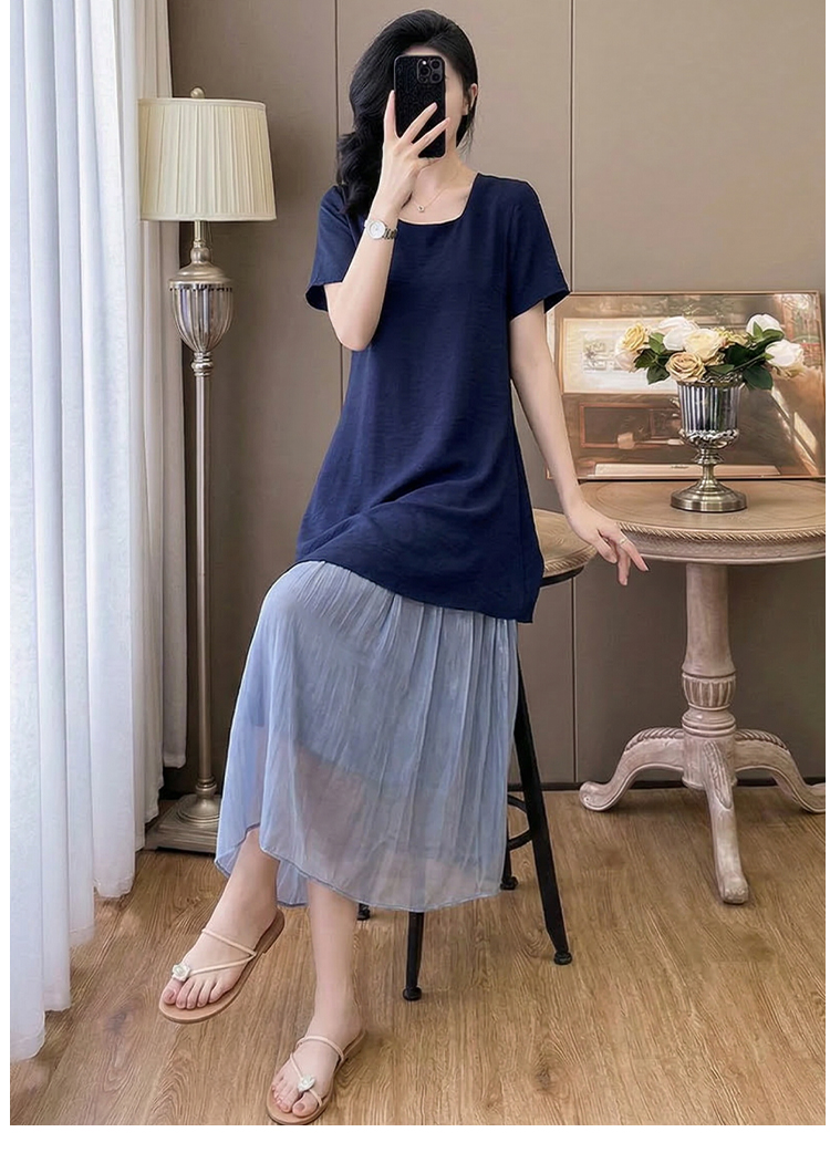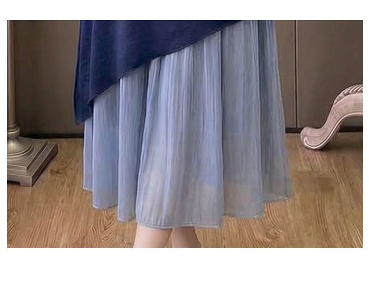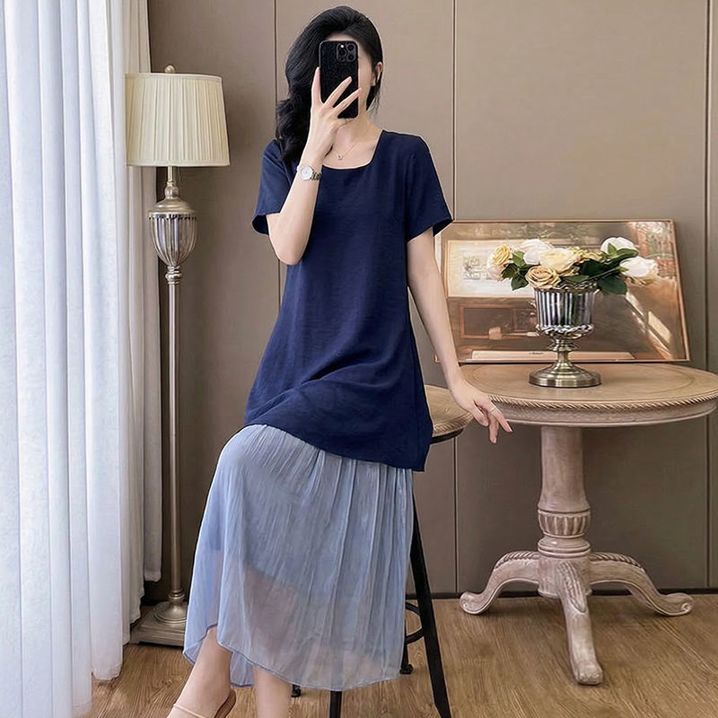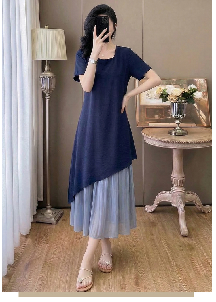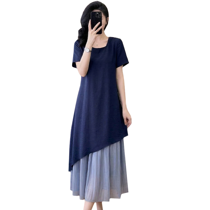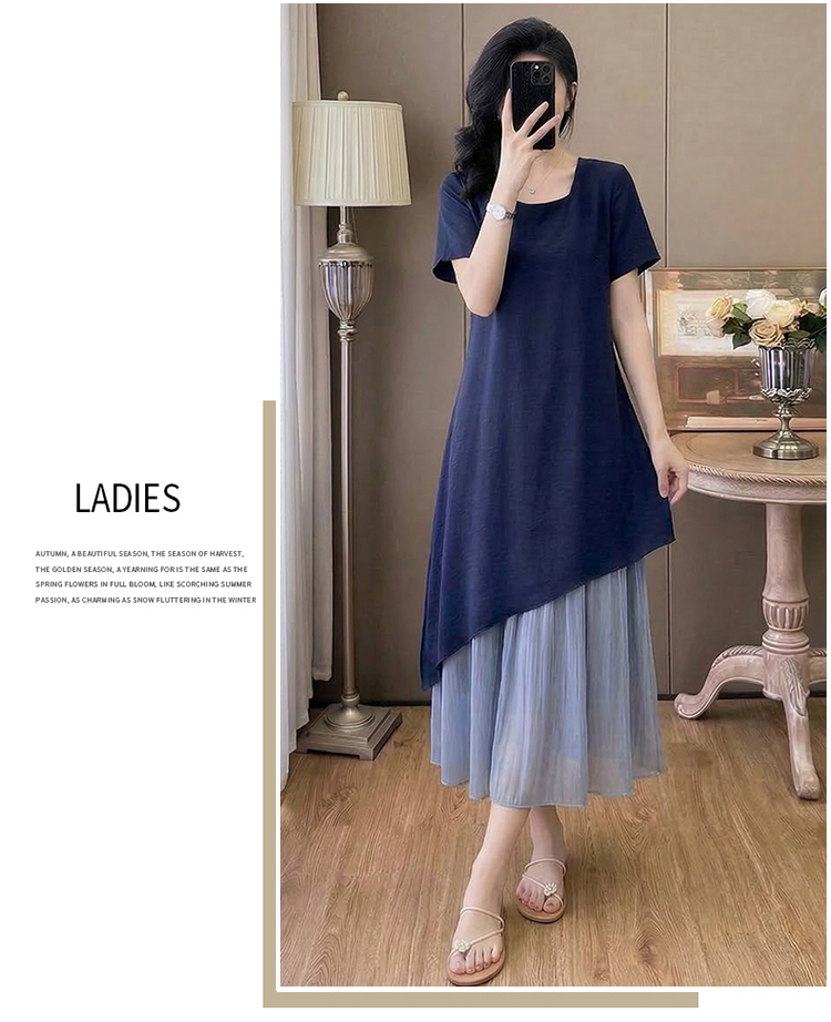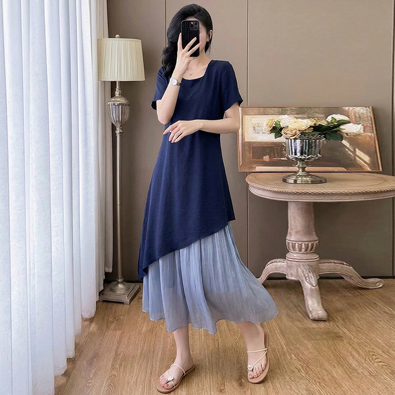 RY1606# 2026夏季新款法式高级感时尚拼接假两件显瘦中长款连衣裙女
