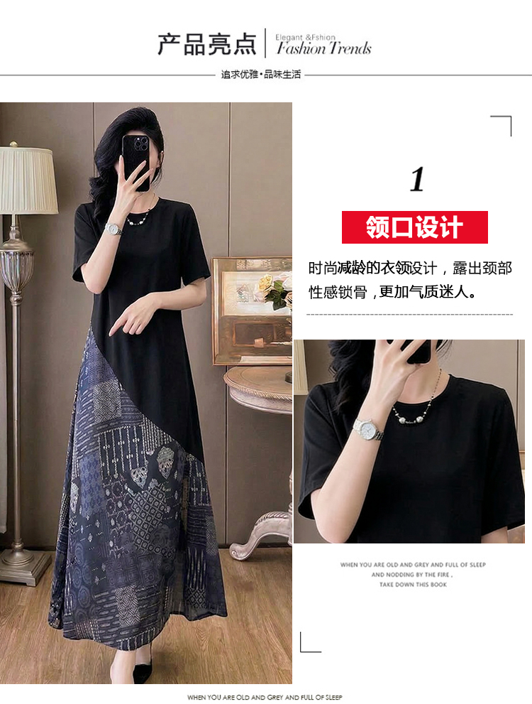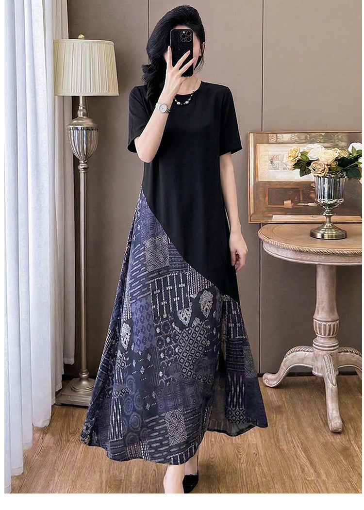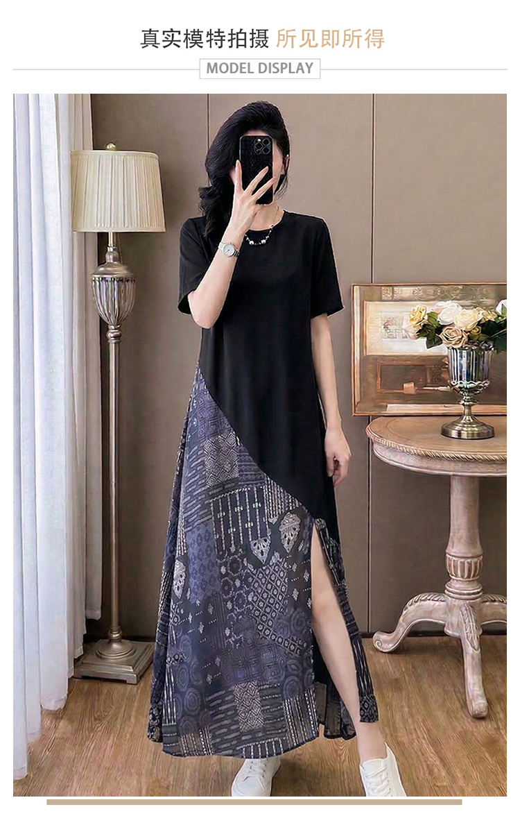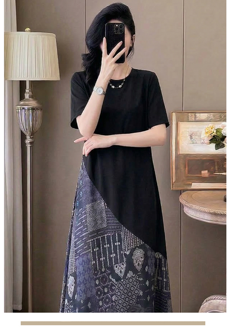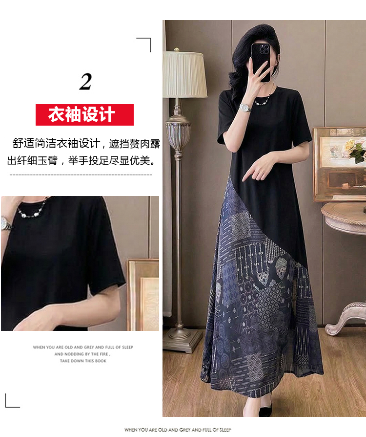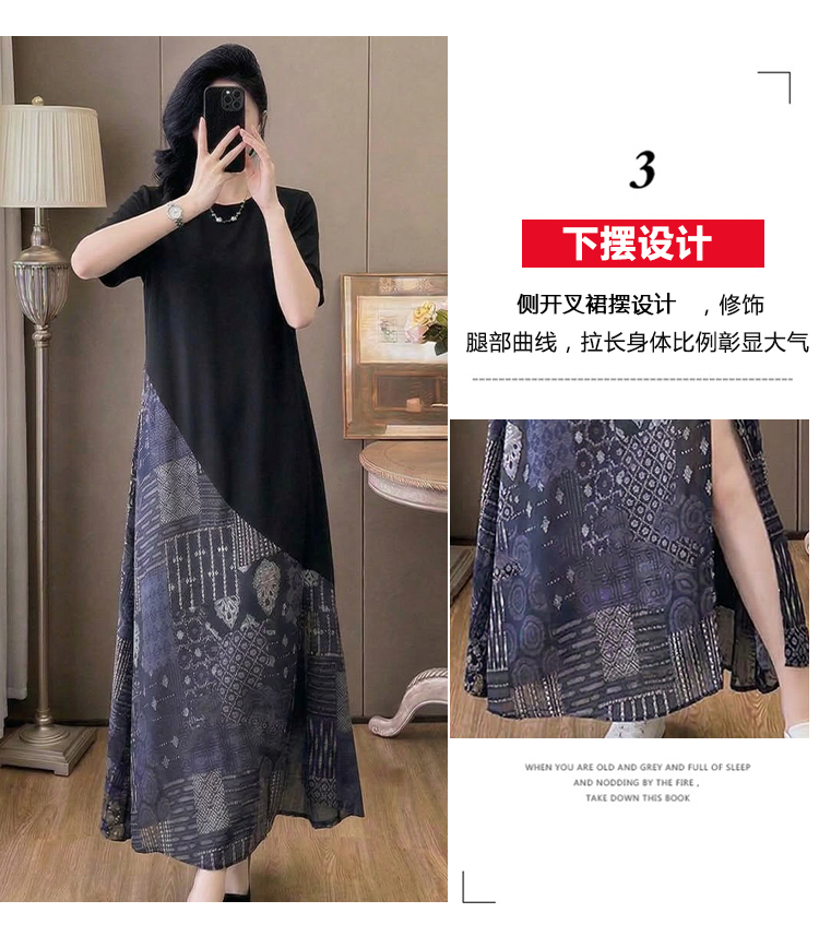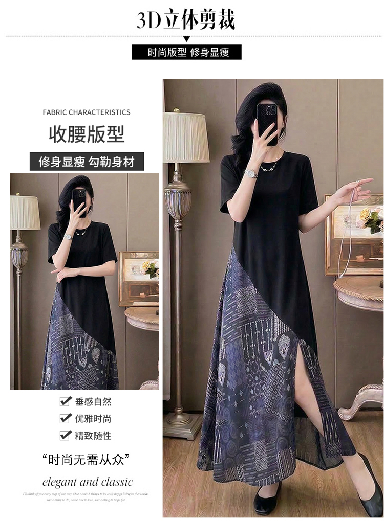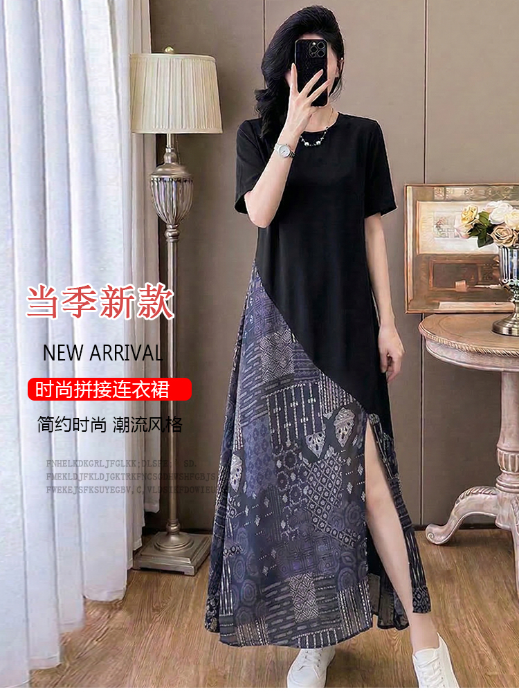 RY1607# 2026夏季新款法式轻奢时尚高端印花拼接名族风中长款显瘦连衣裙女