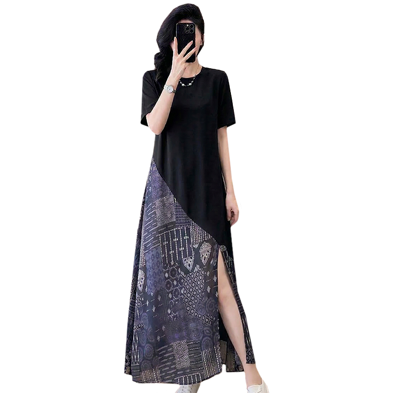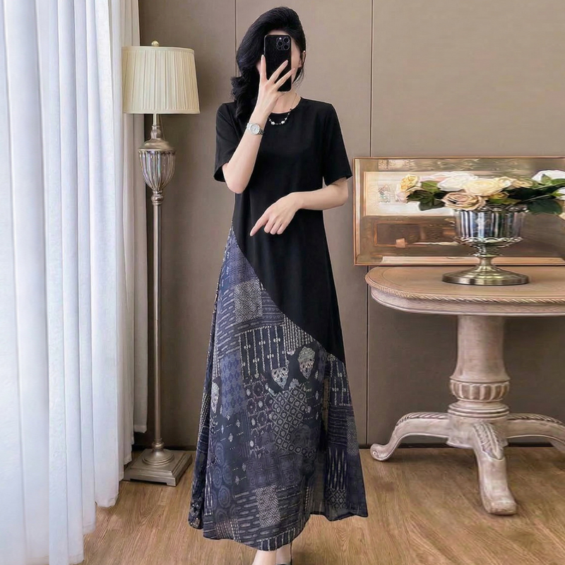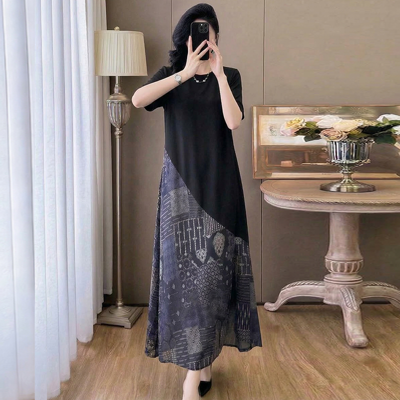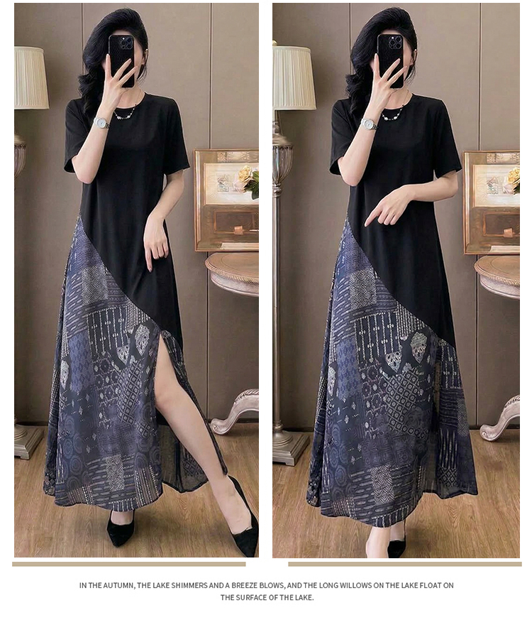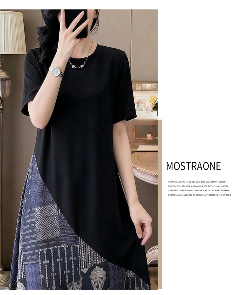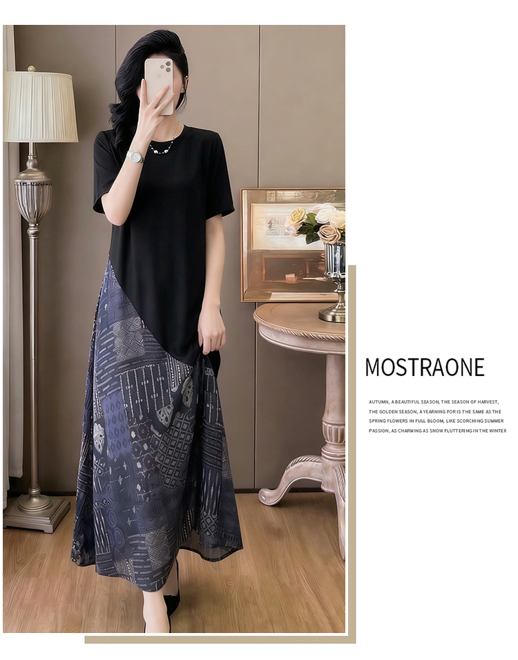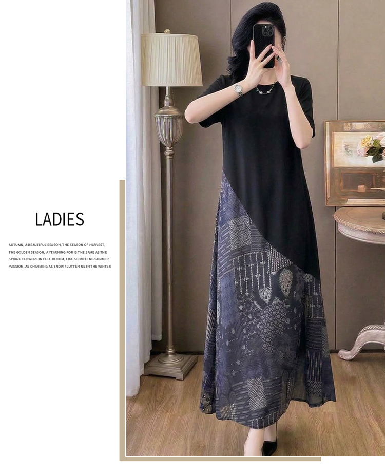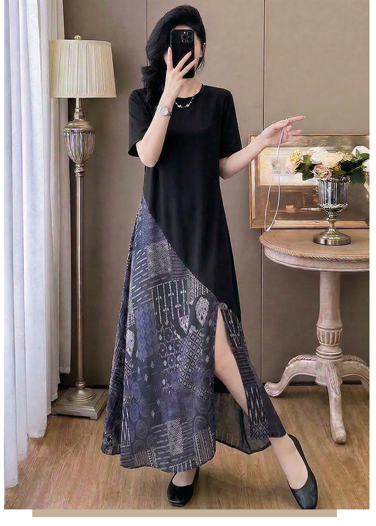 RY1607# 2026夏季新款法式轻奢时尚高端印花拼接名族风中长款显瘦连衣裙女