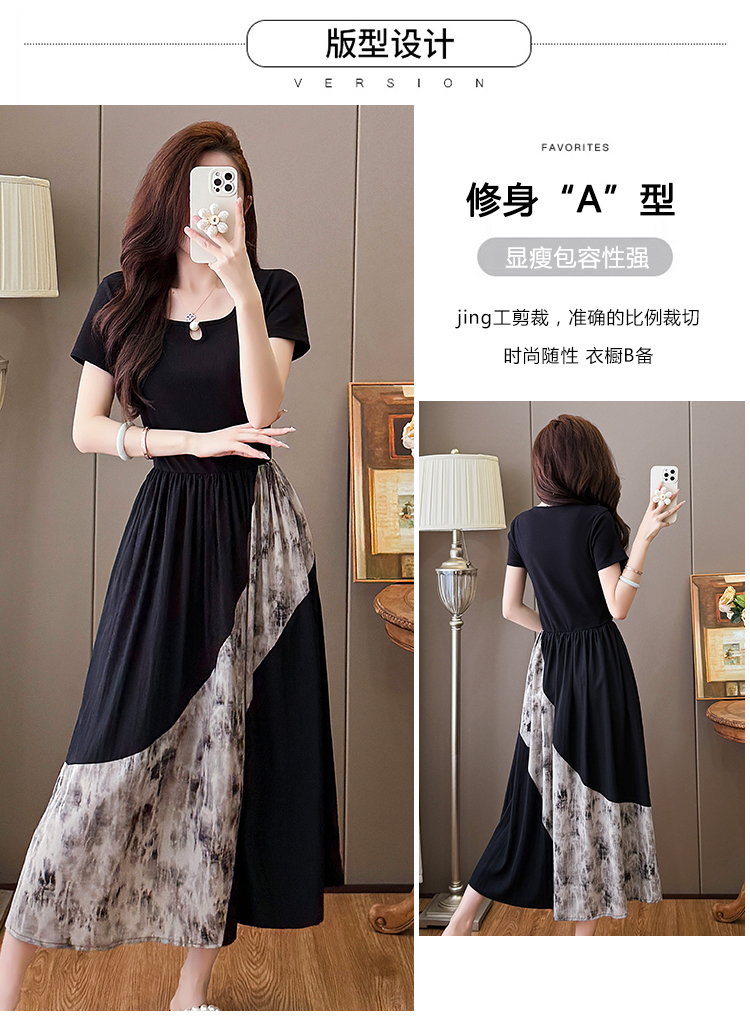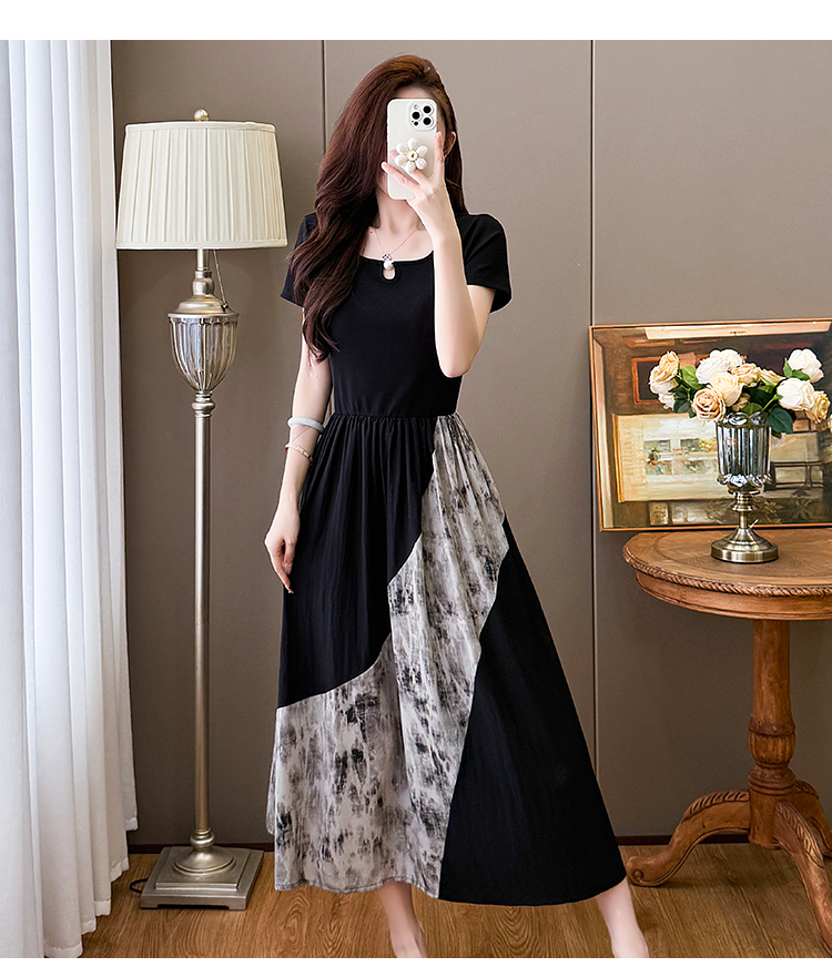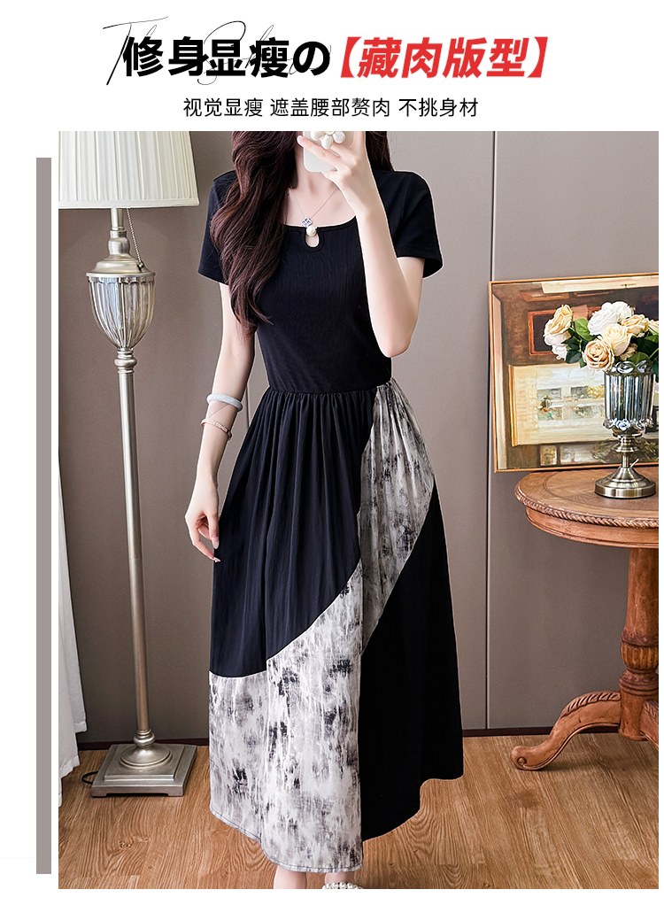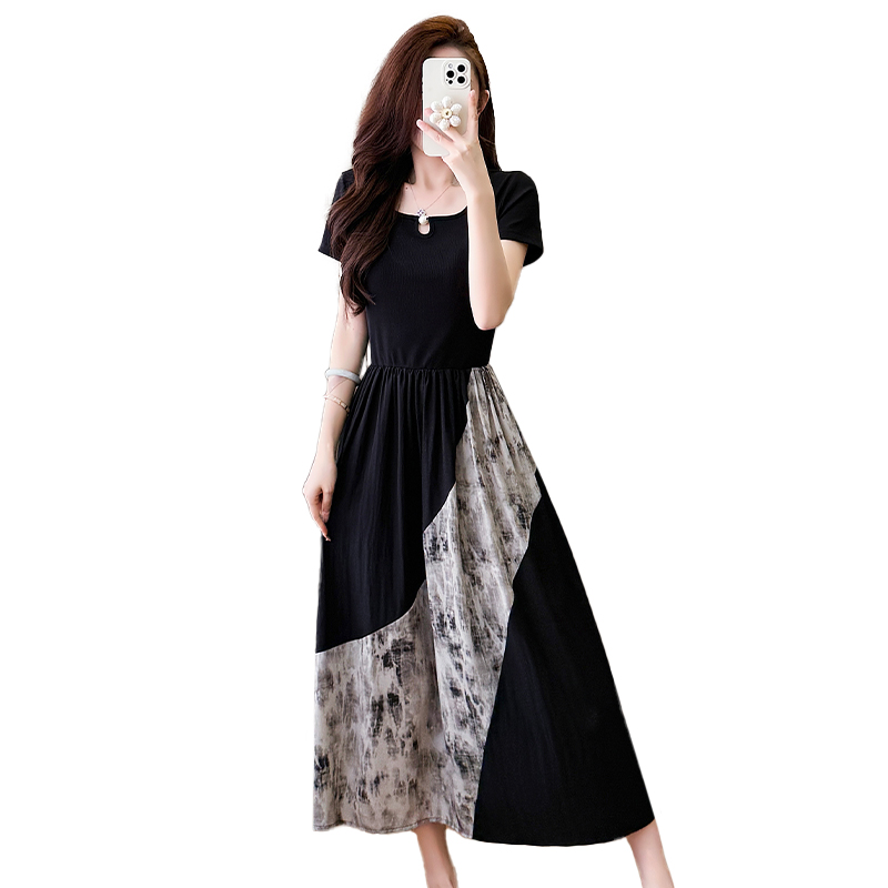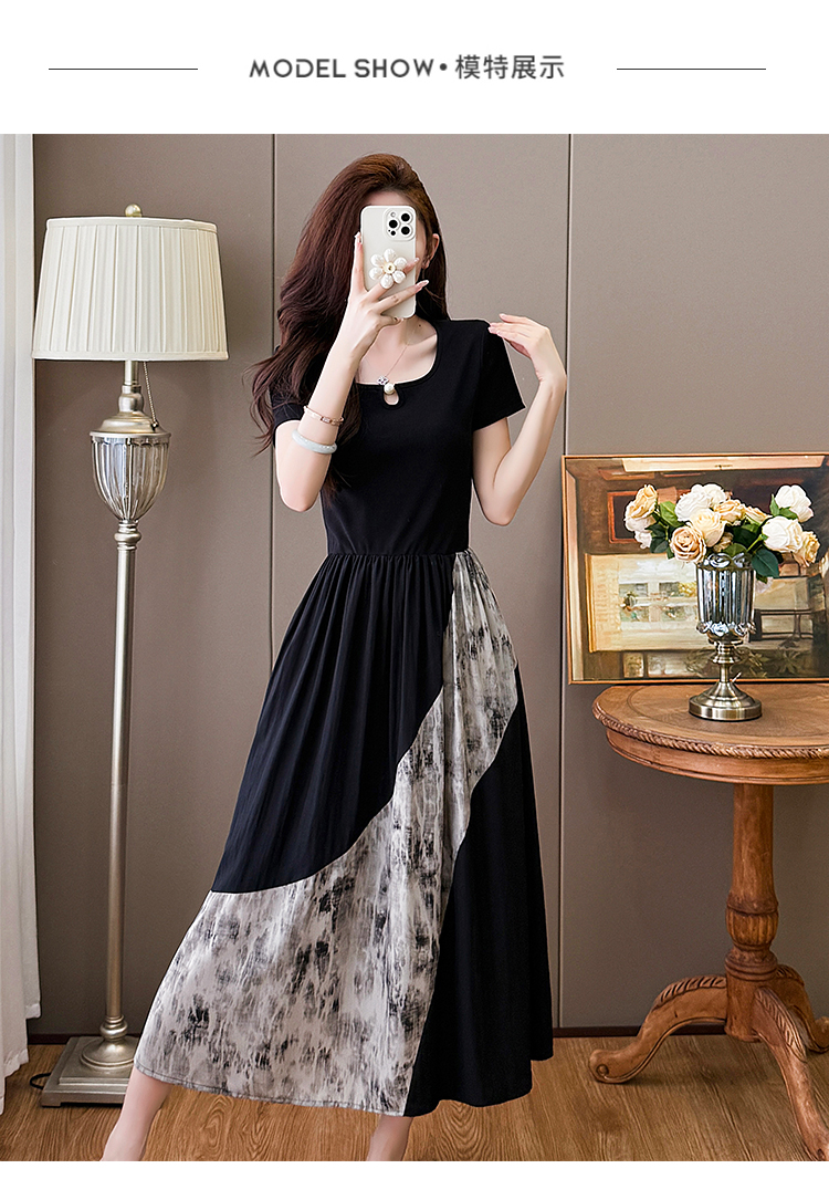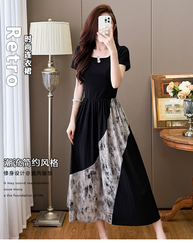 RY1608# 2026夏季新款中式国风拼接时尚显瘦中长款A版连衣裙女