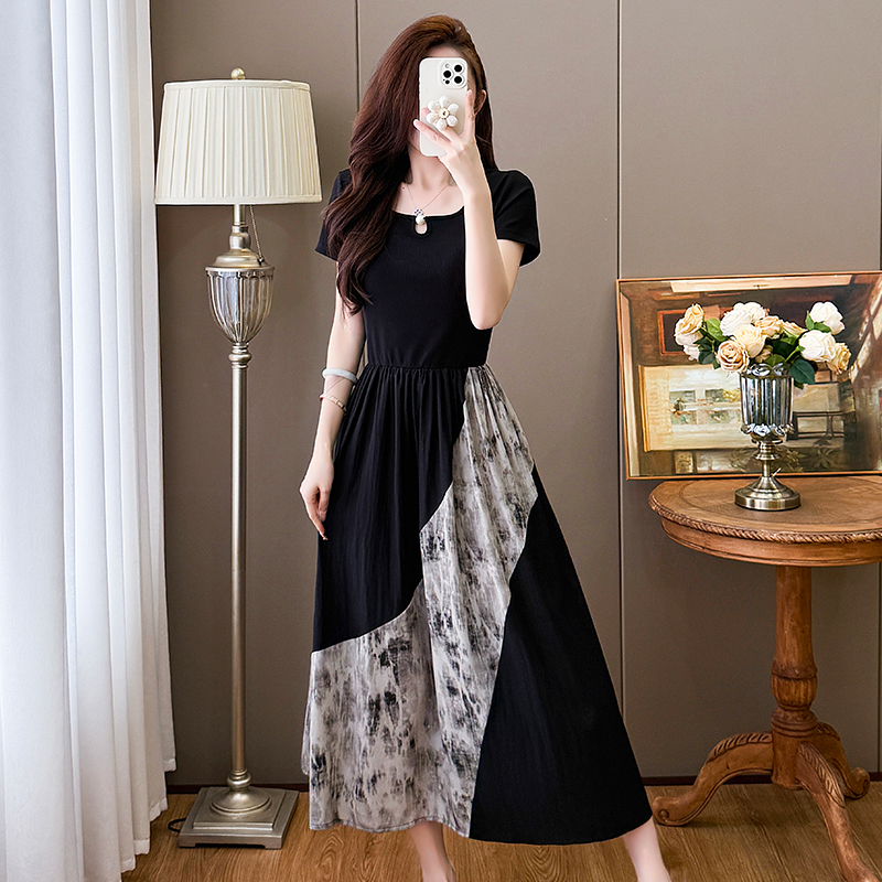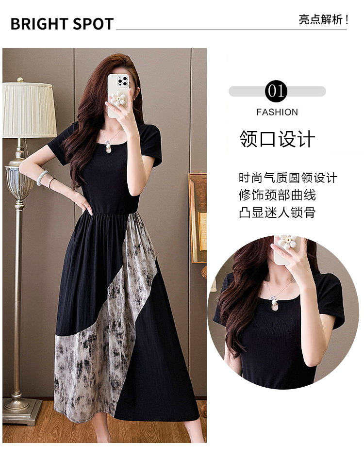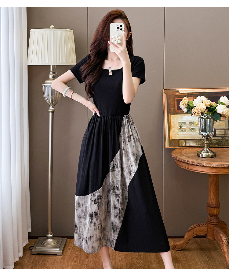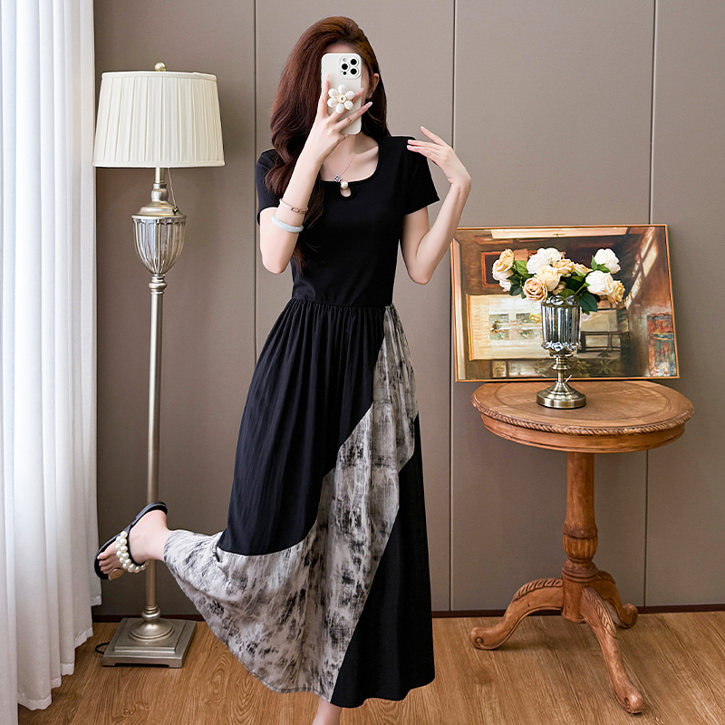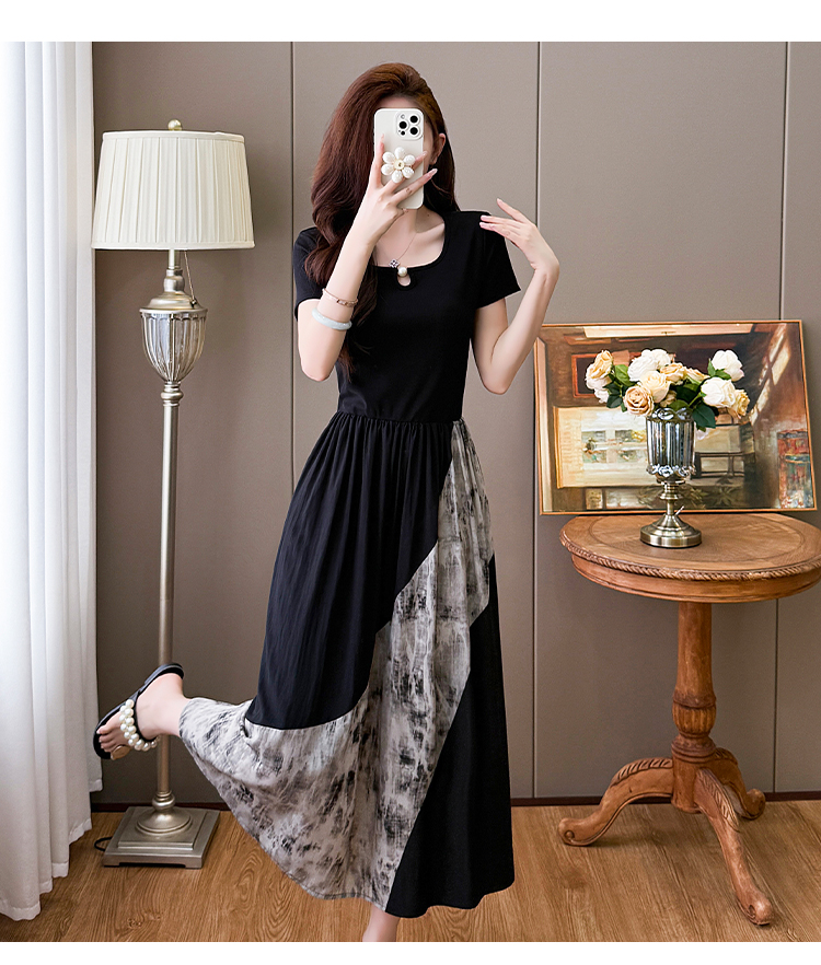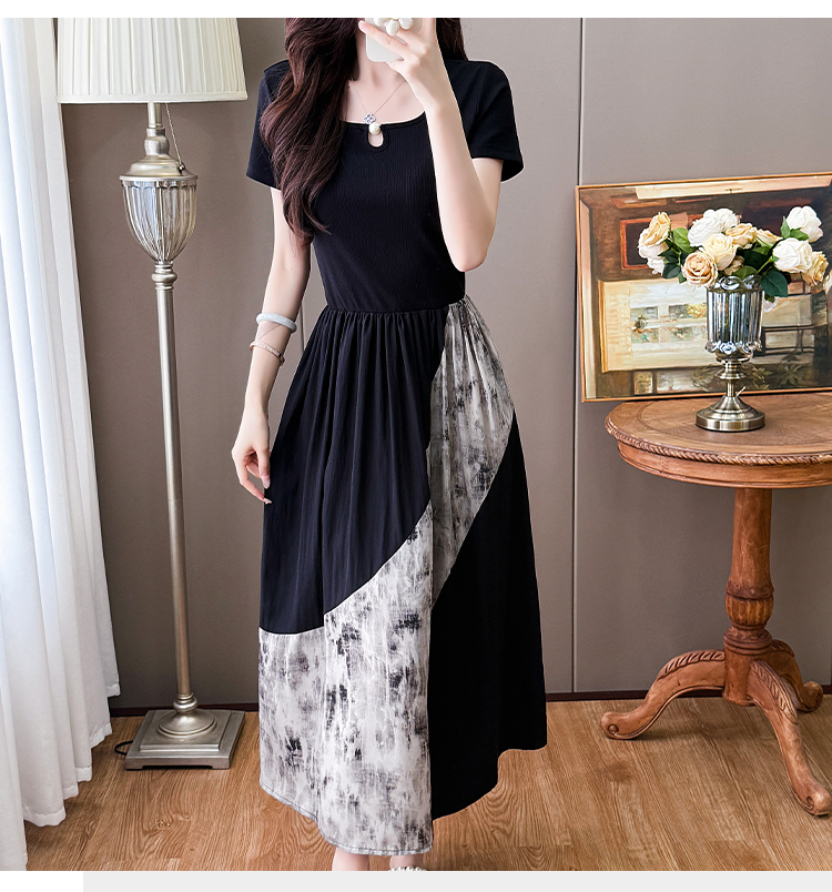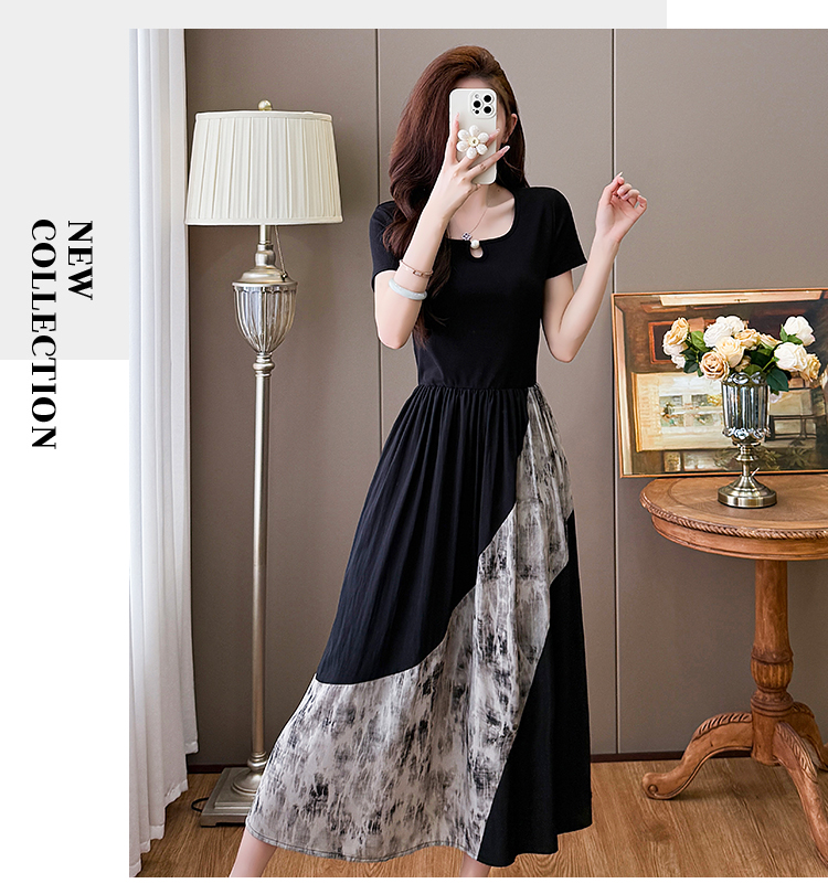 RY1608# 2026夏季新款中式国风拼接时尚显瘦中长款A版连衣裙女