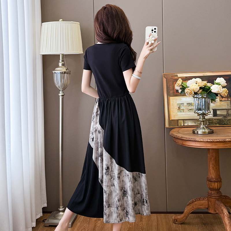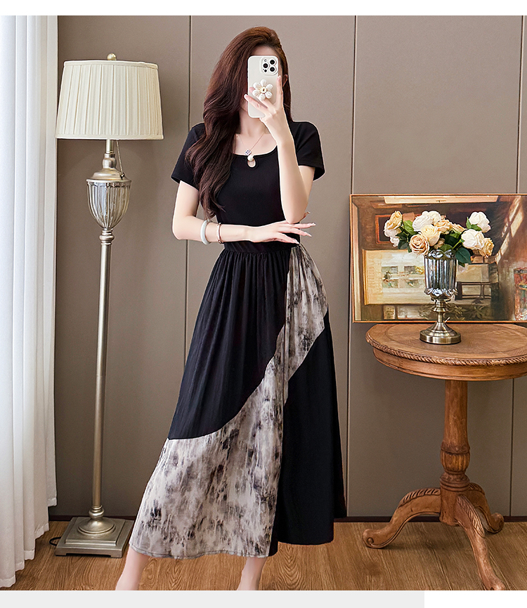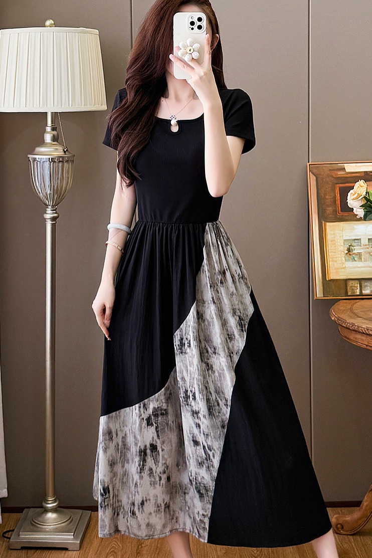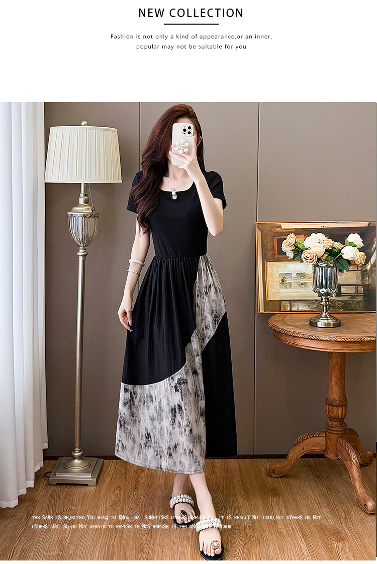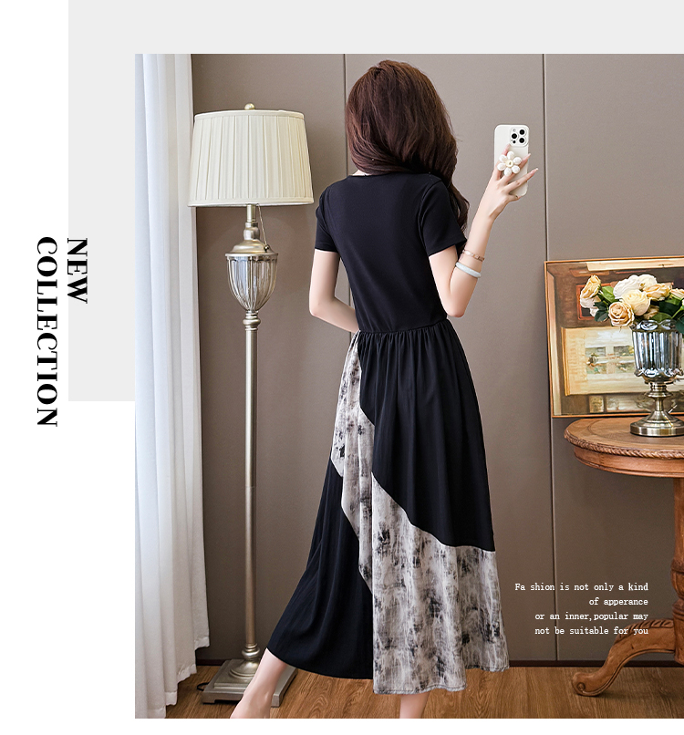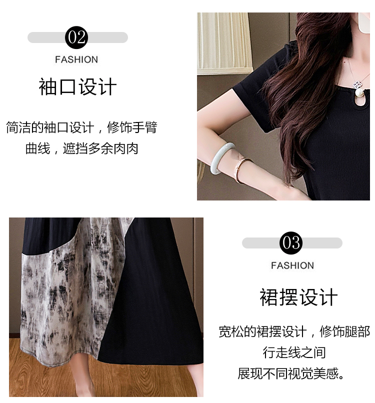 RY1608# 2026夏季新款中式国风拼接时尚显瘦中长款A版连衣裙女