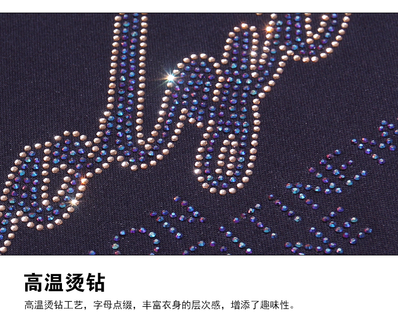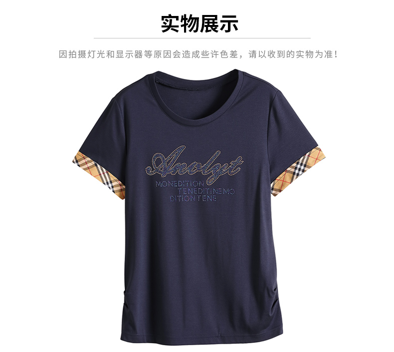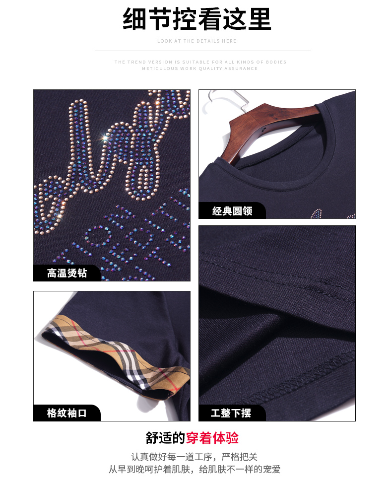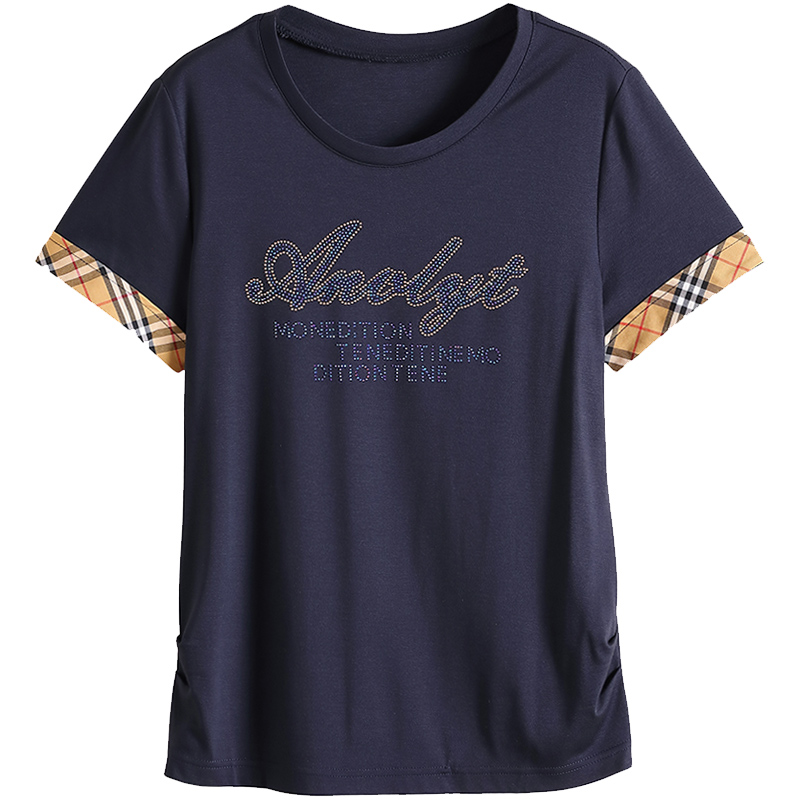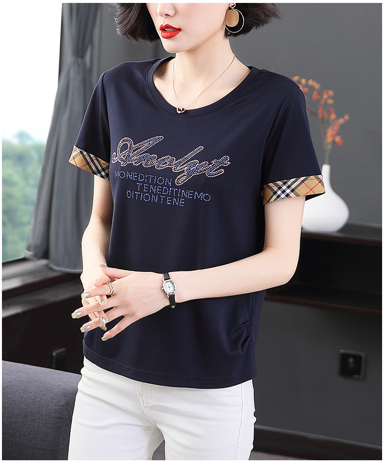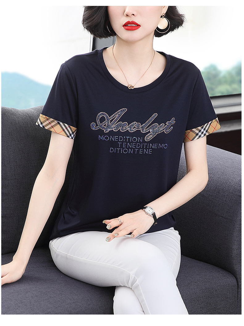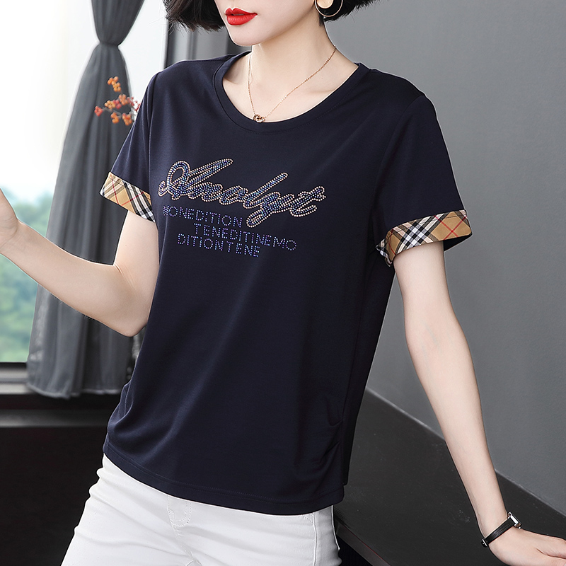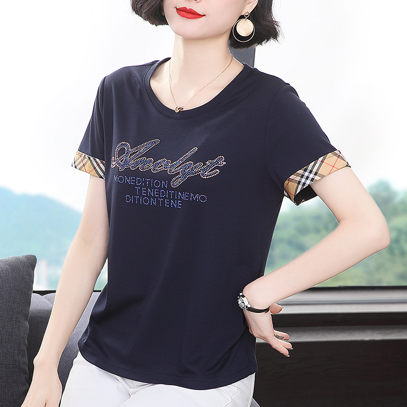 RY1612# 妈妈烫钻字母短袖上衣夏装洋气减龄小衫百搭大码宽松圆领t恤女潮