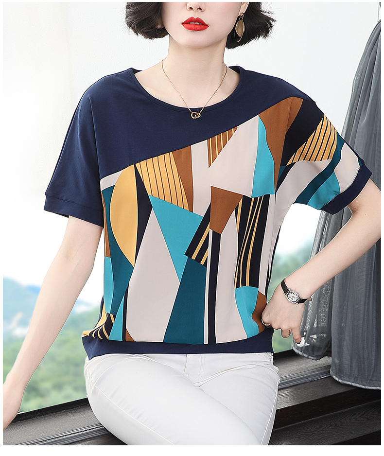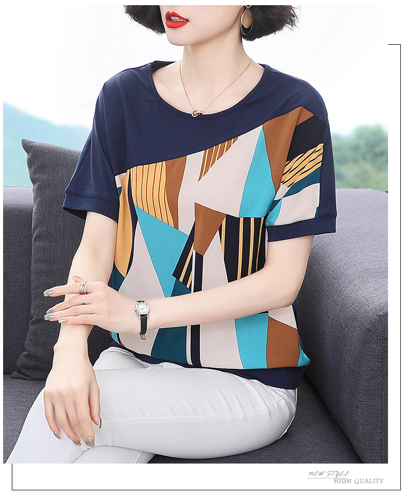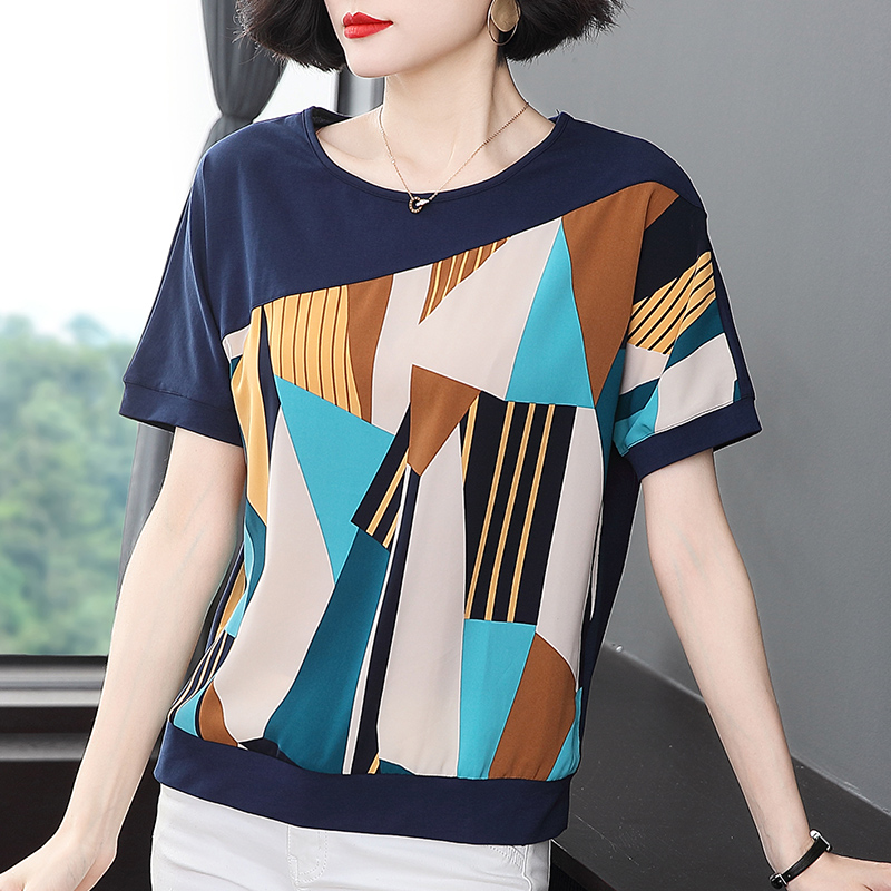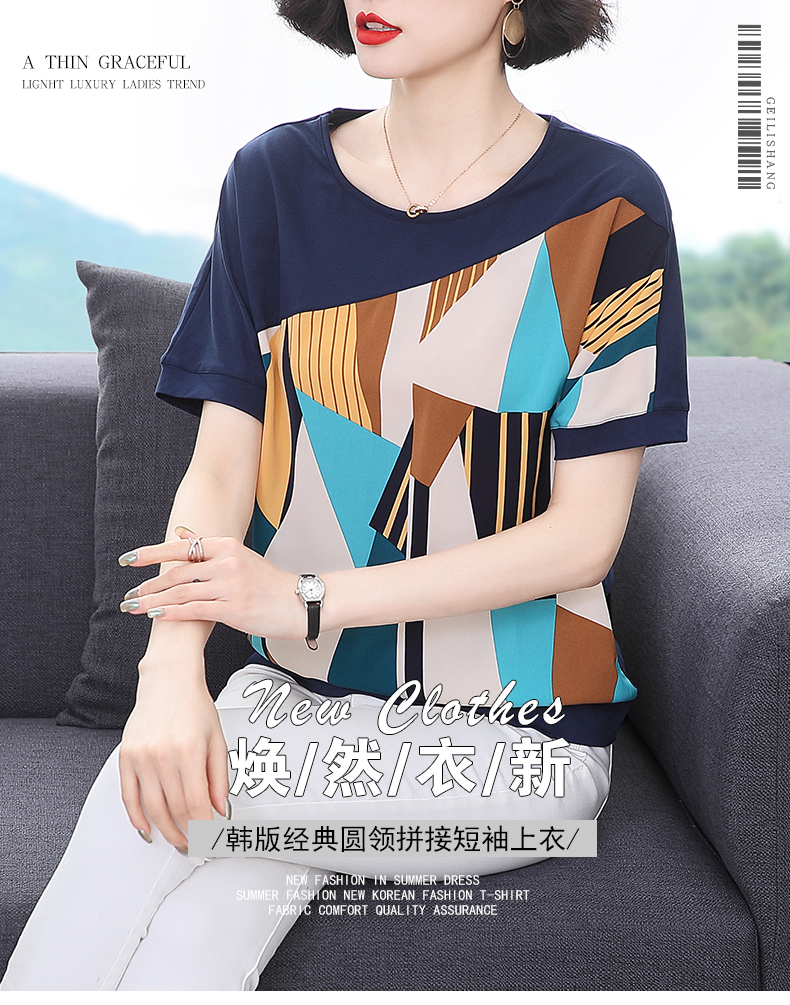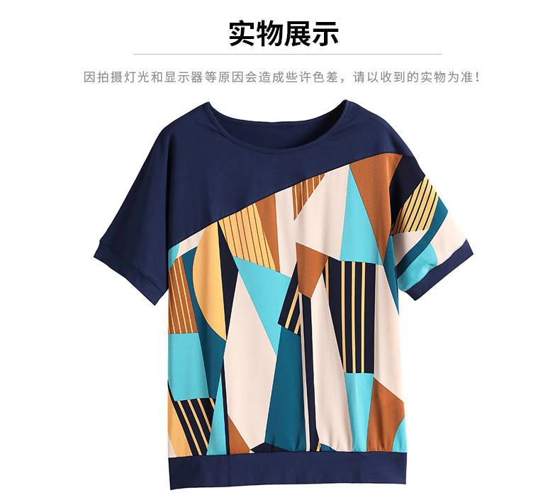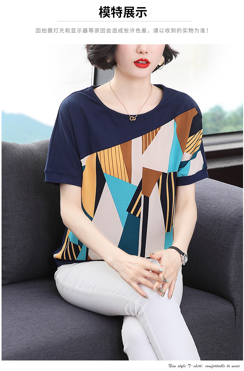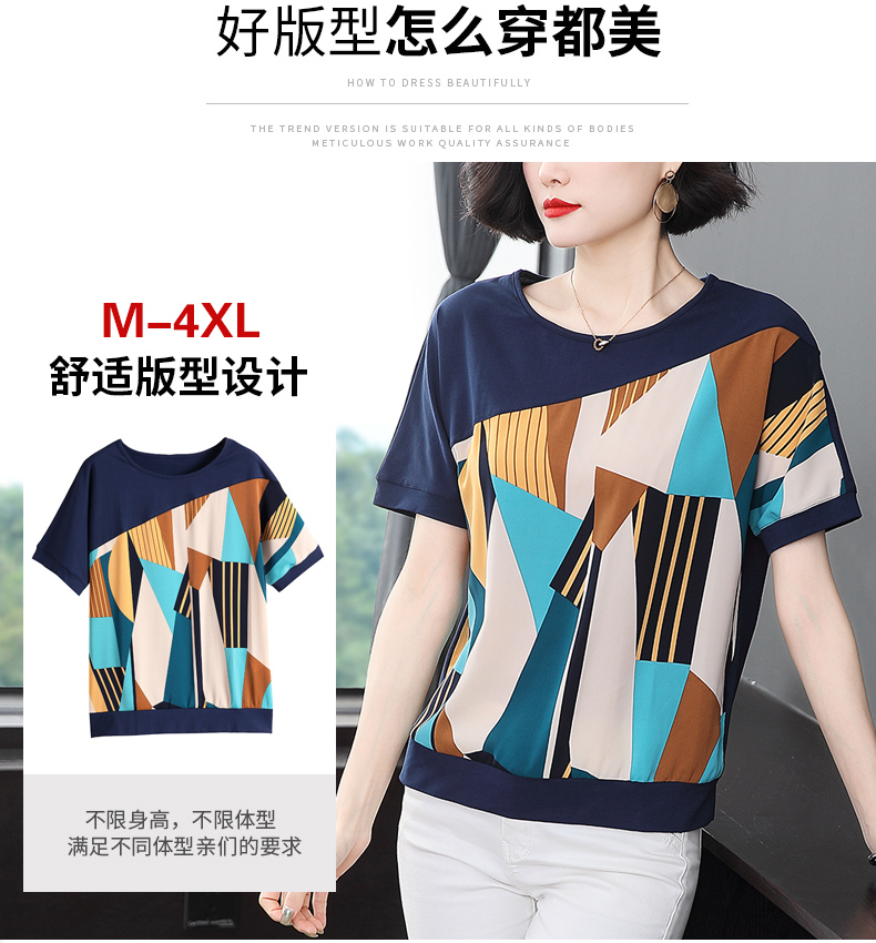 RY1613# 短袖t恤女中年妈妈款胖mm大码夏季雪纺半袖韩版50岁宽松遮肉上衣
