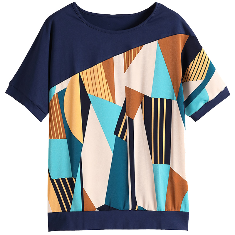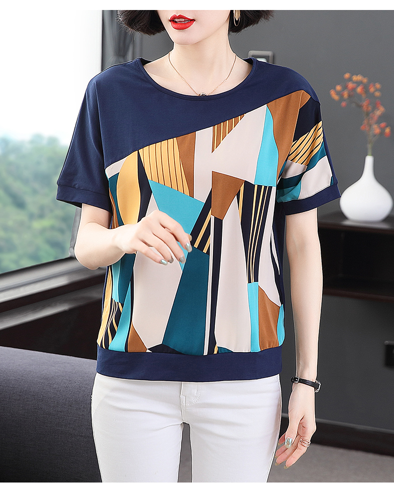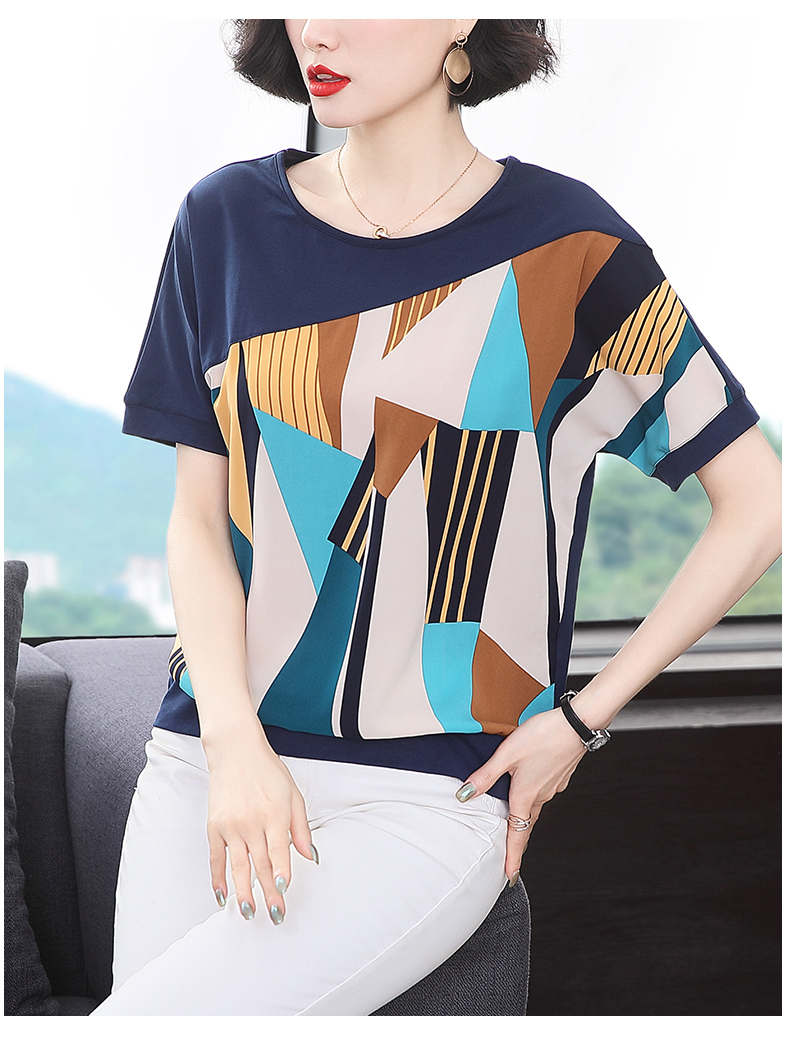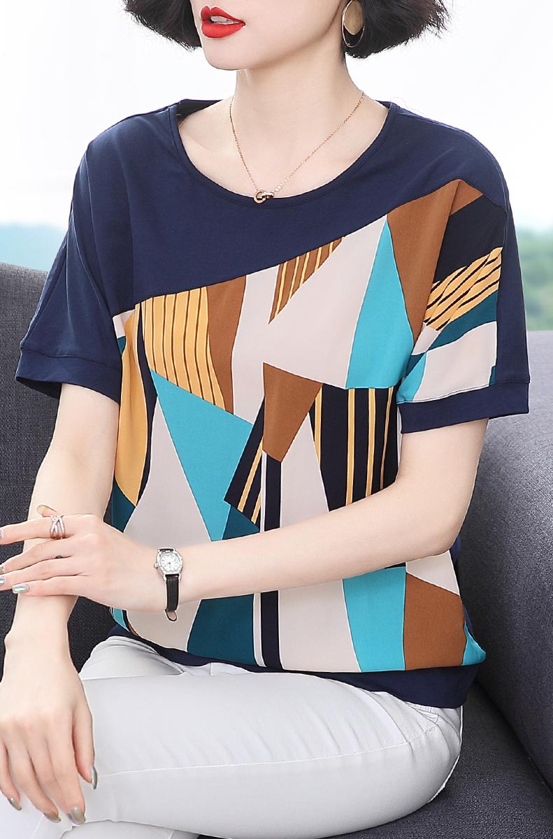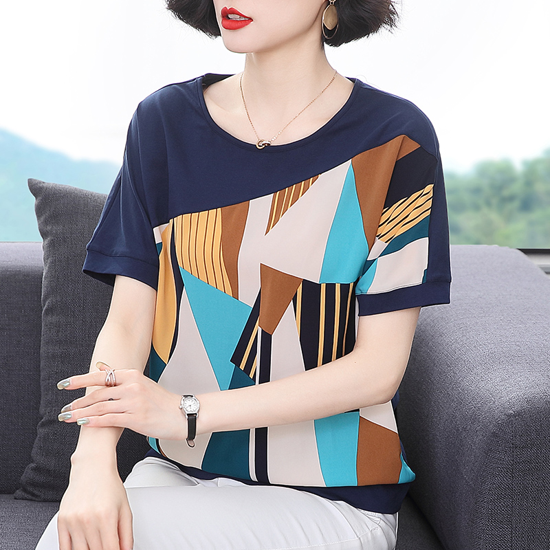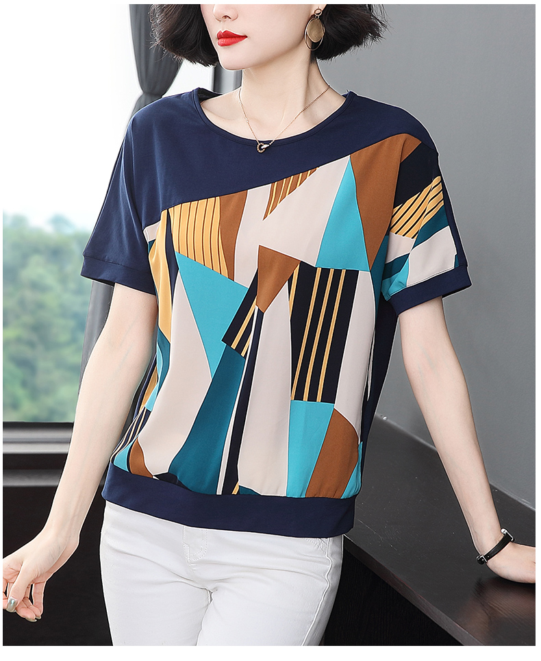 RY1613# 短袖t恤女中年妈妈款胖mm大码夏季雪纺半袖韩版50岁宽松遮肉上衣