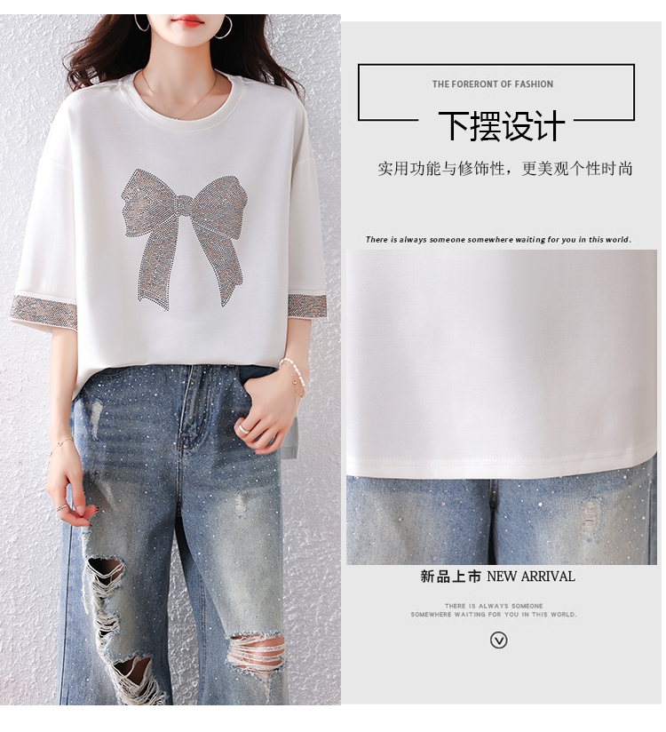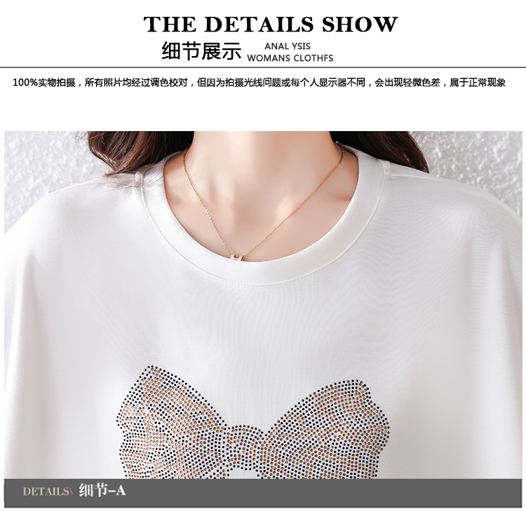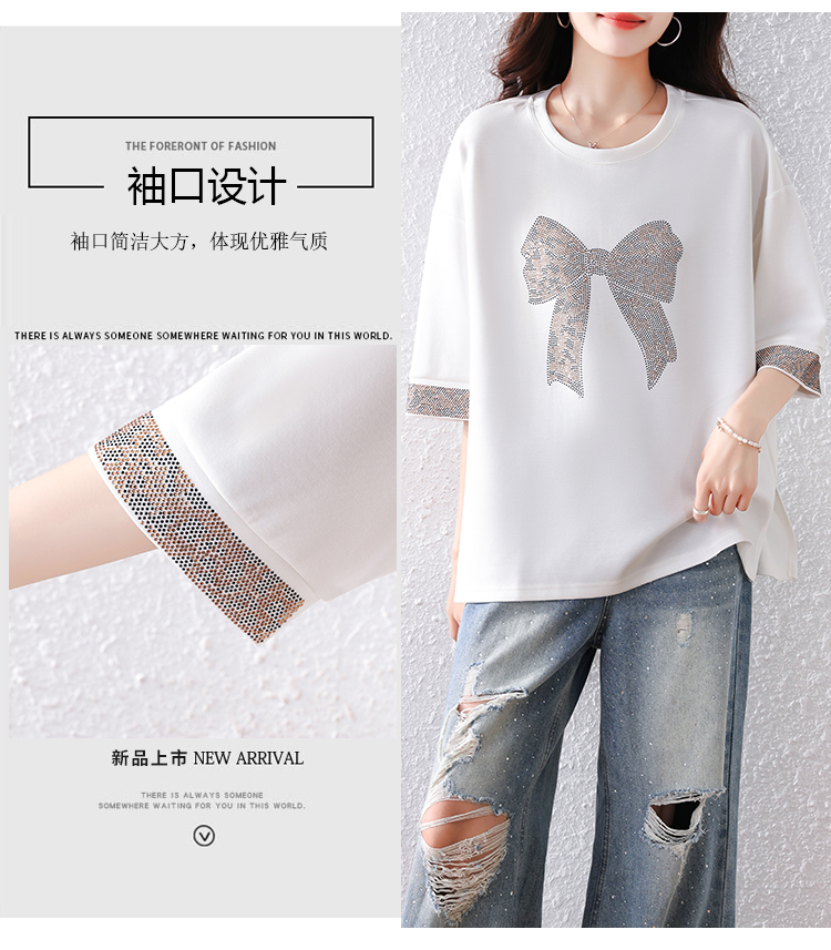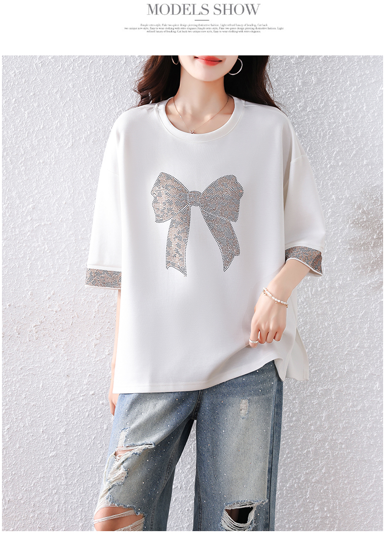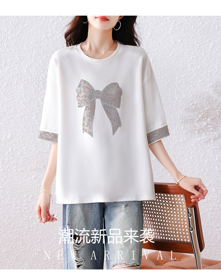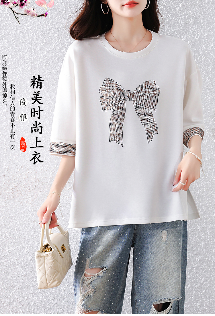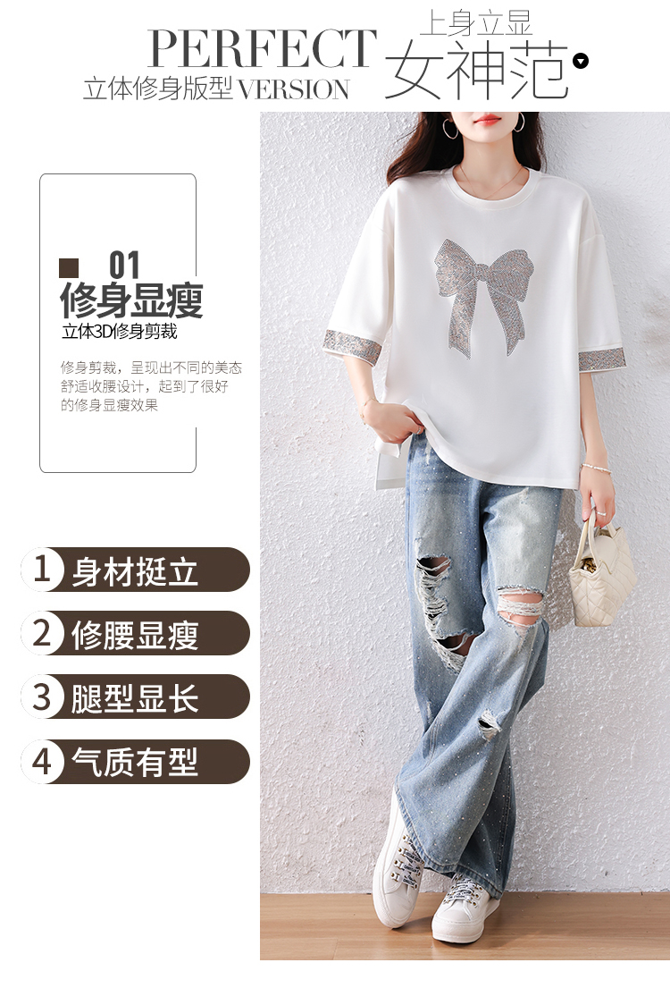 RY1627# 实拍2026夏季新款胖妹妹时尚减龄宽松遮肉显瘦重工烫钻T恤上衣、