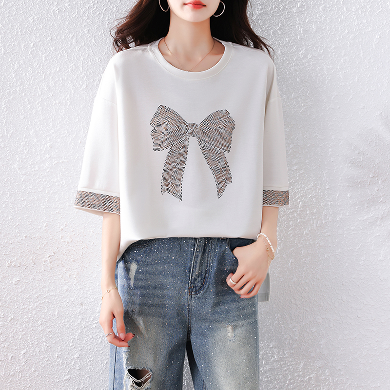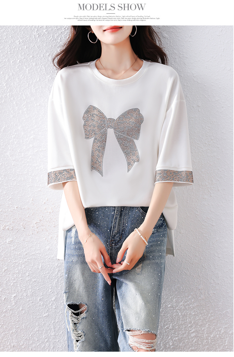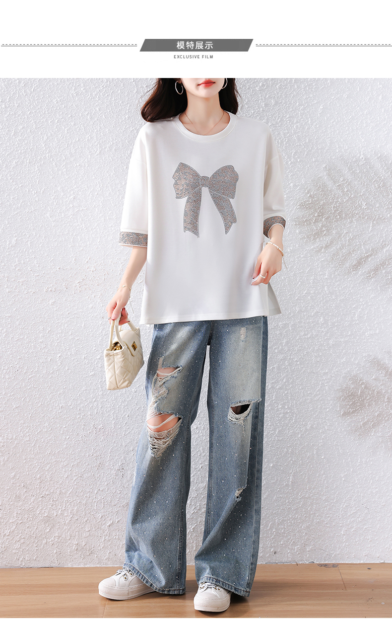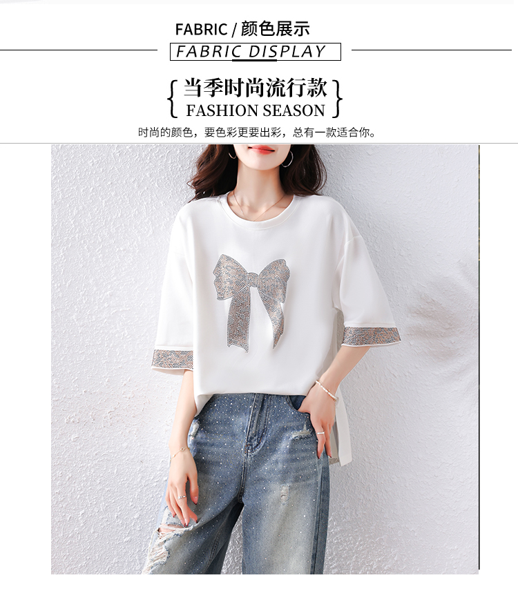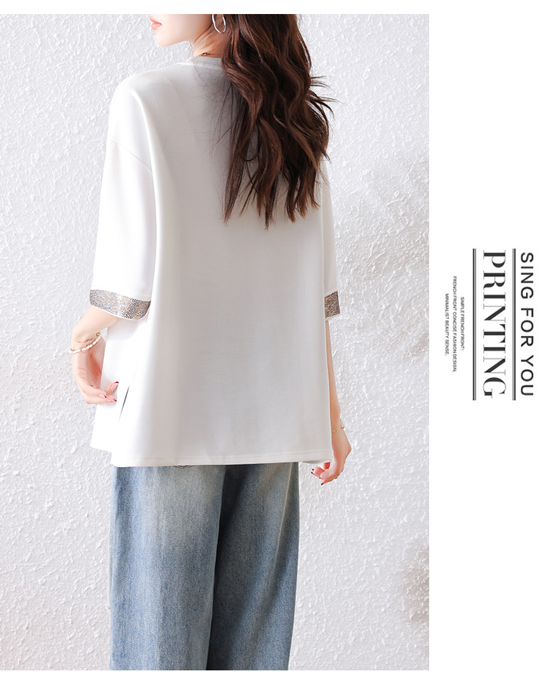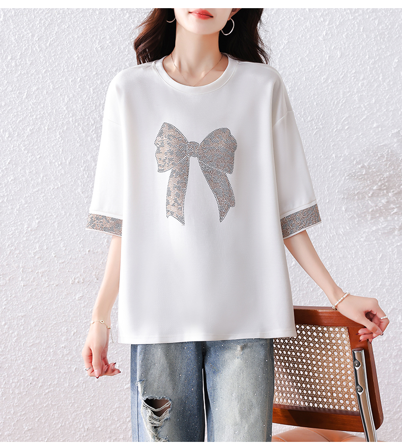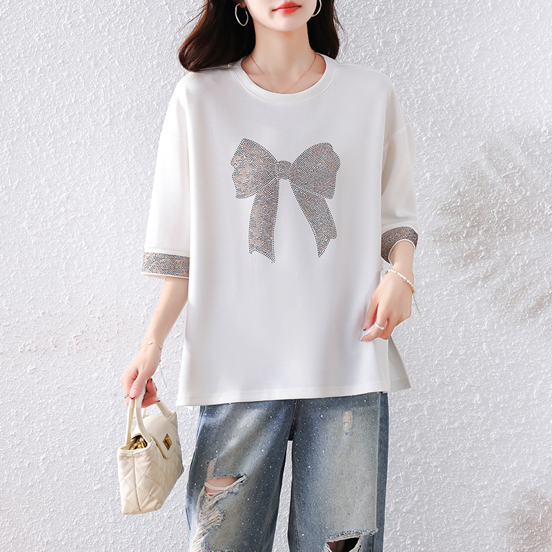 RY1627# 实拍2026夏季新款胖妹妹时尚减龄宽松遮肉显瘦重工烫钻T恤上衣、