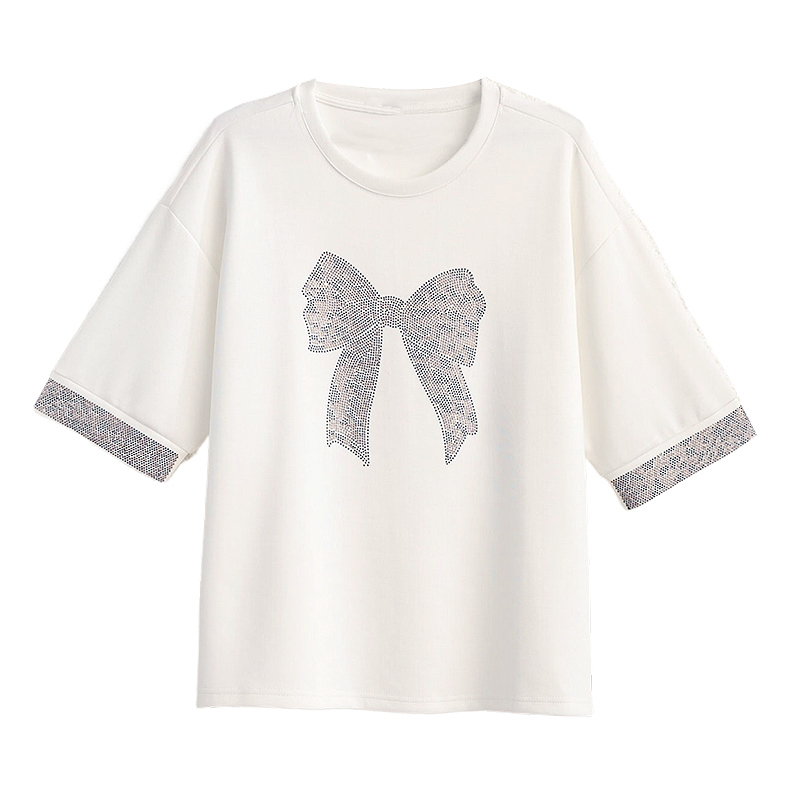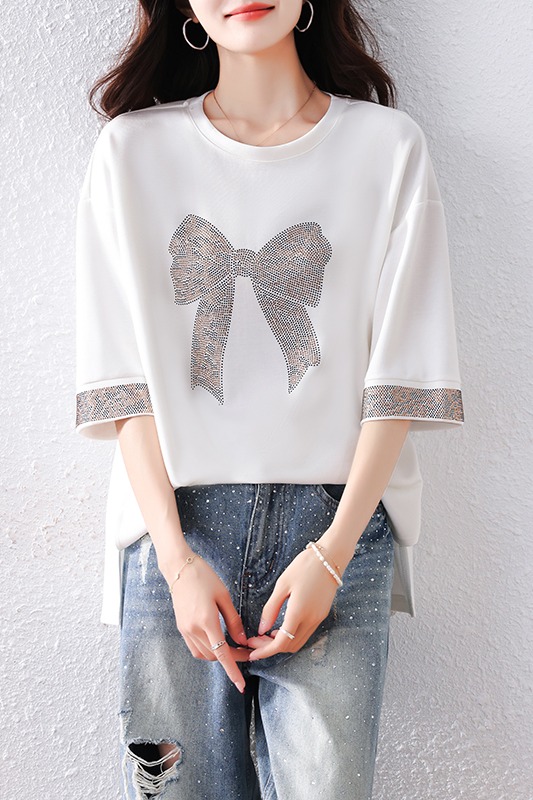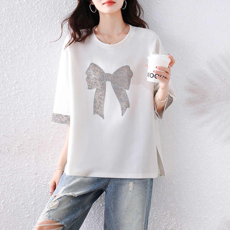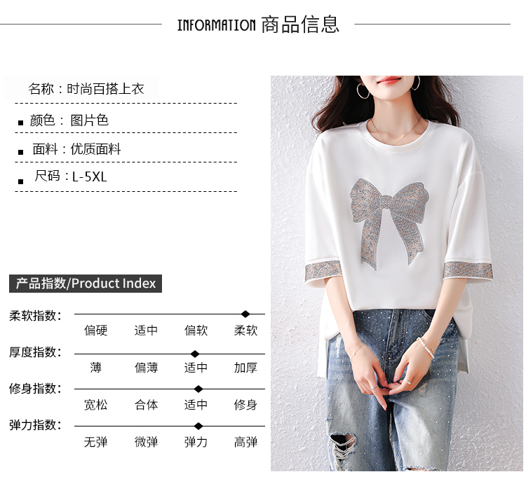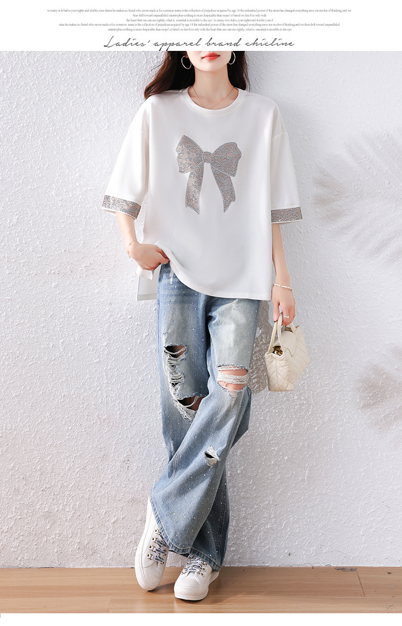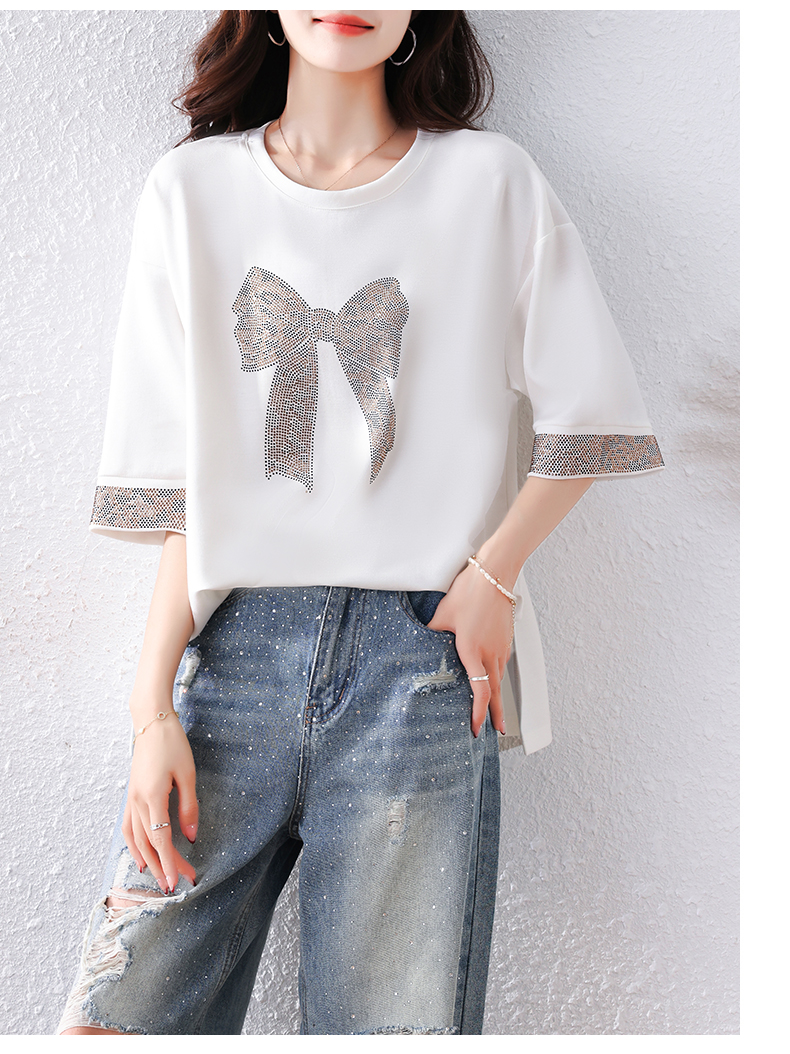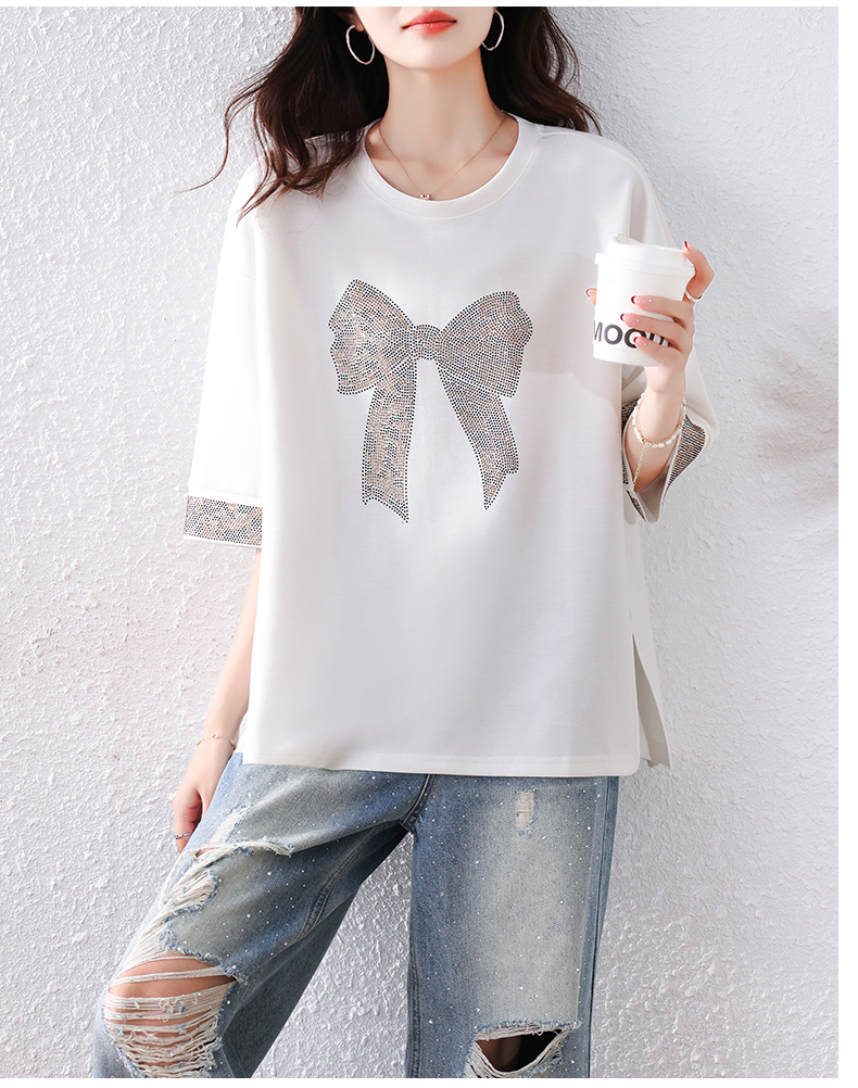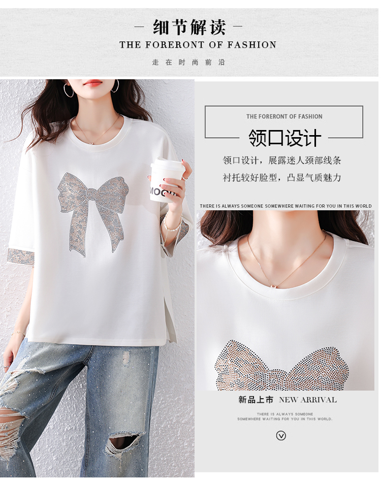 RY1627# 实拍2026夏季新款胖妹妹时尚减龄宽松遮肉显瘦重工烫钻T恤上衣、