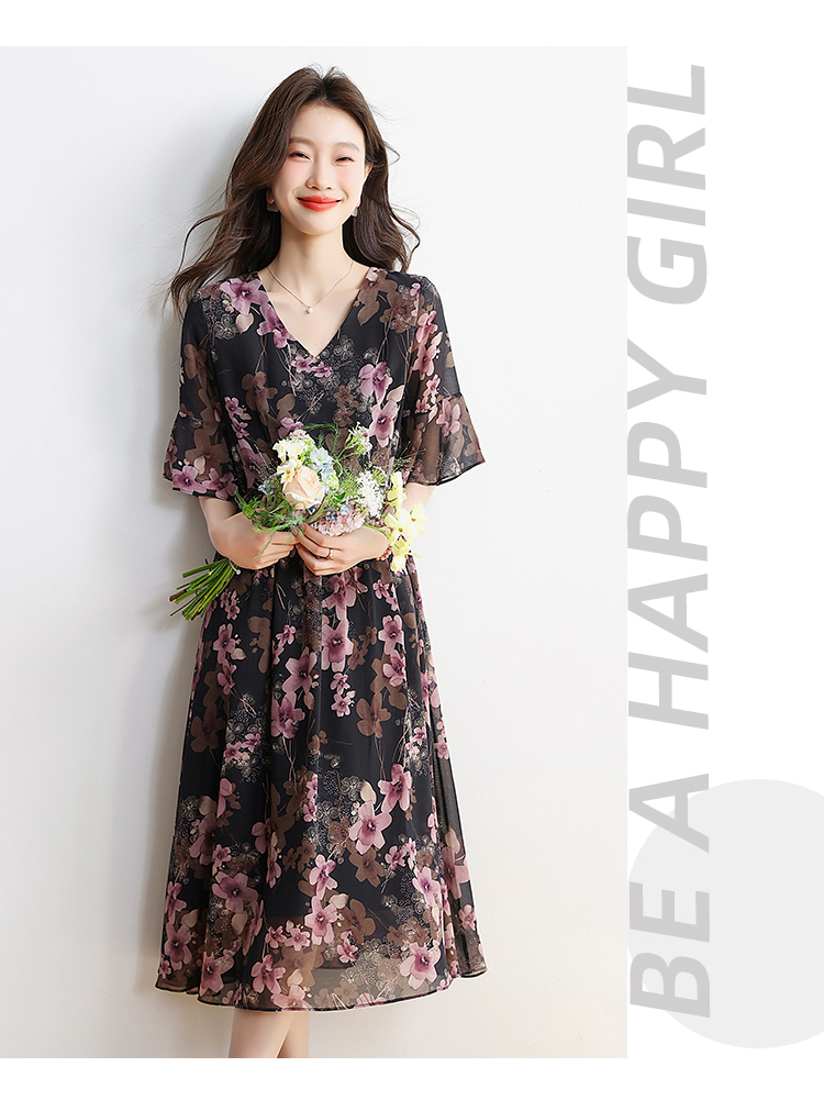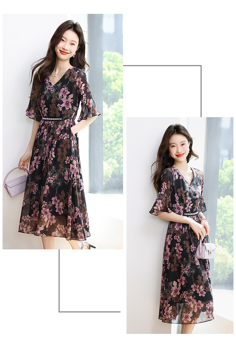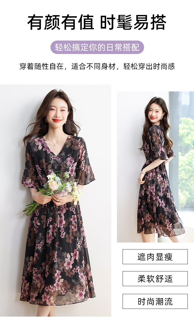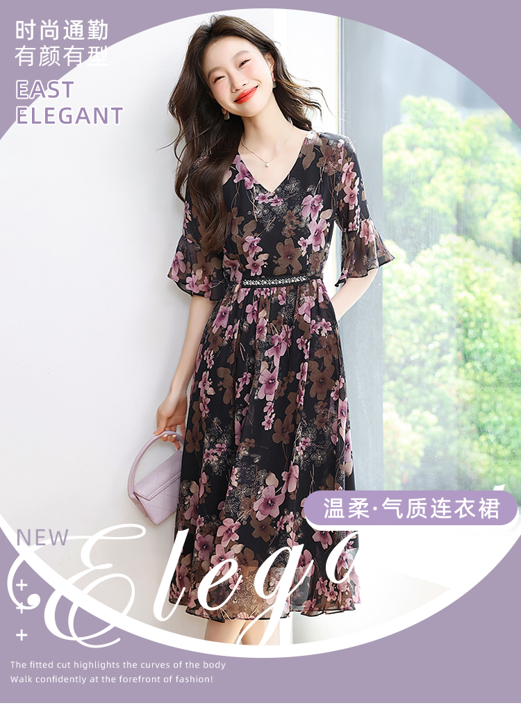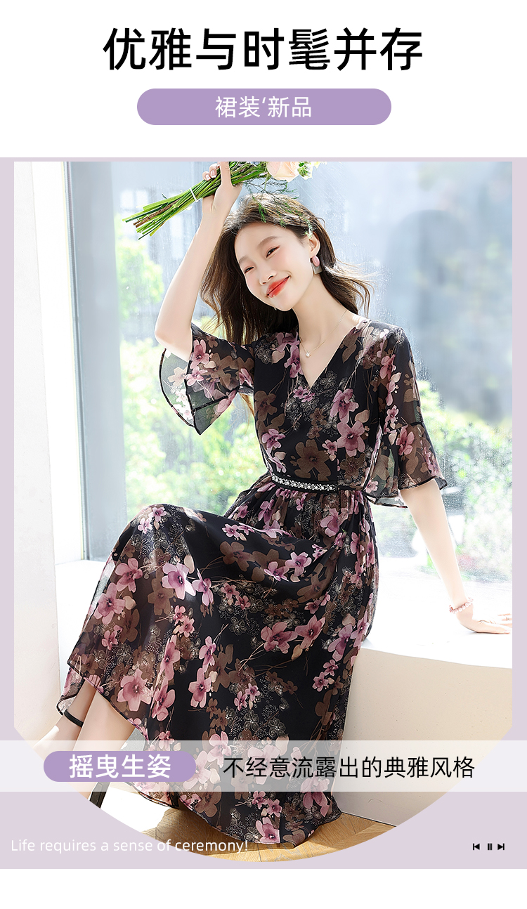 RY1646# 2026夏季薰衣草紫色温柔风穿搭女人味印花连衣裙